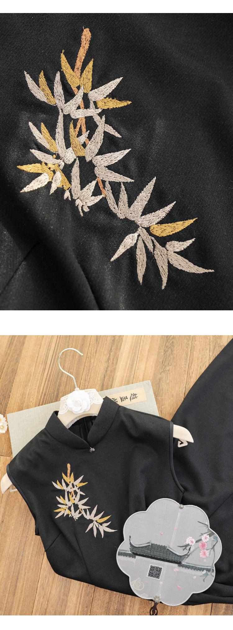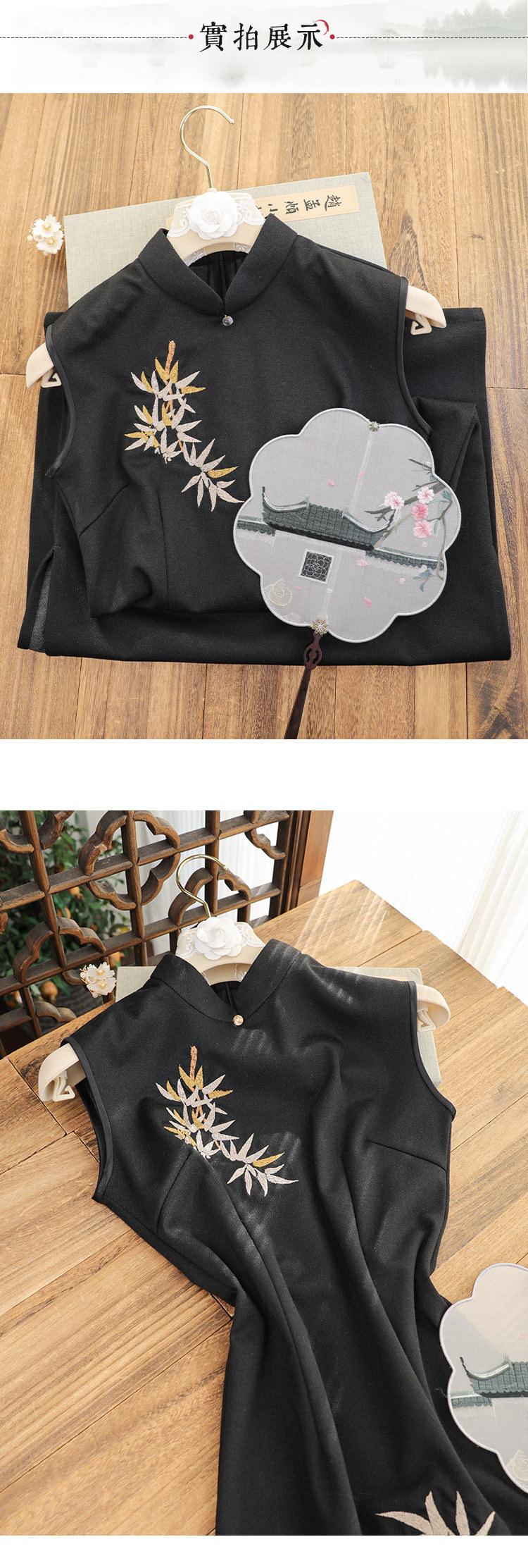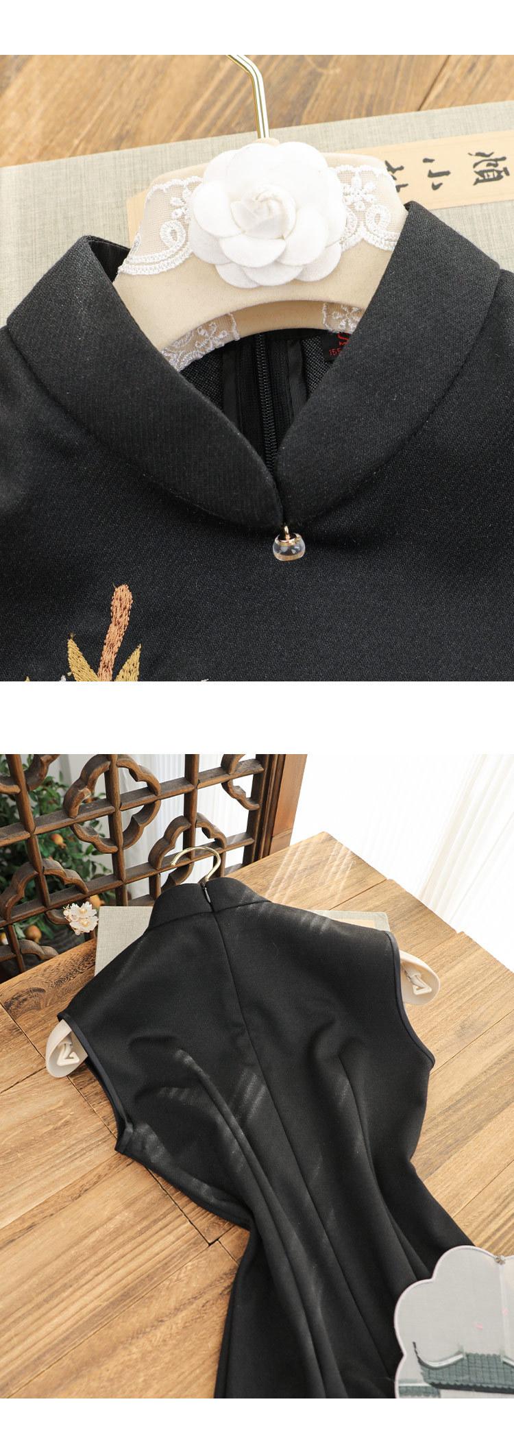 Qiao Niang Yu Cheongsam negro retro elegante nuevo estilo chino sin mangas 2025 primavera nuevo uso diario estilo joven