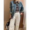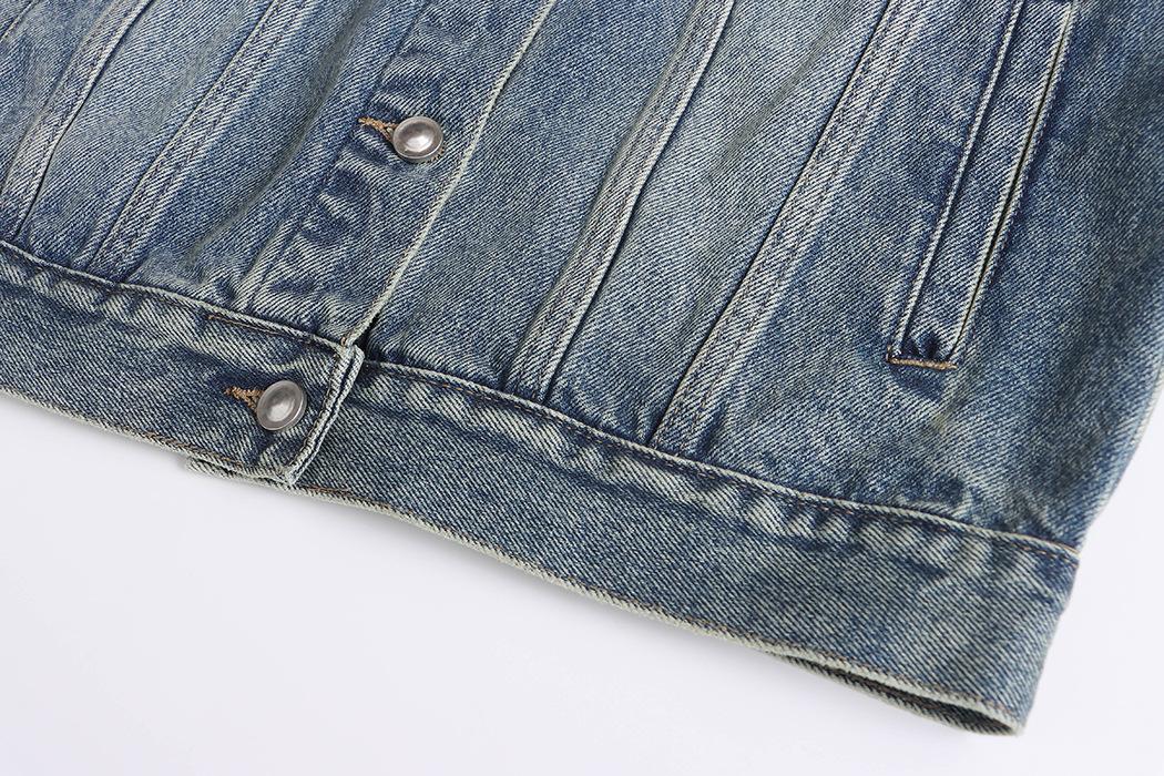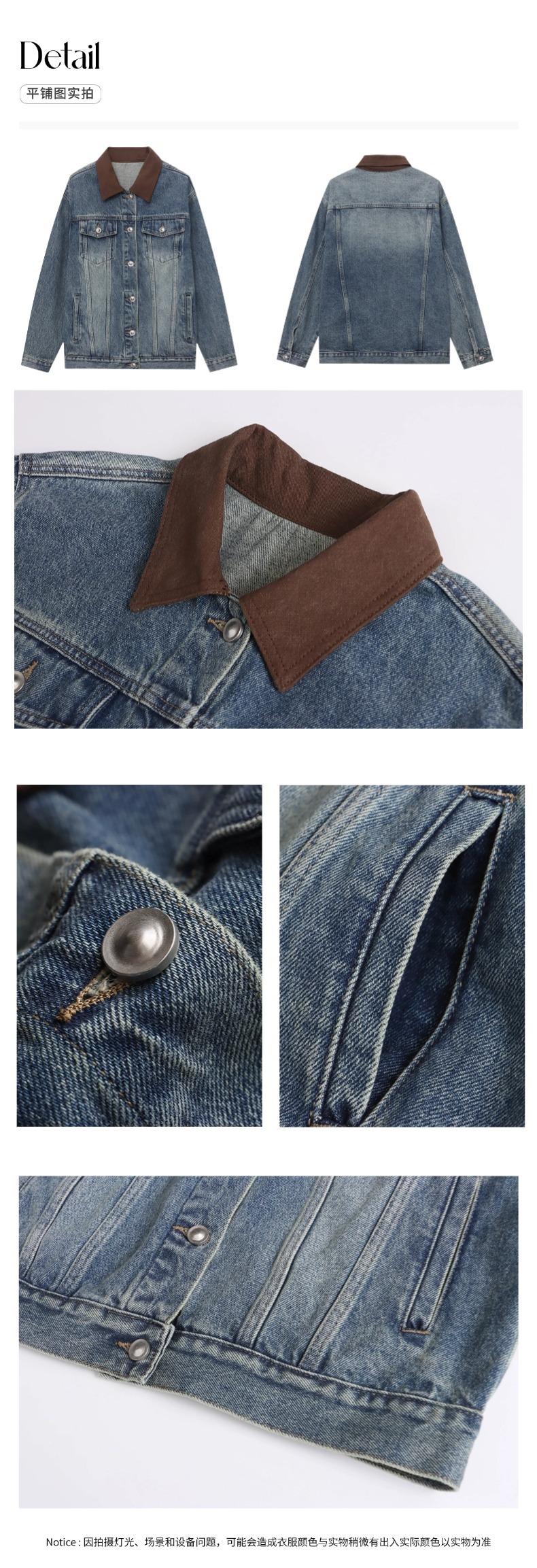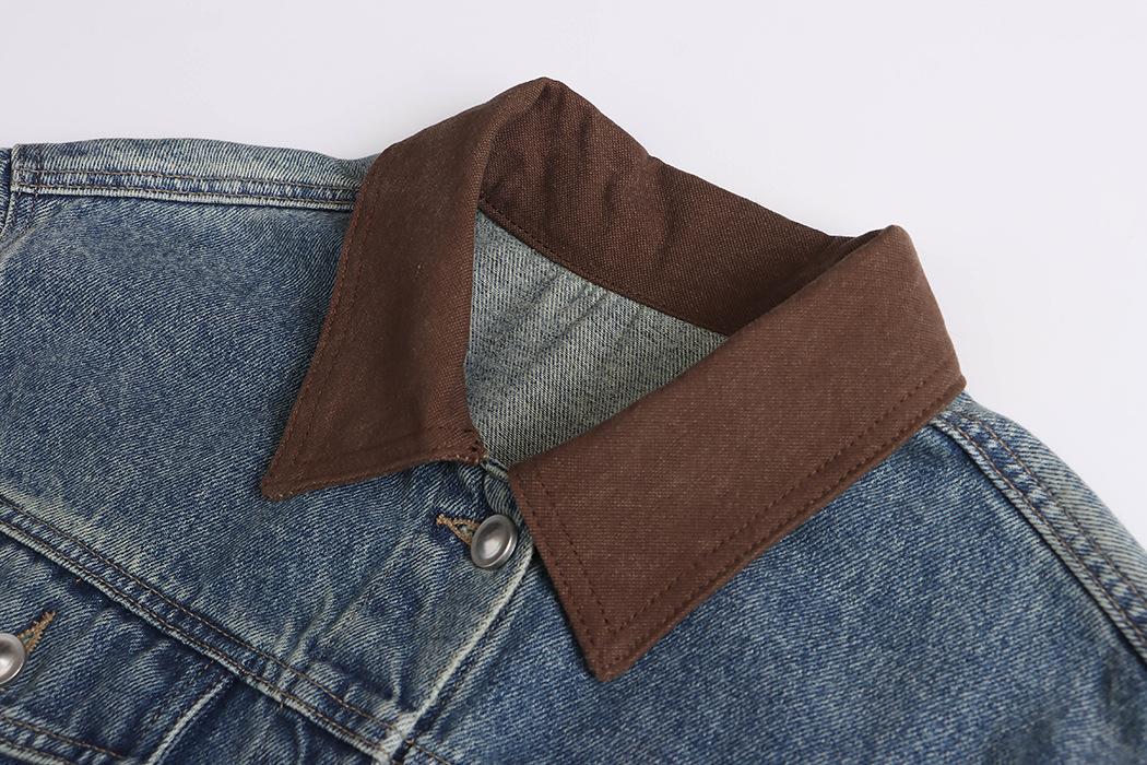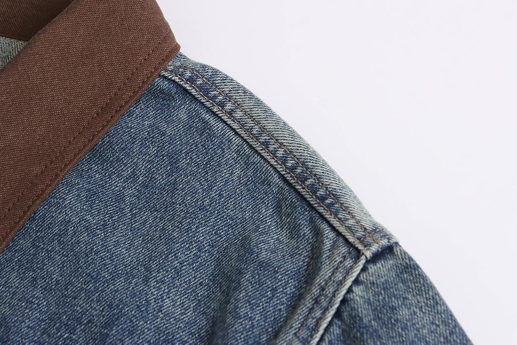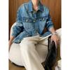 Sinan Otoño Temprano Nuevo Estilo Estilo Granero Desgastado Costuras en Color Contrastante Solapa Chaqueta de Mezclilla Suelta Sn6982