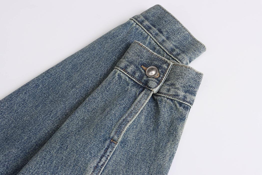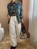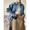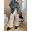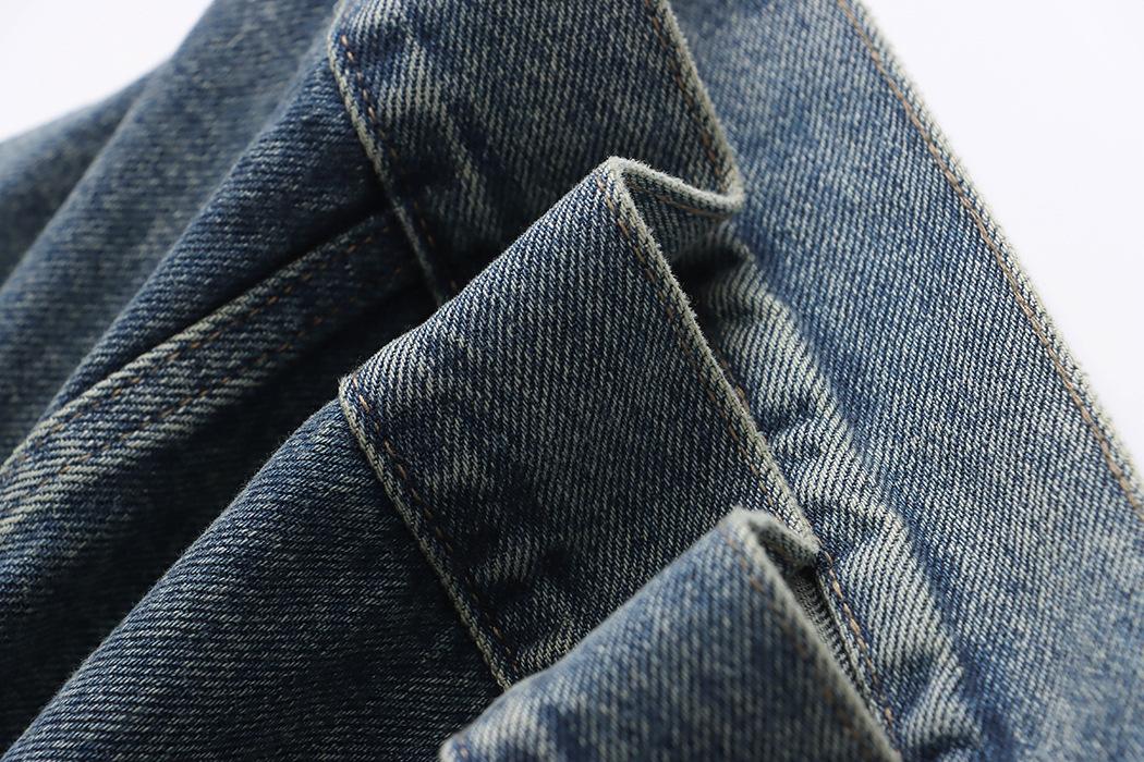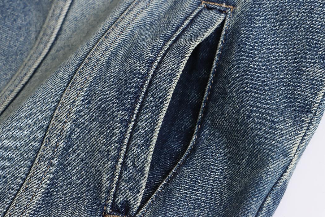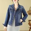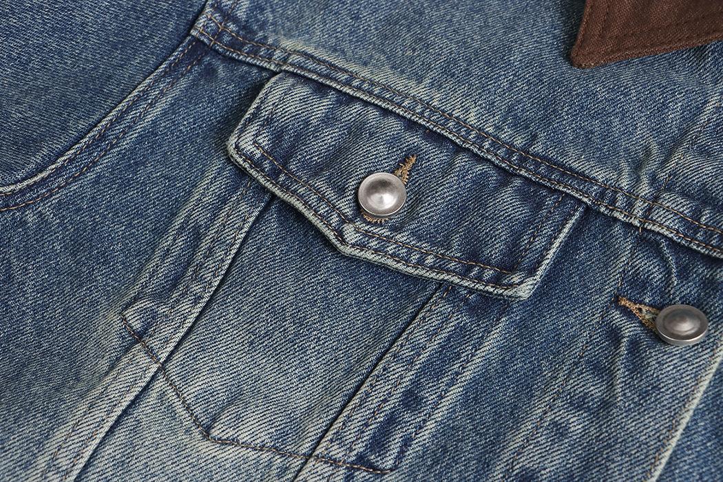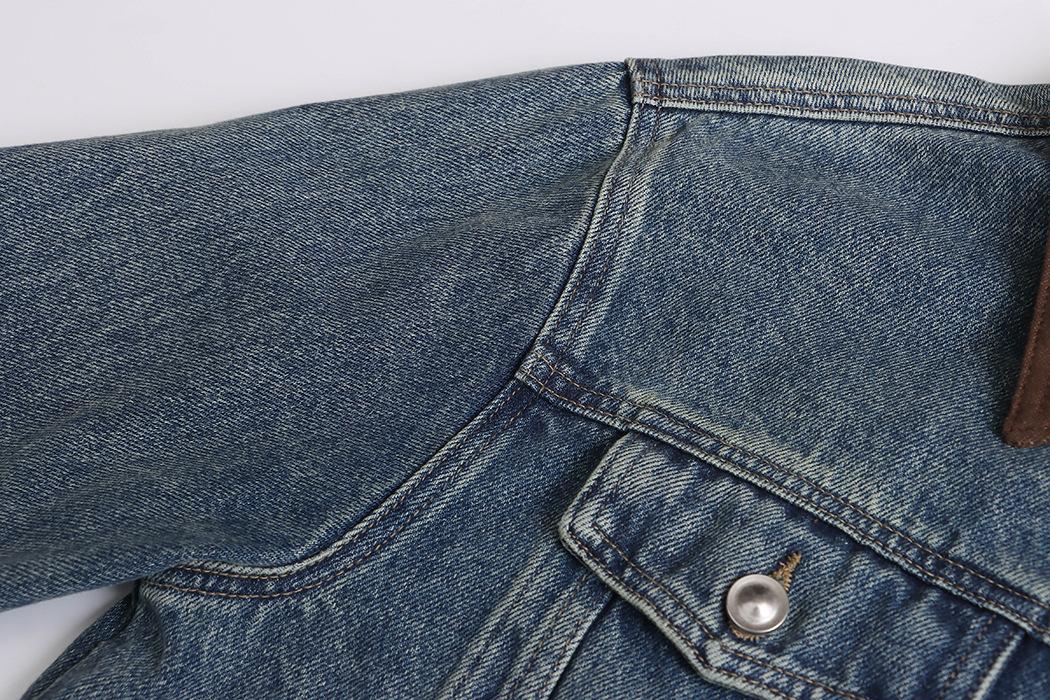 Sinan Otoño Temprano Nuevo Estilo Estilo Granero Desgastado Costuras en Color Contrastante Solapa Chaqueta de Mezclilla Suelta Sn6982