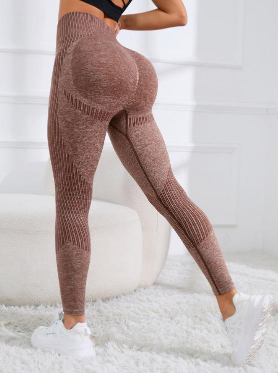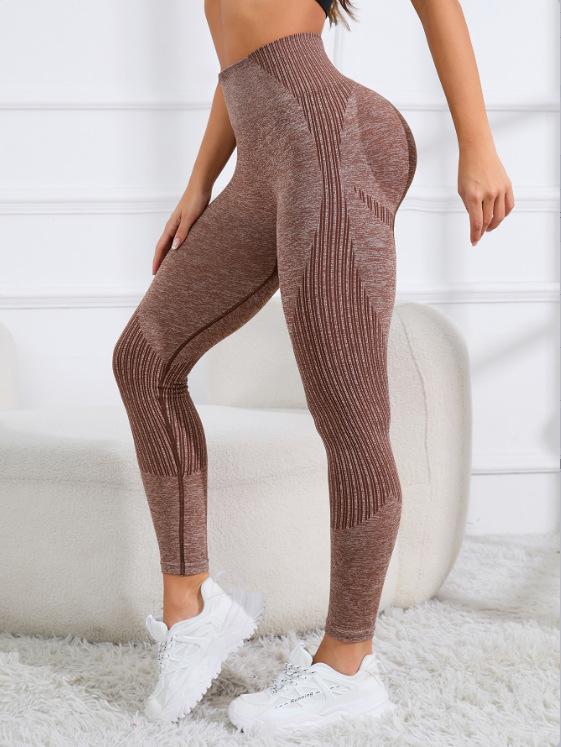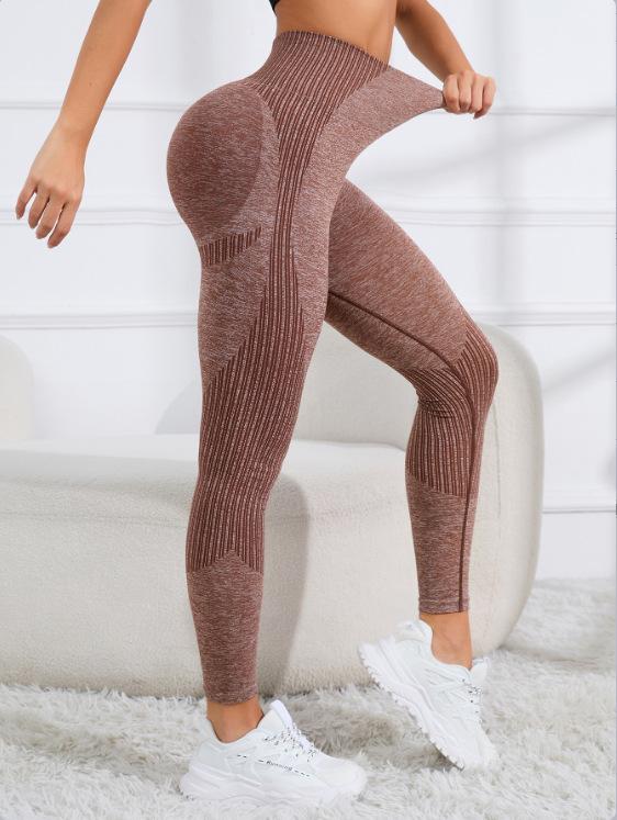 Pantalones de yoga deportivos de punto sin costuras, de estilo europeo y americano, de cintura alta, transpirables, ajustados a la cadera, de secado rápido, con base transpirable y hasta el tobillo.
