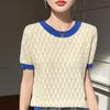 Suéter de cuello redondo de terciopelo Andy, primavera de 2025, nuevo jersey holgado de media manga con abertura para mujer