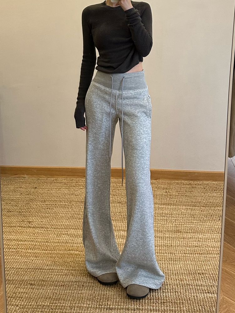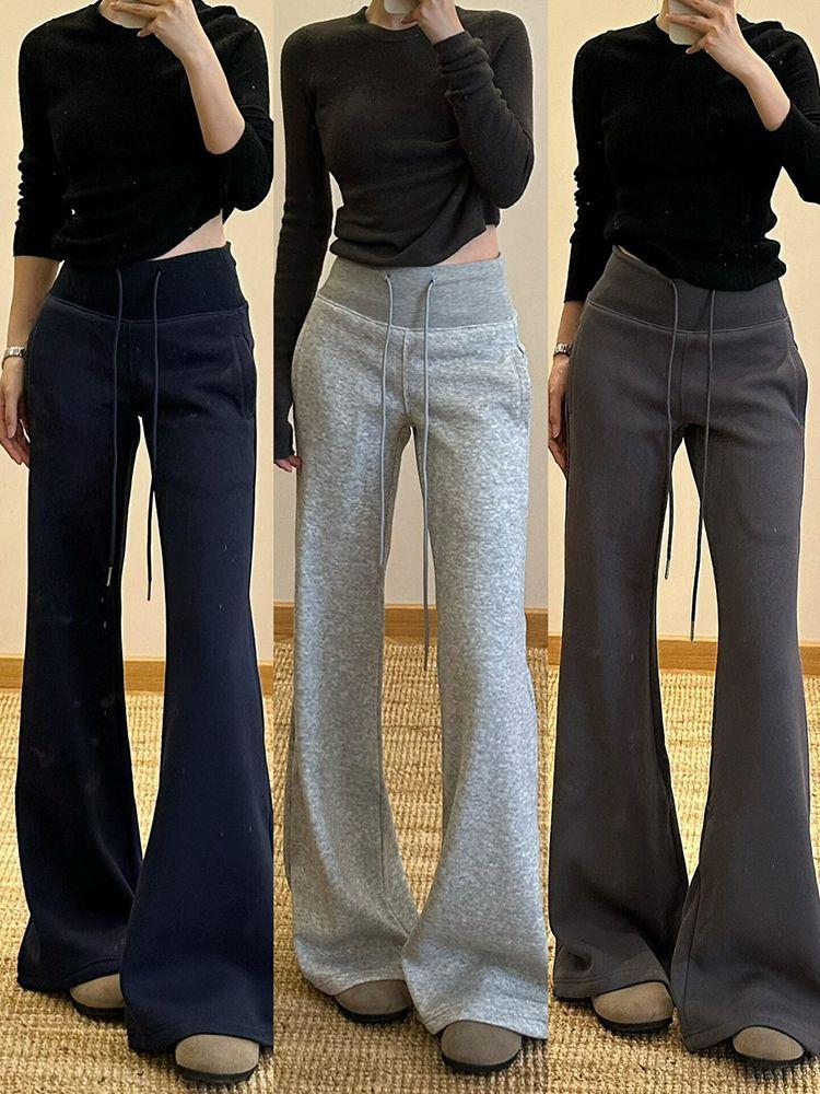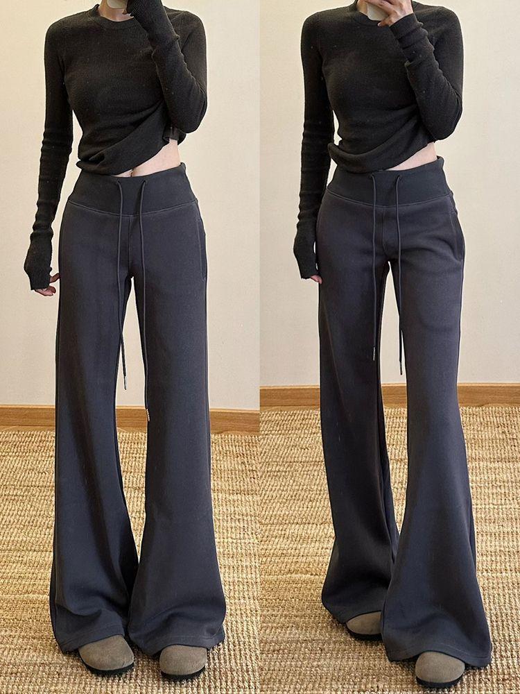 Pantalones deportivos acampanados de manga corta para primavera y otoño con cintura alta, adelgazantes, corte holgado, cordón ajustable, deportivos casuales de pierna recta y ancha hasta el suelo
