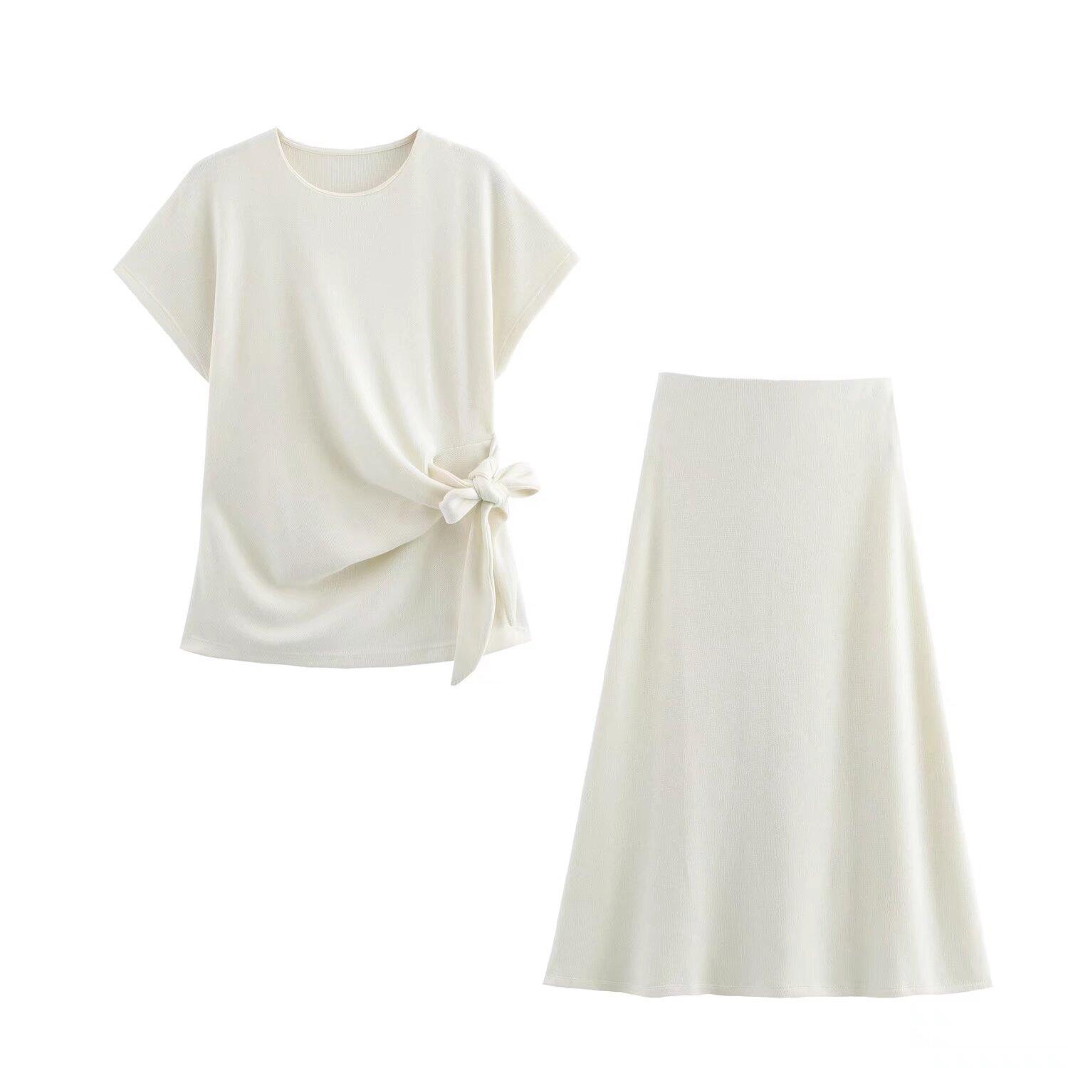 Amazon comercio exterior transfronterizo Europa y Estados Unidos ropa de mujer primavera 2025 nuevo traje de falda con top suave y decoración de nudo