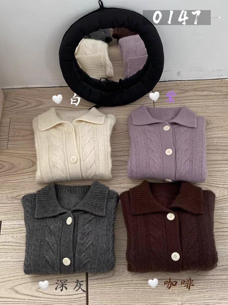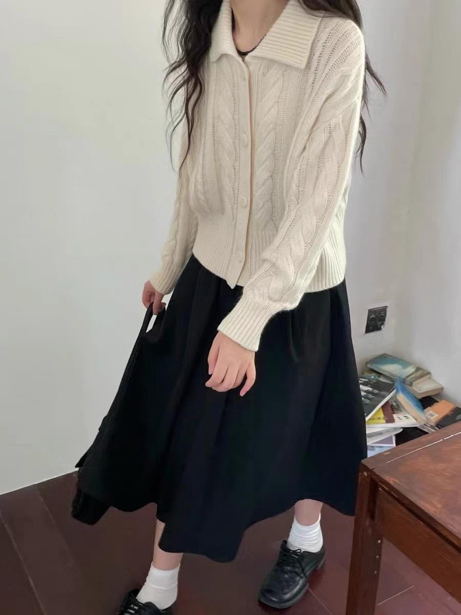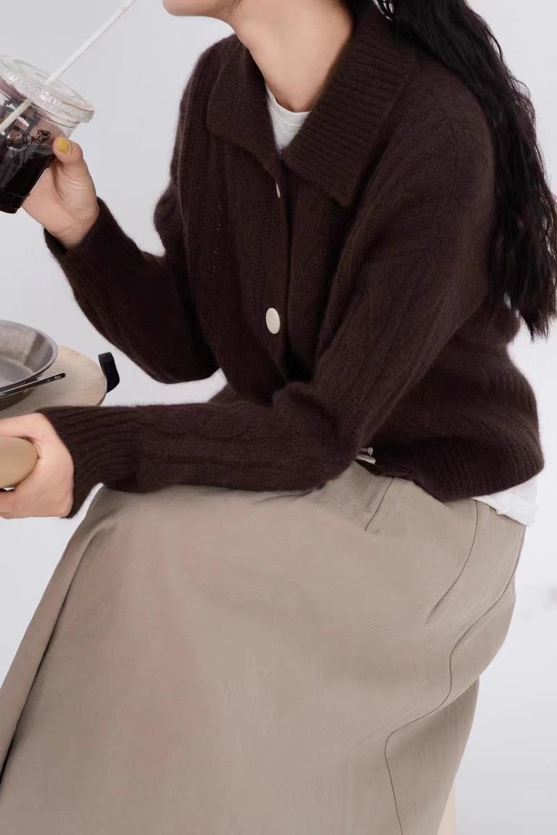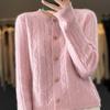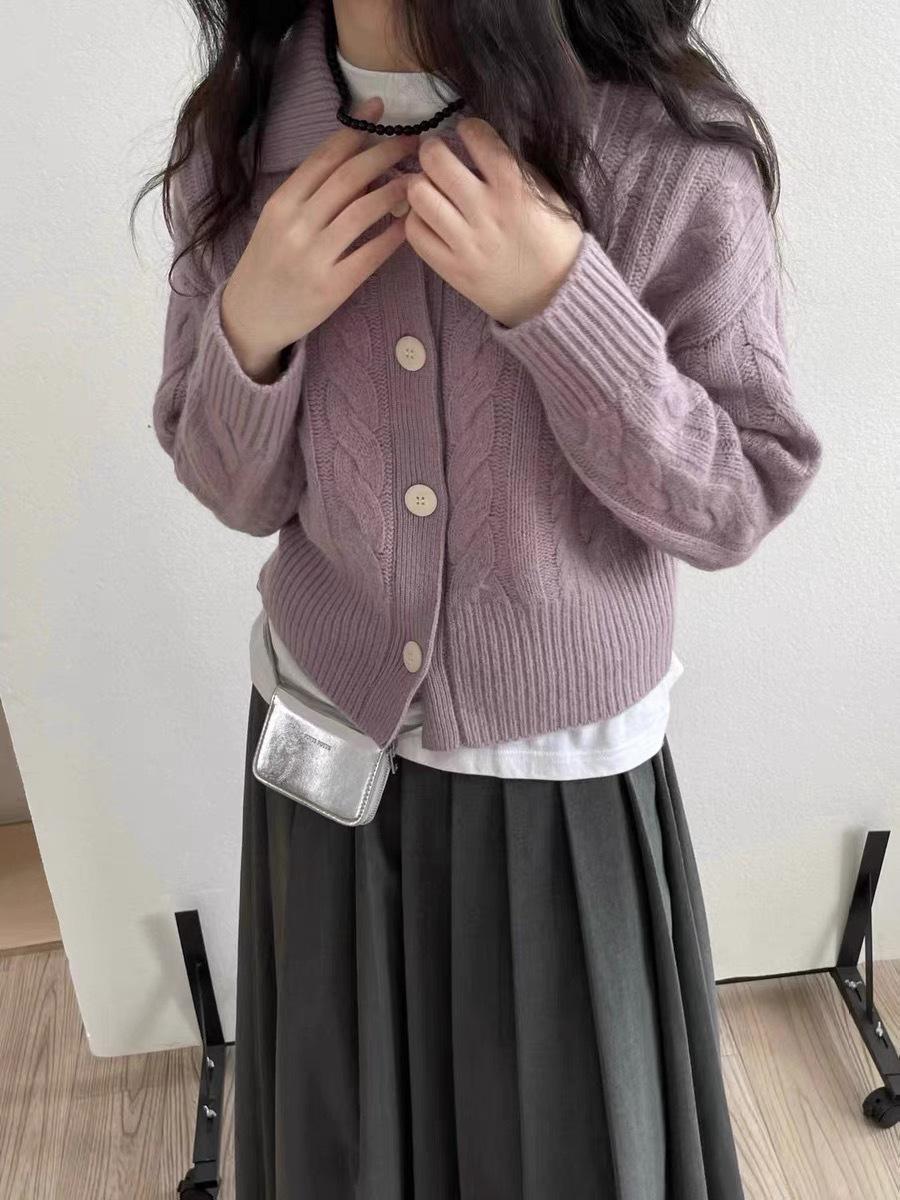 Cárdigan de lana pura con solapa torcida coreana para mujer, suéter de cachemira de punto suelto, chaqueta, otoño e invierno