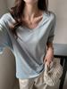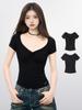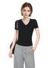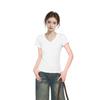 Camiseta blanca de manga corta con escote en V y hombros descubiertos para mujer, camiseta interior ajustada de verano de algodón 2025.