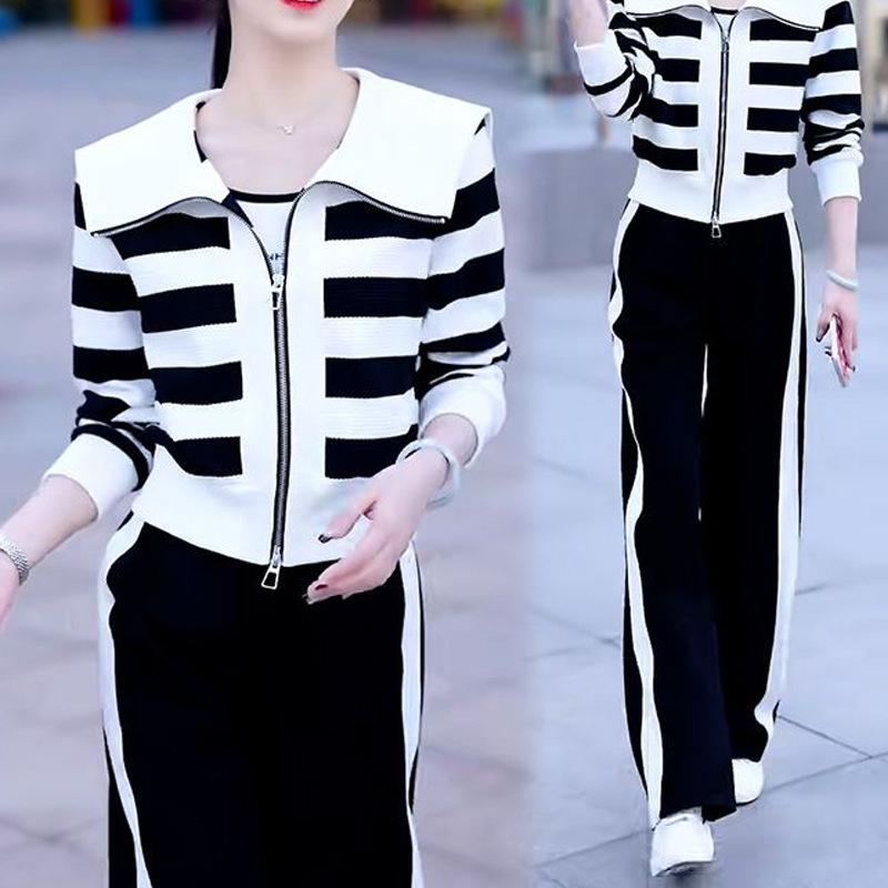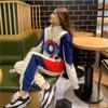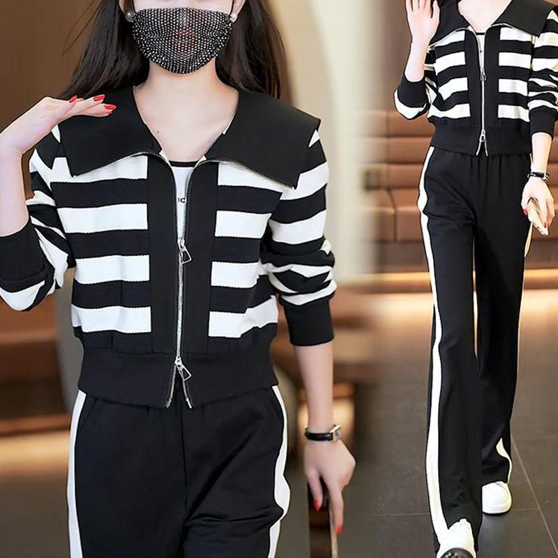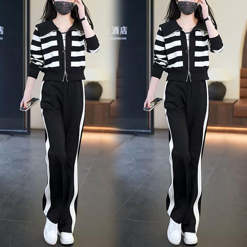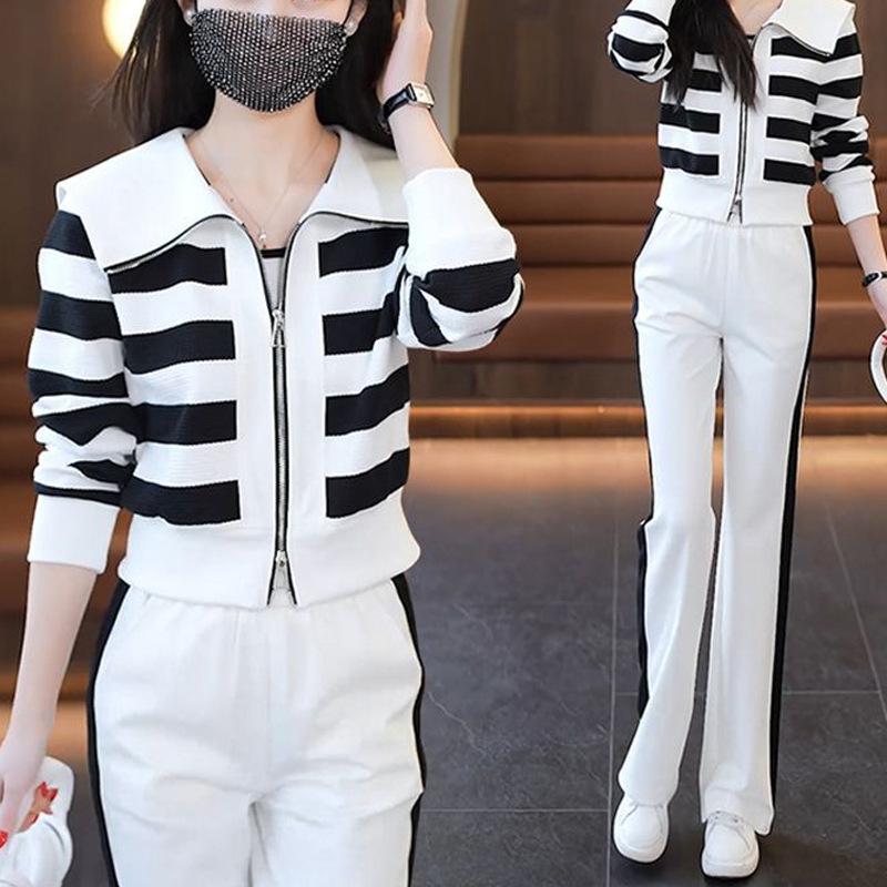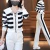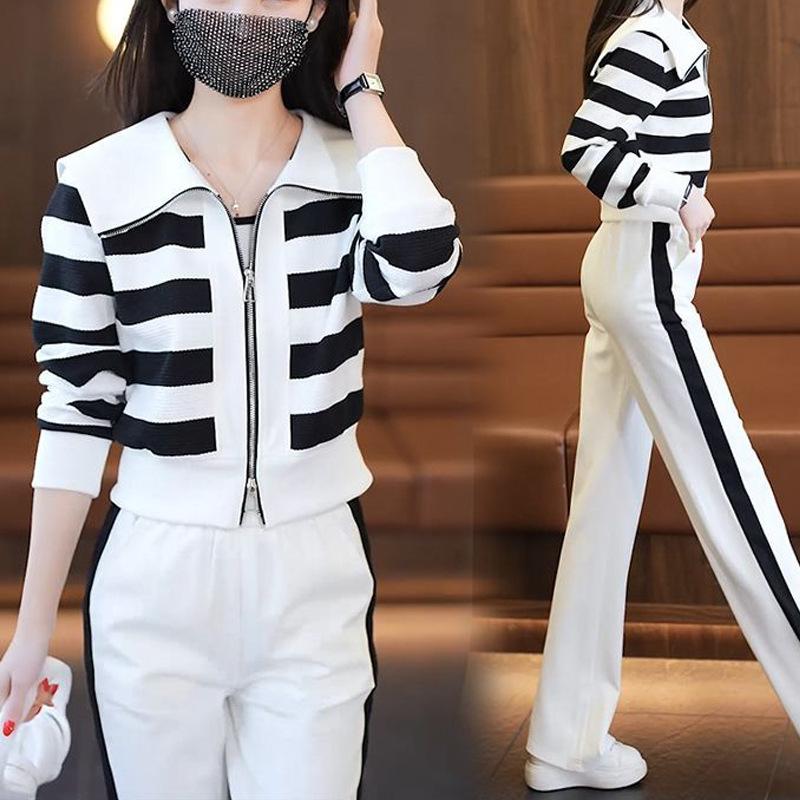 Ropa deportiva para mujer, primavera y otoño de 2024, traje informal de moda, sudadera de color en contraste de estilo occidental, dos piezas pequeñas, de moda.