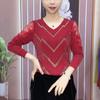 | | | | Playera de manga larga mujer 2025 otoño nueva ropa de mujer temperamento cuello en V hombro recto color sólido diseño sentido abertura top | | |