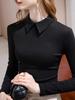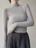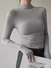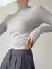 Camiseta básica chic estilo Hong Kong con cuello medio alto, invierno, manga larga, para mujer, primavera y otoño, corte ajustado, corta plisada, top chic único