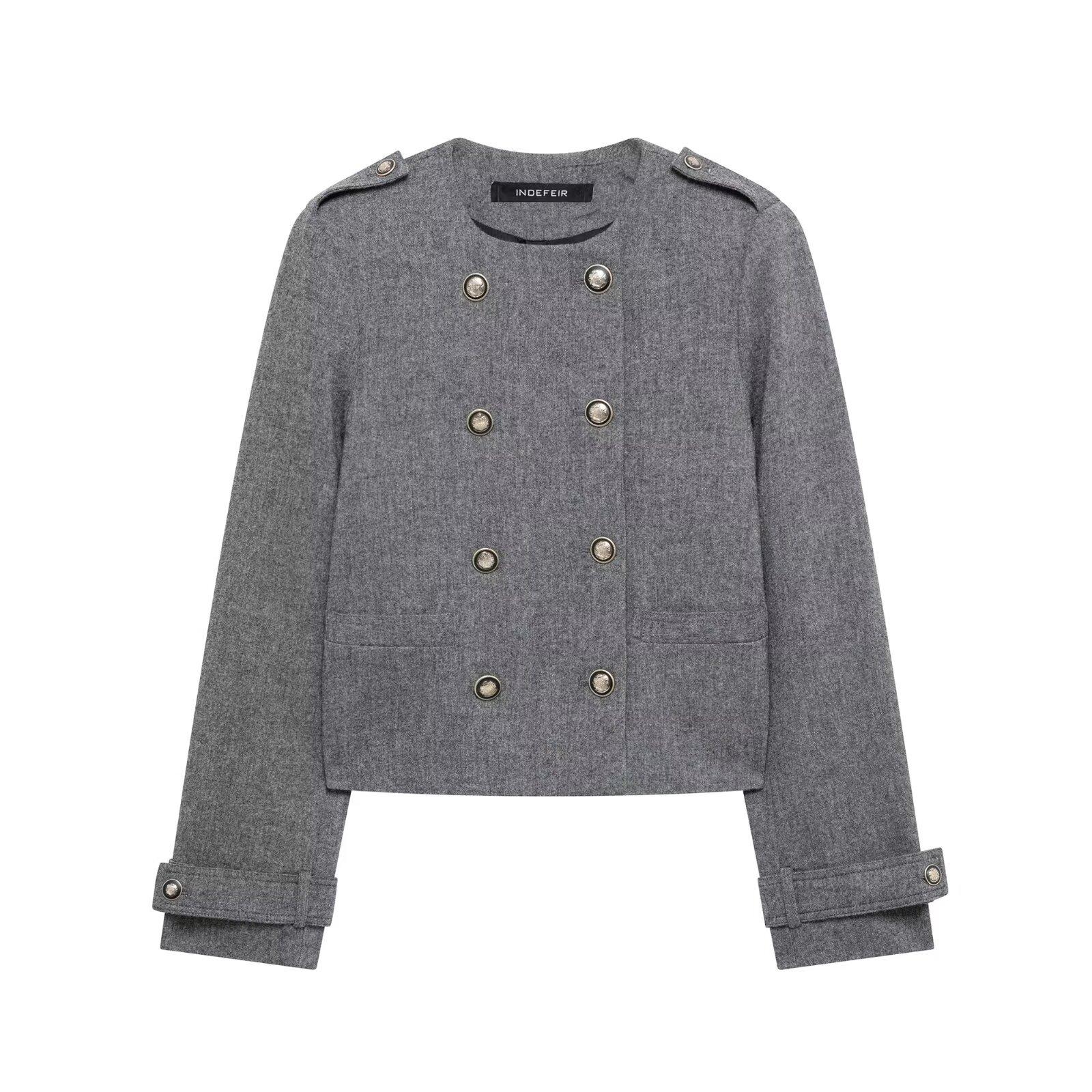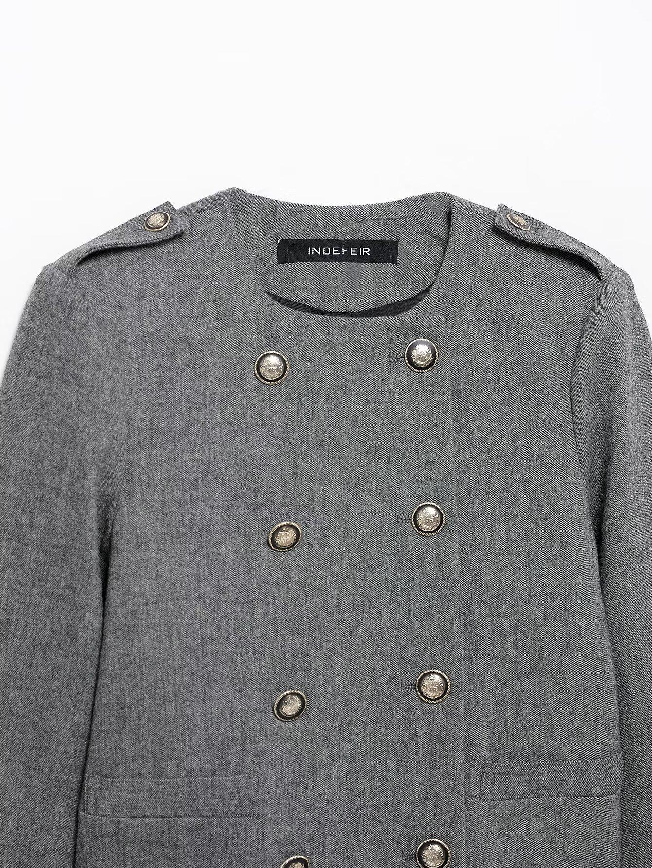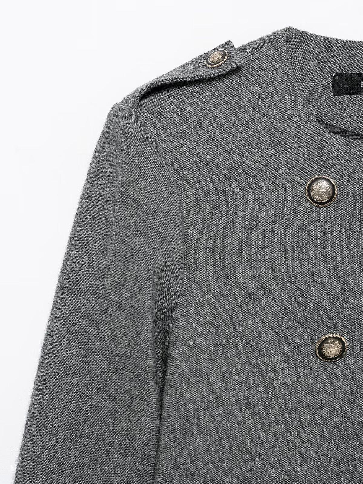 Ropa de mujer europea y americana de comercio exterior transfronterizo de Amazon, otoño e invierno 2024, nuevo abrigo de manga larga con cuello redondo y hebilla de fila, traje de sobrefalda