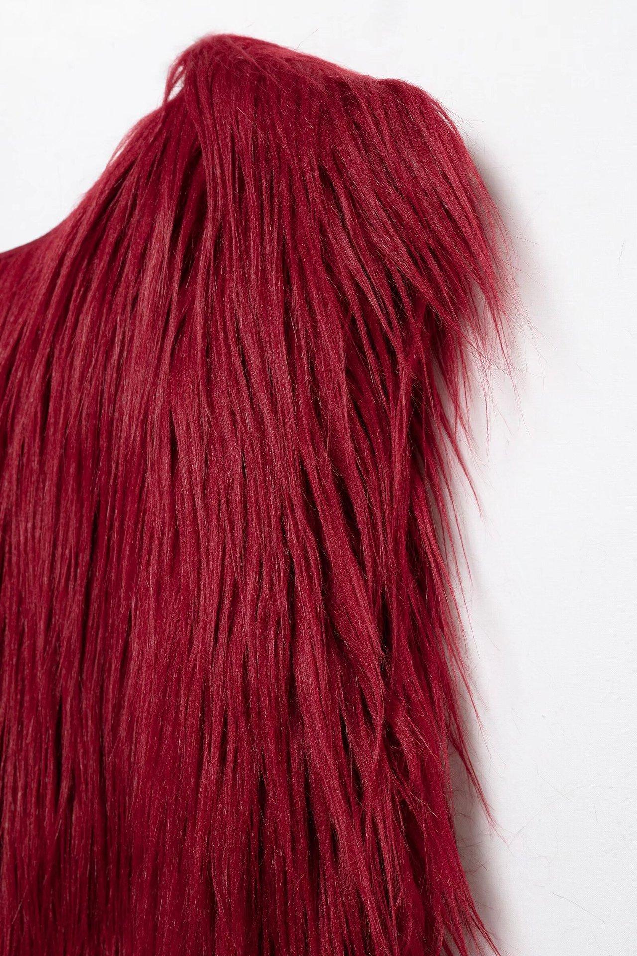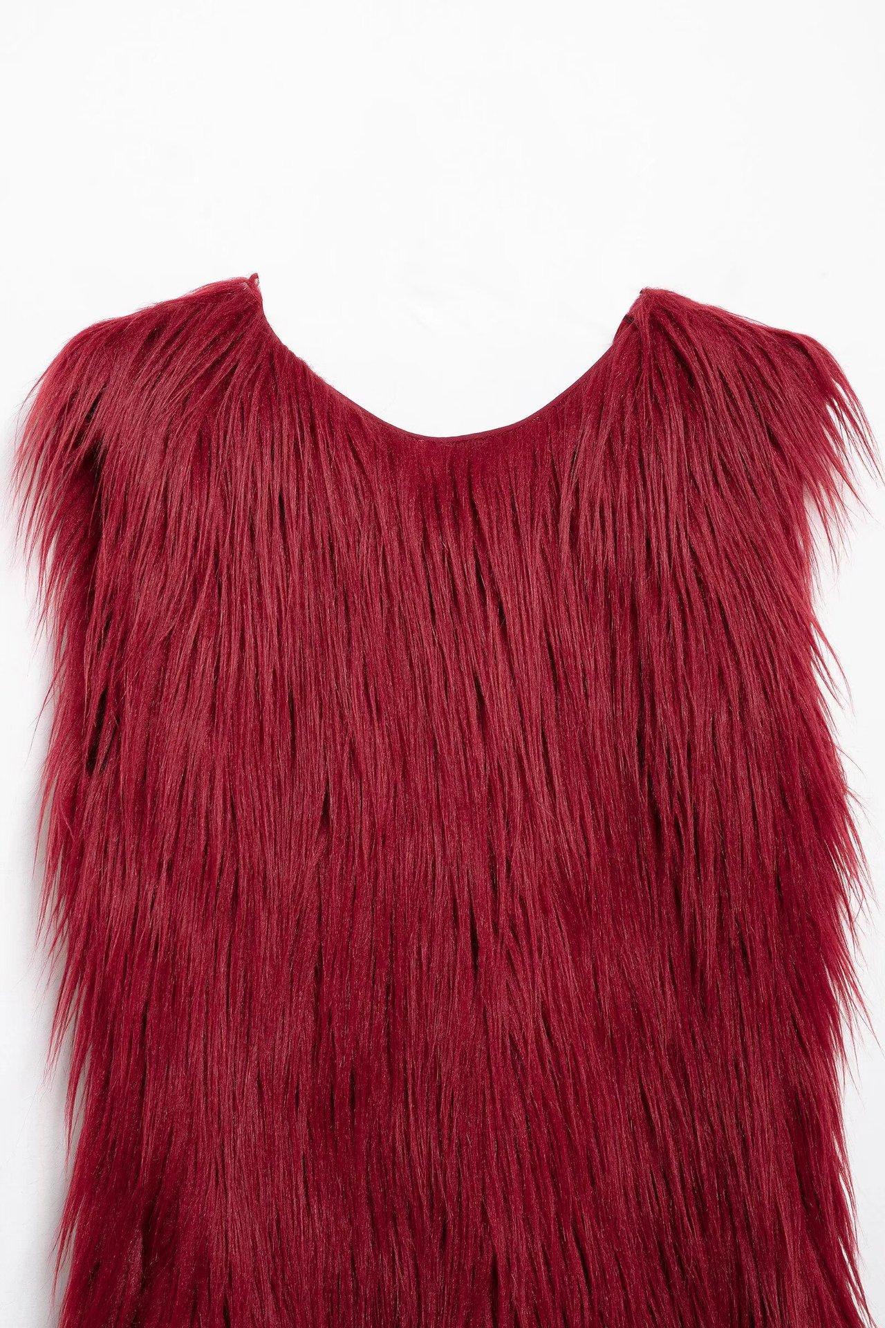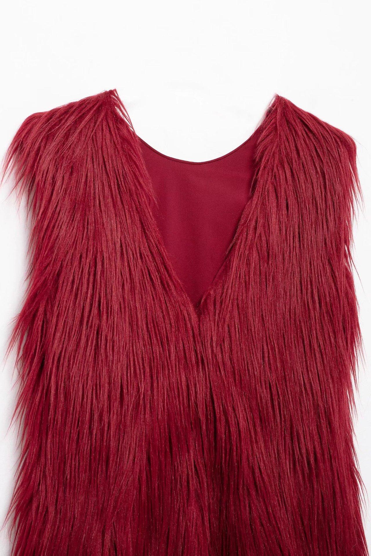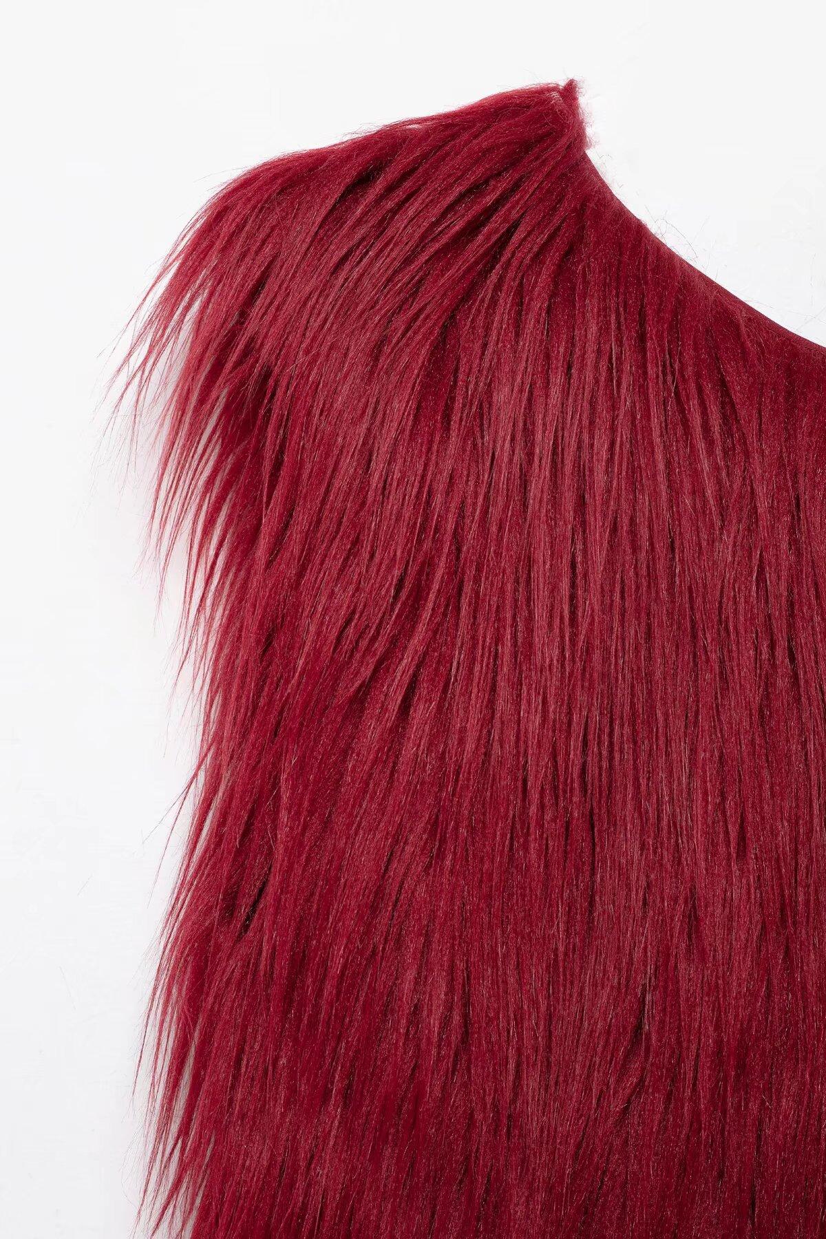 ZR Ropa de Mujer Europeo y Americano 2025 Primavera Nueva Moda Color Sólido Cabello Largo Efecto Piel Sintética Mao Mao Vestido Chaleco