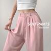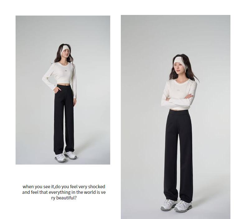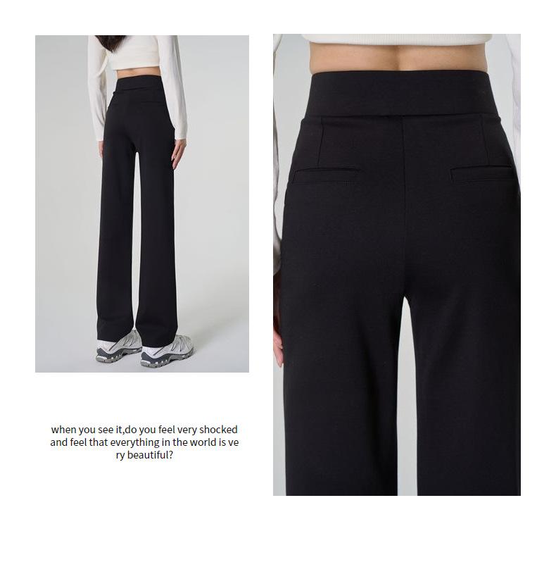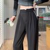 [Pantalones de Traje Drapeados] Nuevo Otoño 2025 para Mujer de Gama Alta Negros Altos de Pierna Recta Estrecha Pierna Ancha Pantalones Casuales