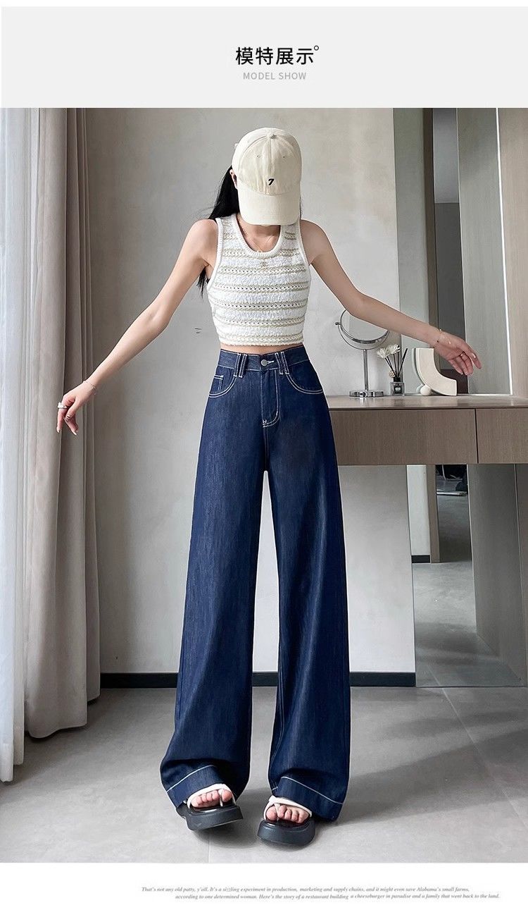 Compra Pantalones vaqueros holgados de pierna ancha en azul Tannin para mujer, otoño 2025, nuevos pantalones rectos adelgazantes de cintura alta al por mayor en Joom.pro