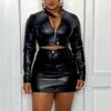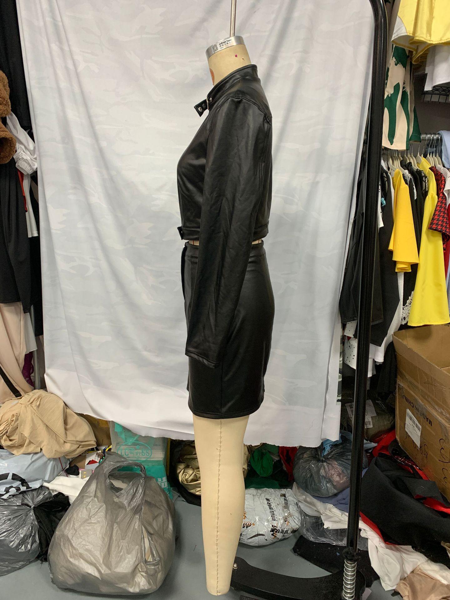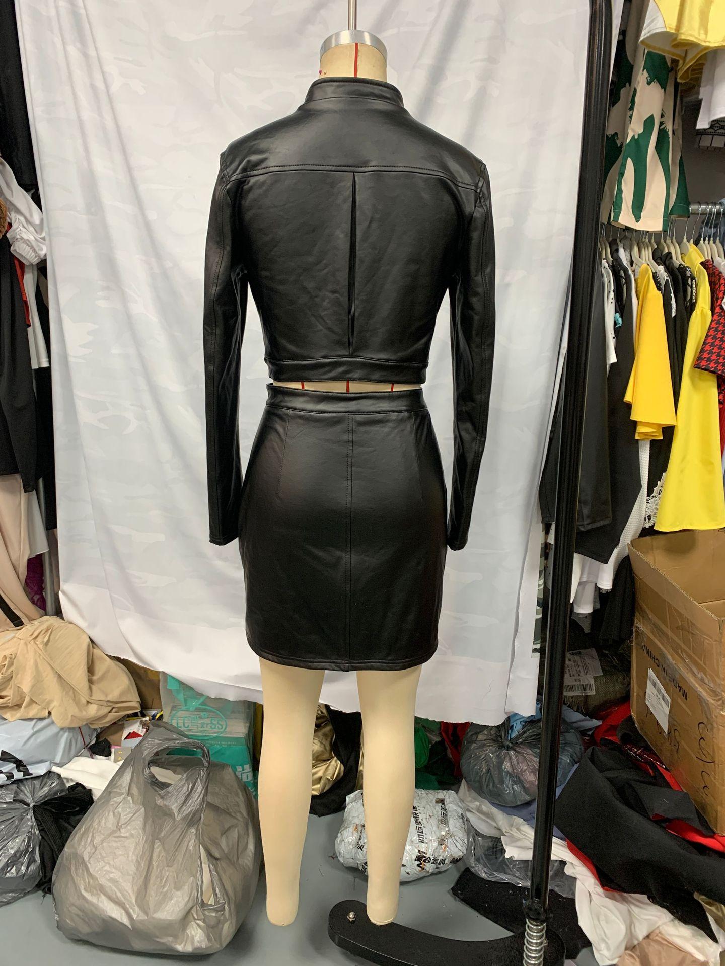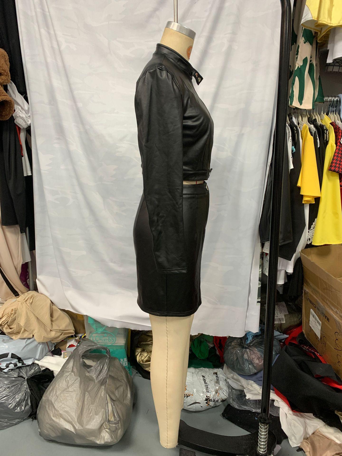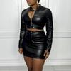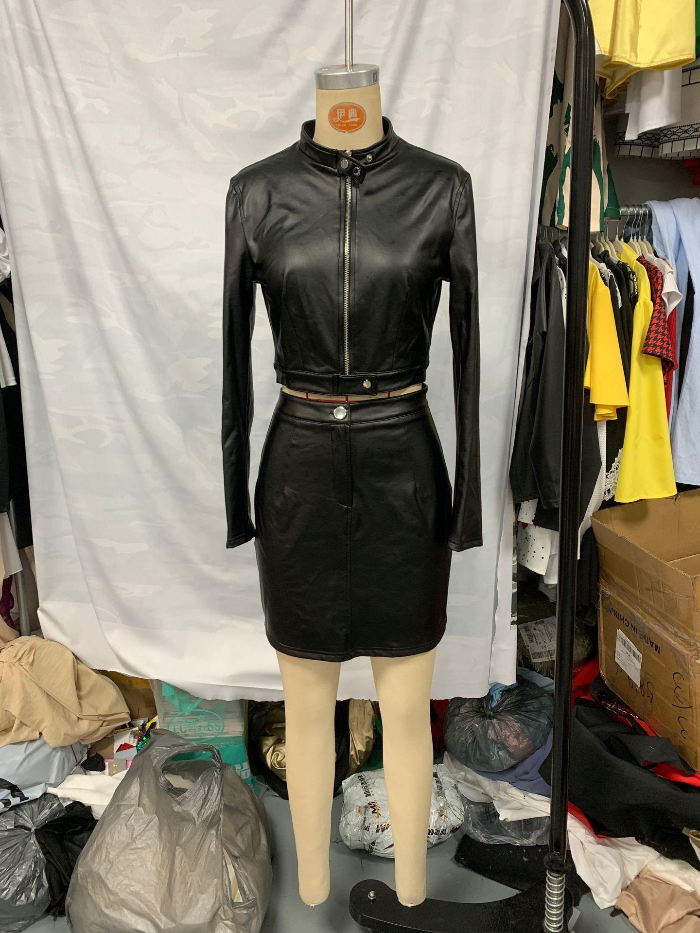 Conjunto de dos piezas de falda y cremallera de cuero sintético para mujer, estilo informal, de moda de comercio exterior de Amazon, con diseño transfronterizo europeo y americano, para las cuatro estaciones