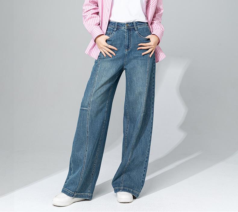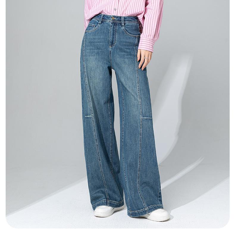 Xingge 2025 Nuevo Otoño Jeans Divididos Deconstruidos Diseño de Cintura Alta Adelgazantes Pierna Ancha Casual Pantalones Largos