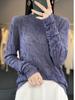 Shanli Dadi Suéter de Punto con Cuello en V y Flor Tridimensional Francesa para Mujer Otoño Invierno Chic con Borde de Oreja
