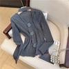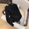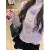 Suéter de flores tridimensionales estilo francés con cuello en V para mujer otoño e invierno chic suéter con borde de oreja de madera puro deseo cuello halter con lazo pequeño top