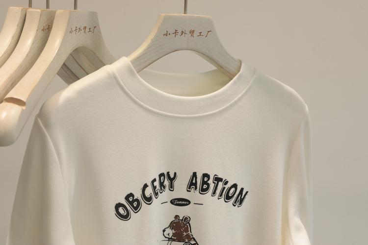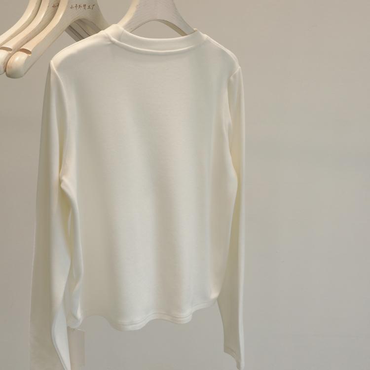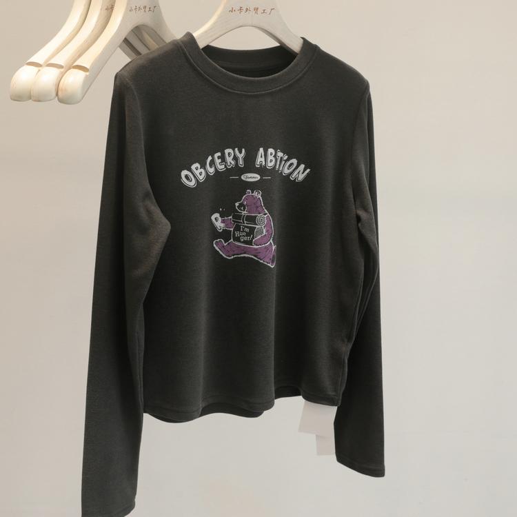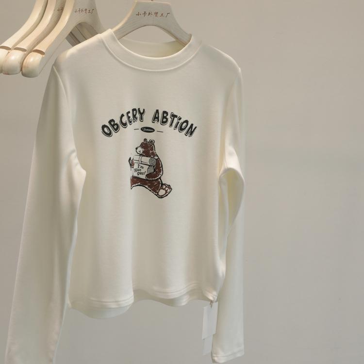 ¡Amor para usar todos los días! Camiseta de Manga Larga Lijada Estilo Coreano Reductor de Edad para Mujer Otoño e Invierno Dibujos Animados Cuello Redondo Camiseta Básica