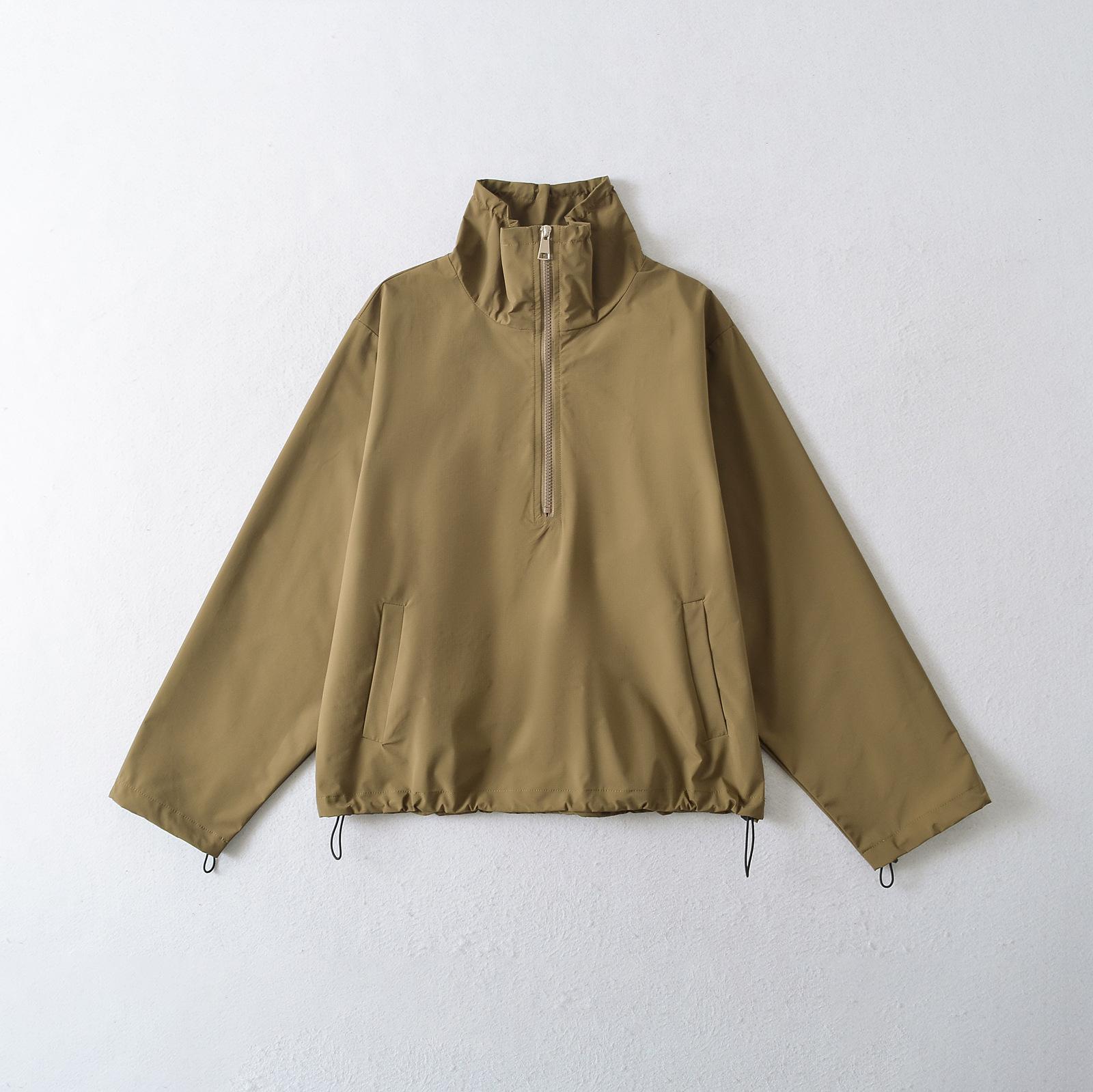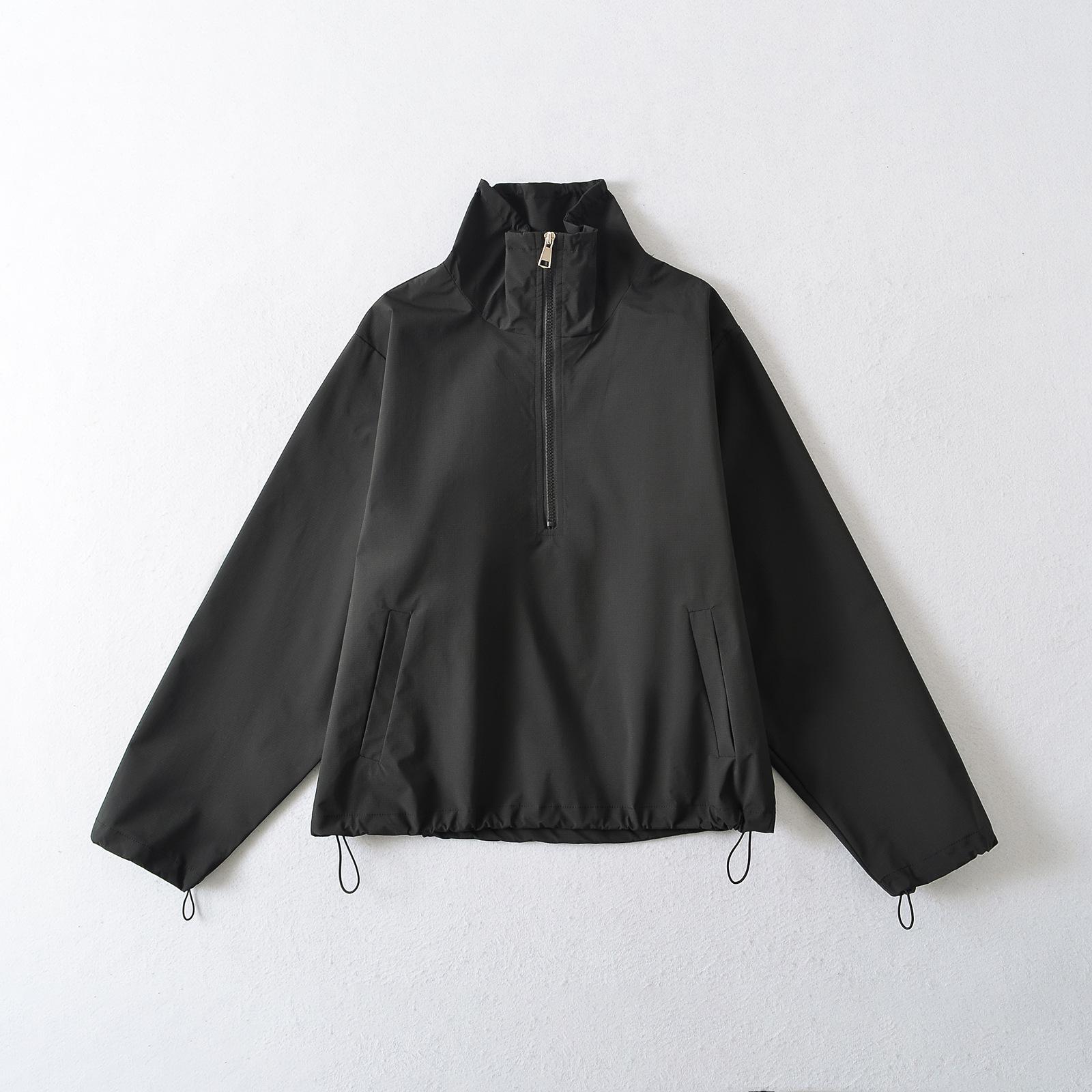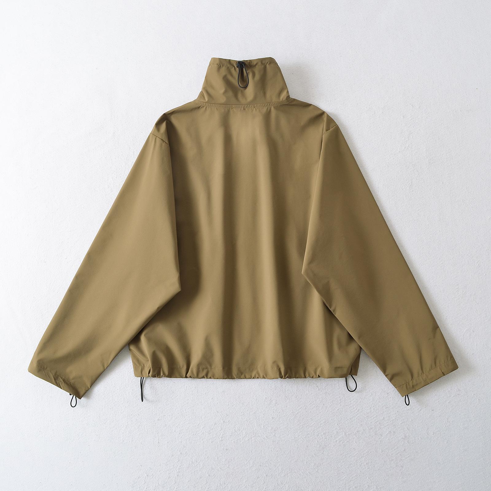 Chaqueta informal de estilo americano para exteriores, cortavientos, impermeable, para mujer, primavera 2025, color liso, con cordón ajustable