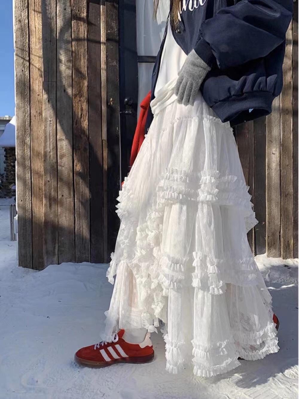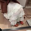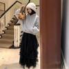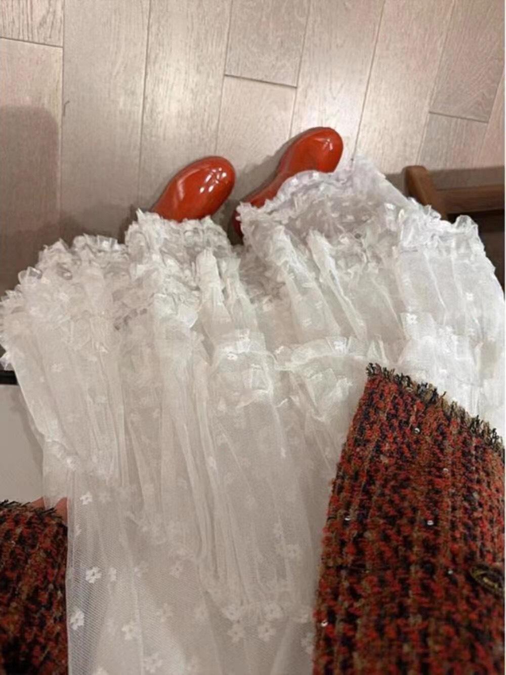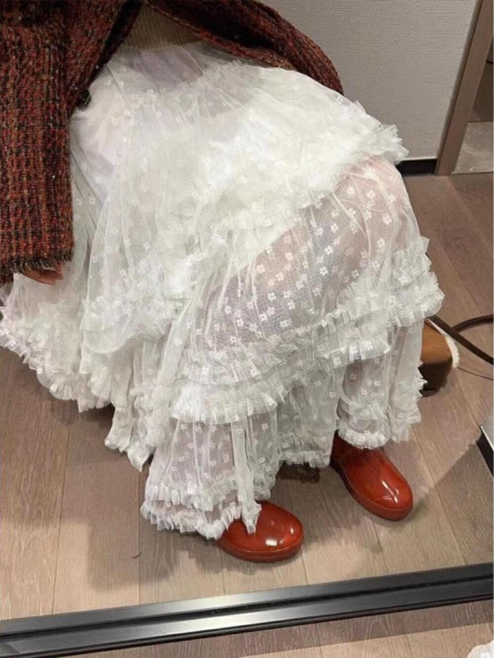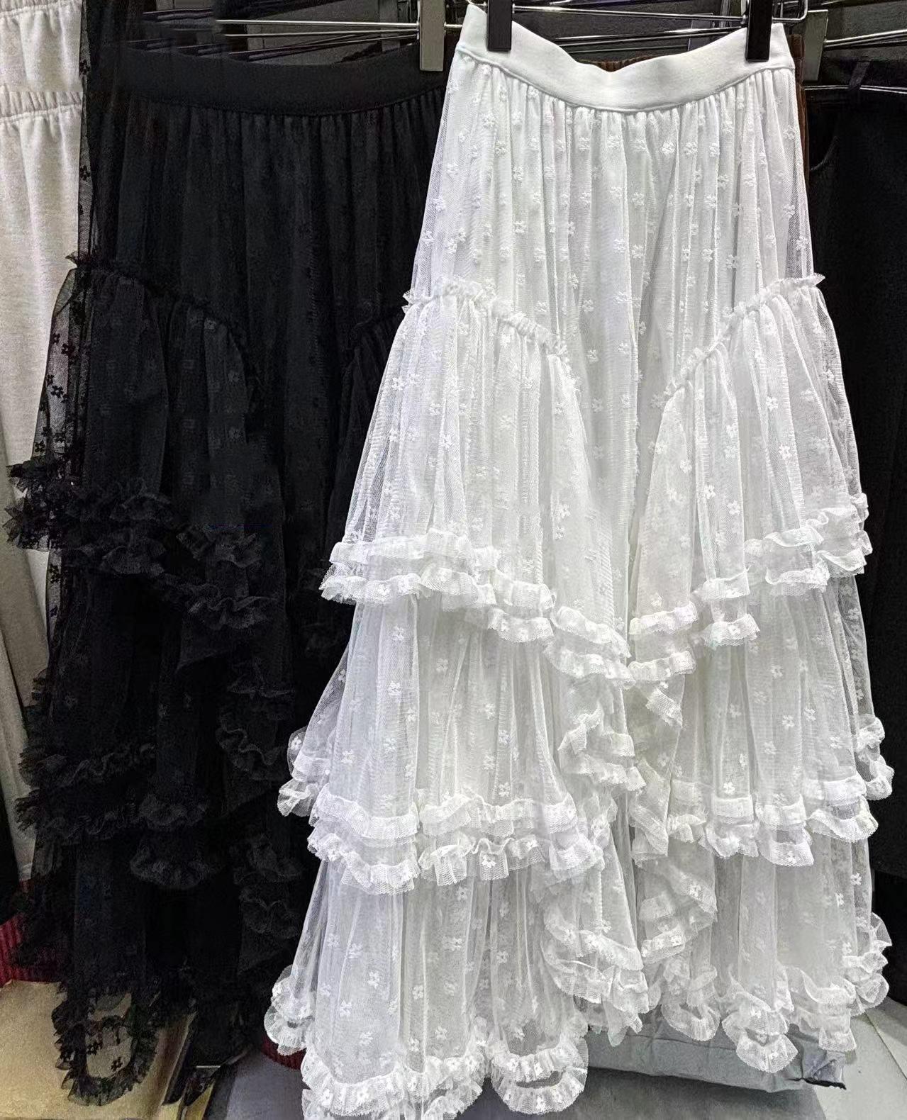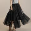 Falda Coreana Chic de Flores de Malla con Borde Elástico Resistente, Cintura Alta, Versátil, Asimétrica, Tipo Pastel para Mujer