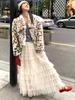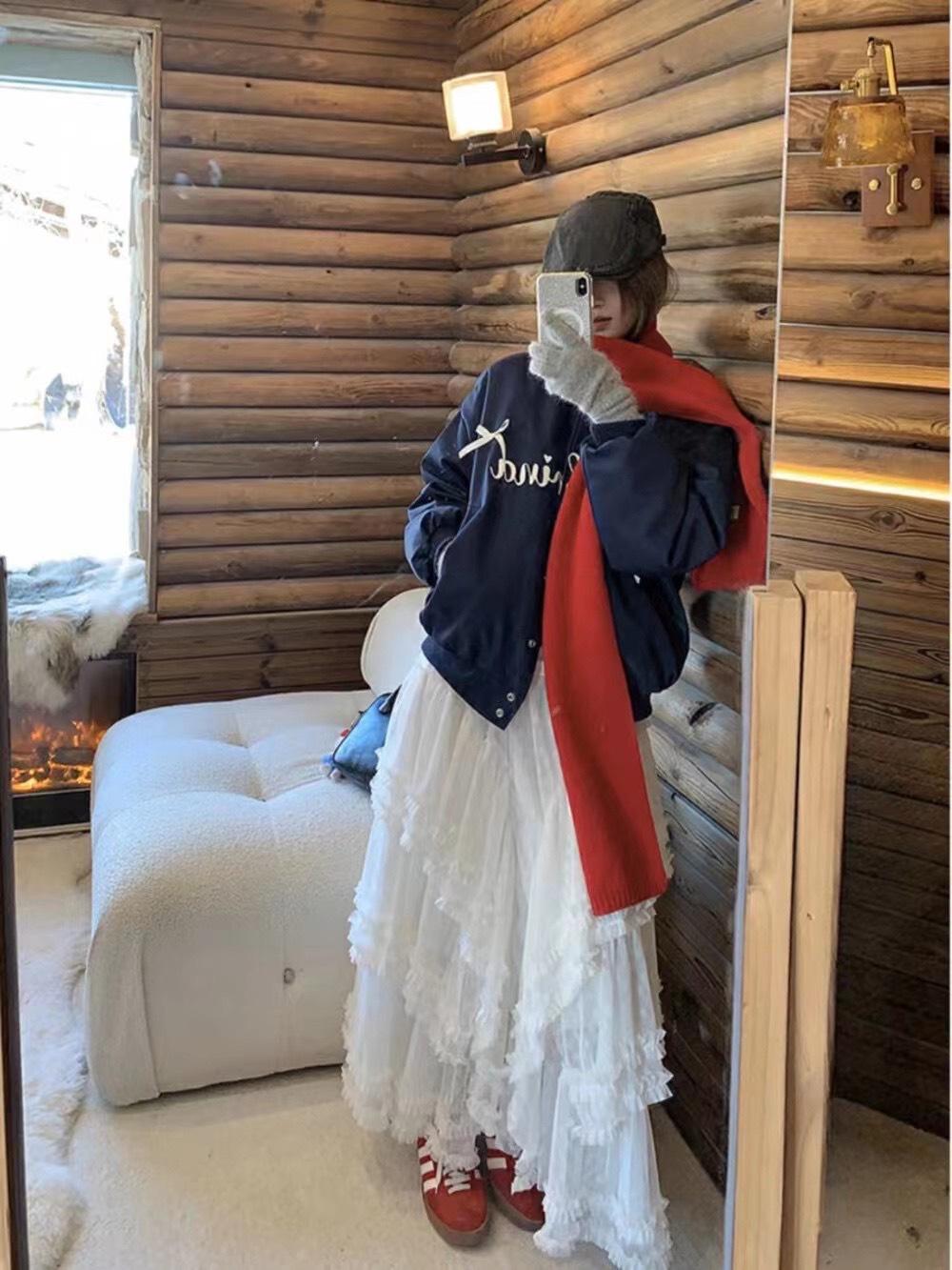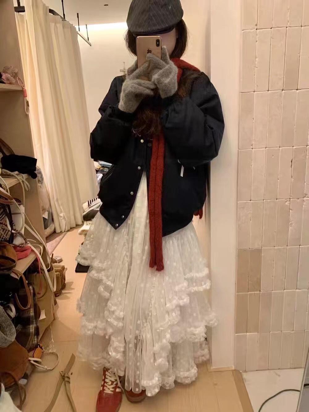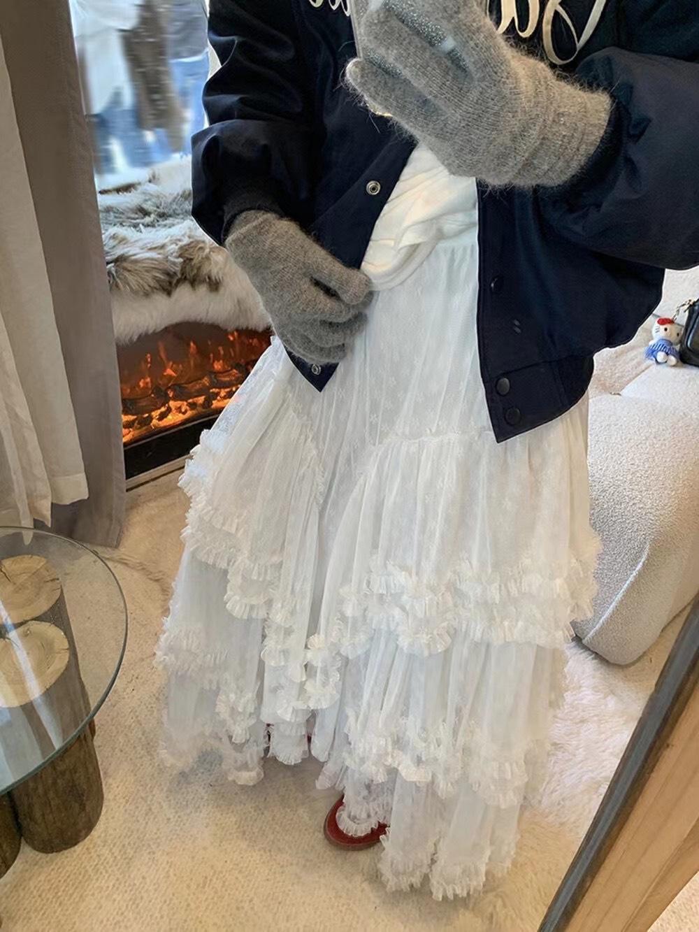 Falda Coreana Chic de Flores de Malla con Borde Elástico Resistente, Cintura Alta, Versátil, Asimétrica, Tipo Pastel para Mujer