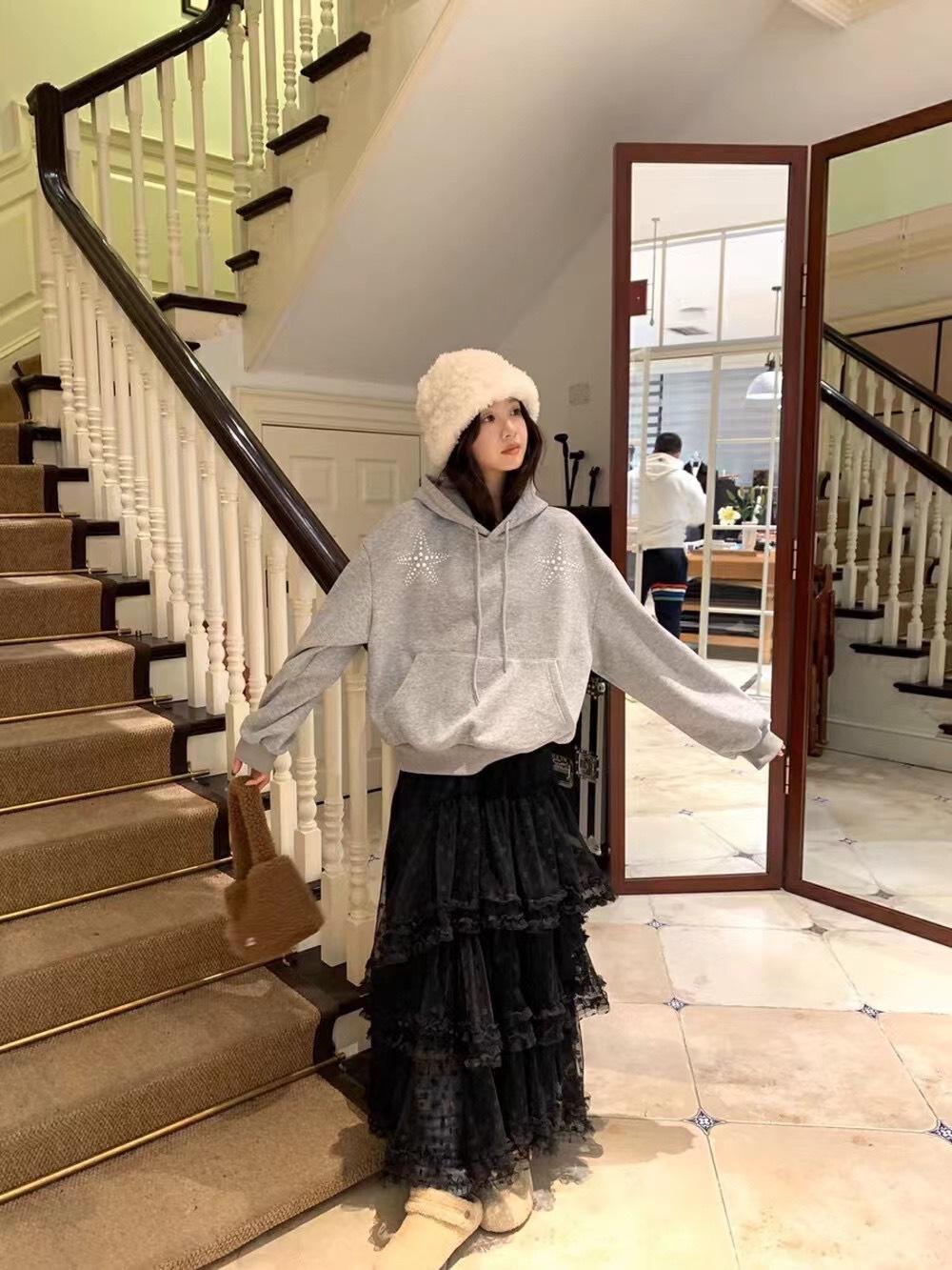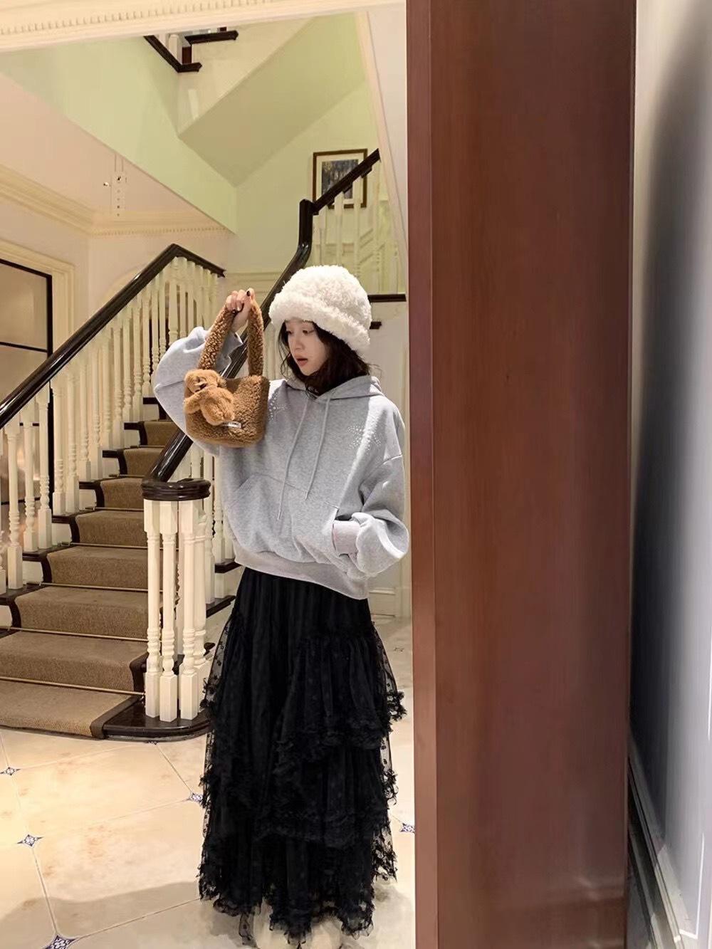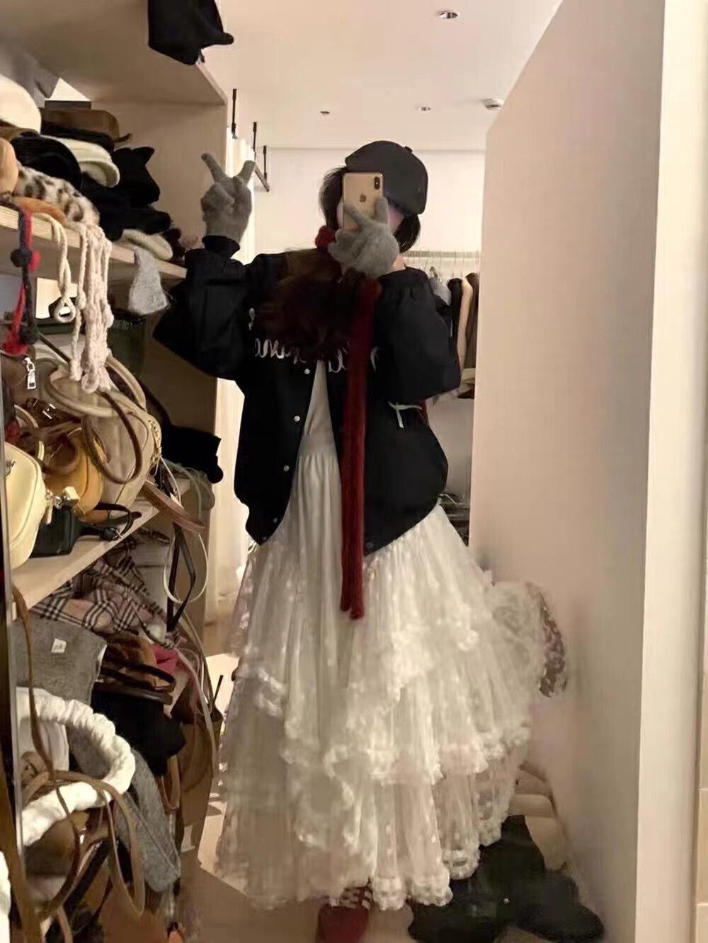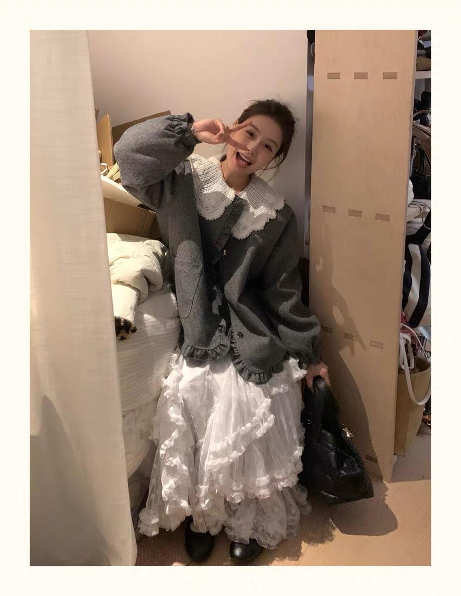 Falda Coreana Chic de Flores de Malla con Borde Elástico Resistente, Cintura Alta, Versátil, Asimétrica, Tipo Pastel para Mujer