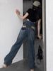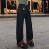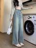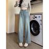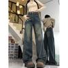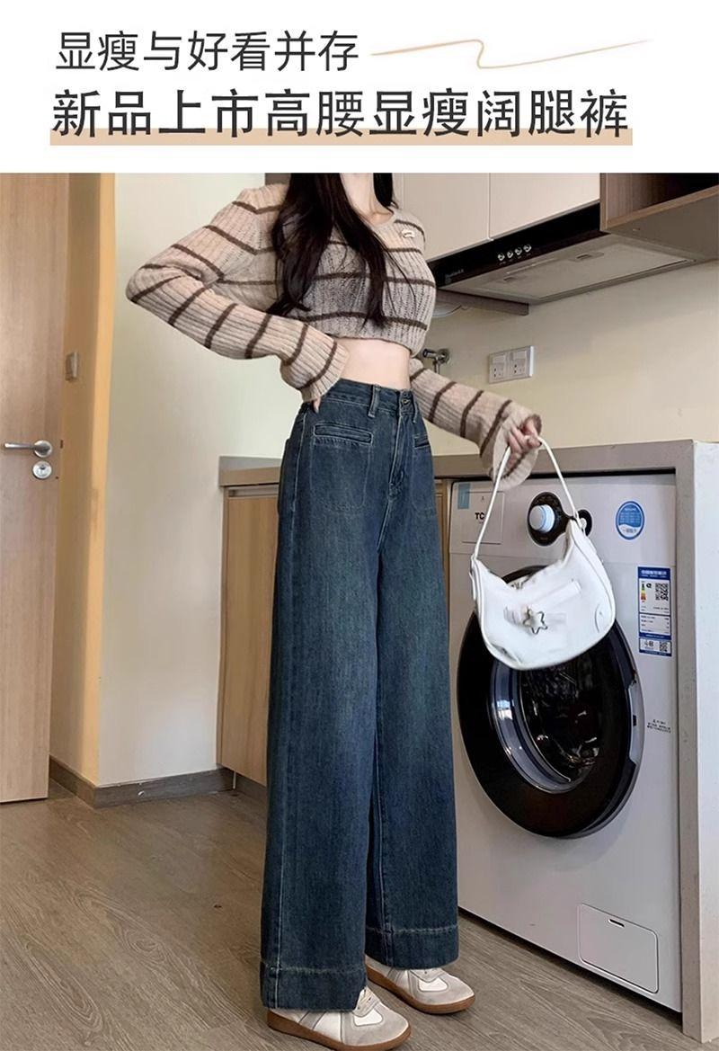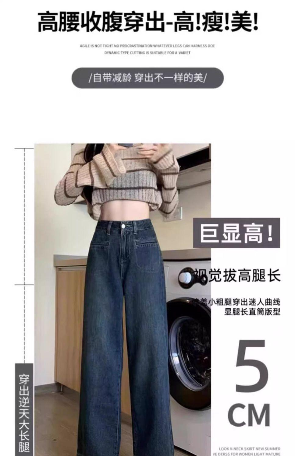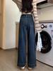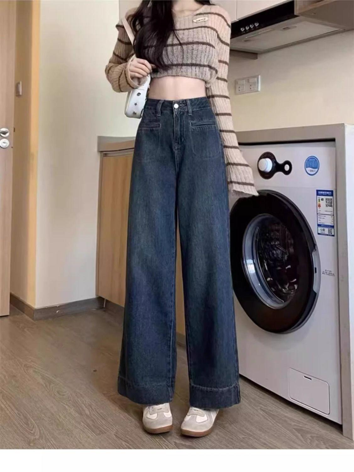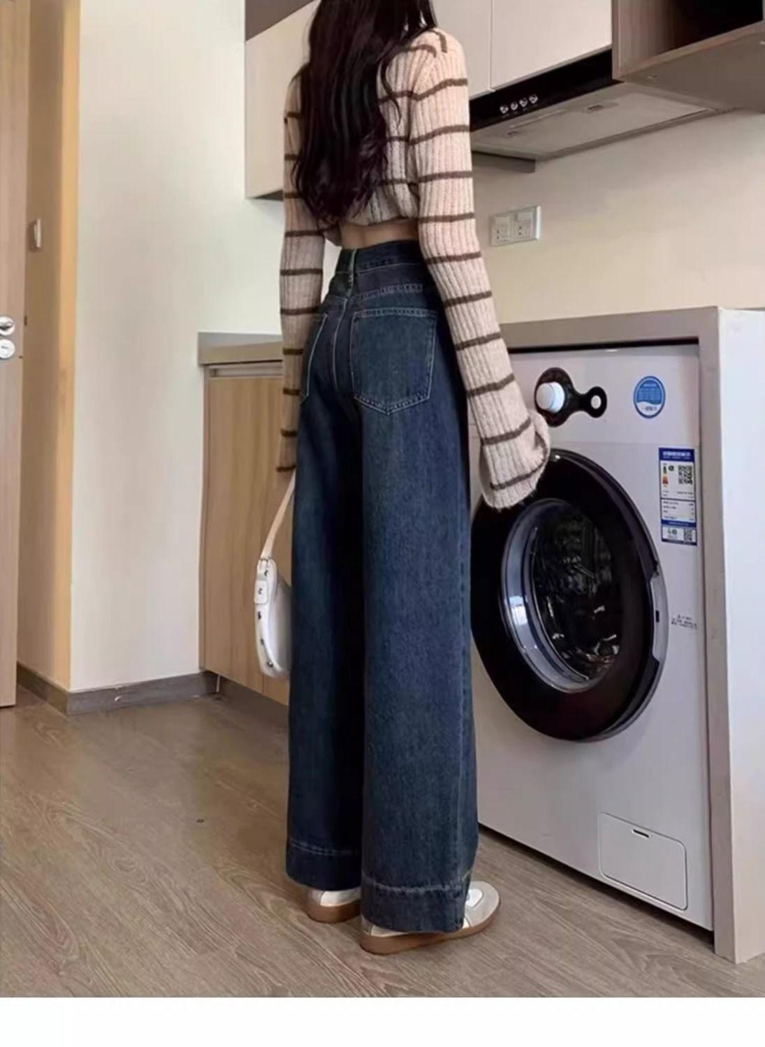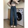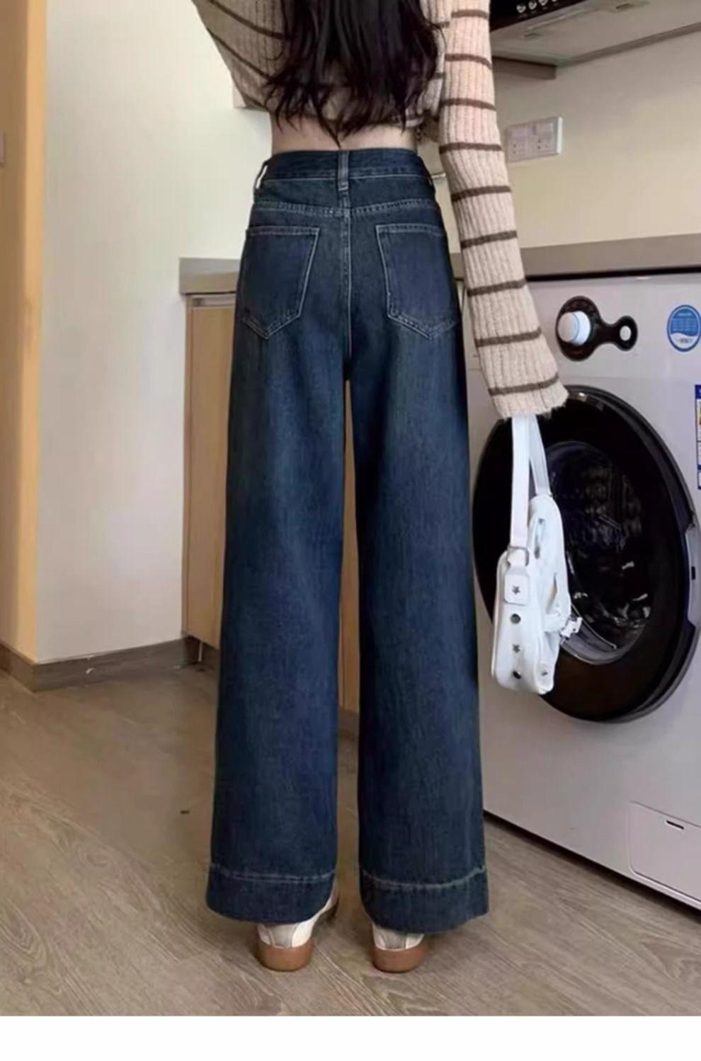 Jeans azul oscuro de talla grande para mujer 2025 Primavera Pierna Ancha Adelgazantes Cintura Alta Sueltos Pantalones Rectos Pequeños