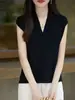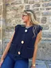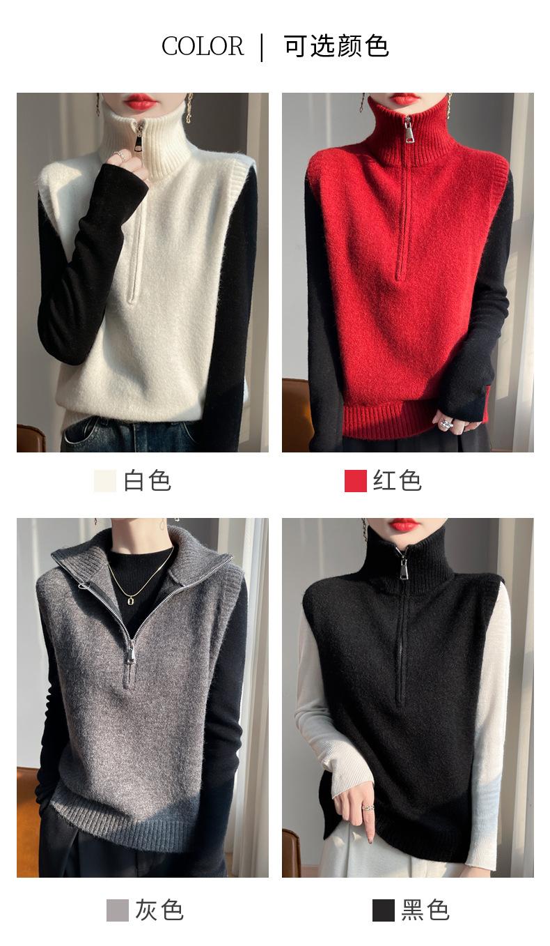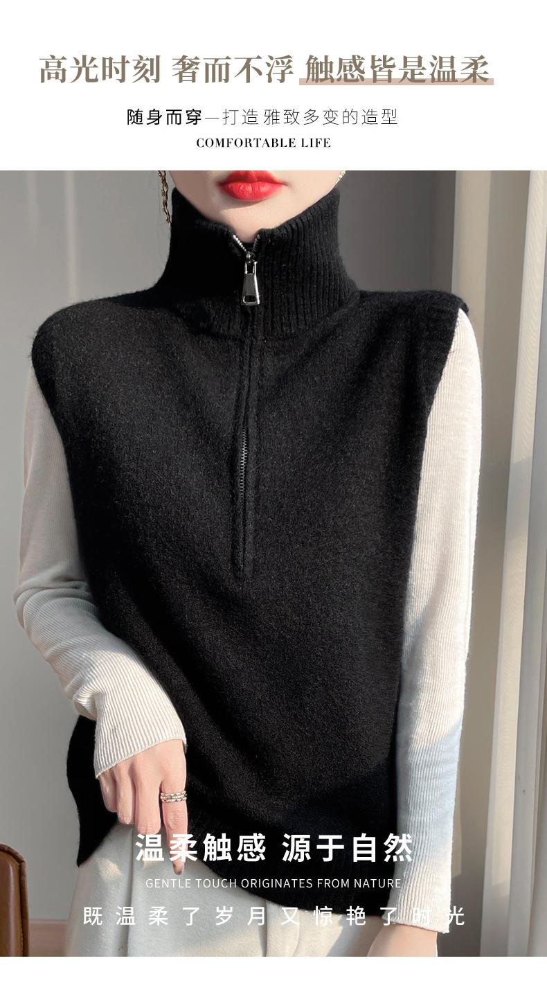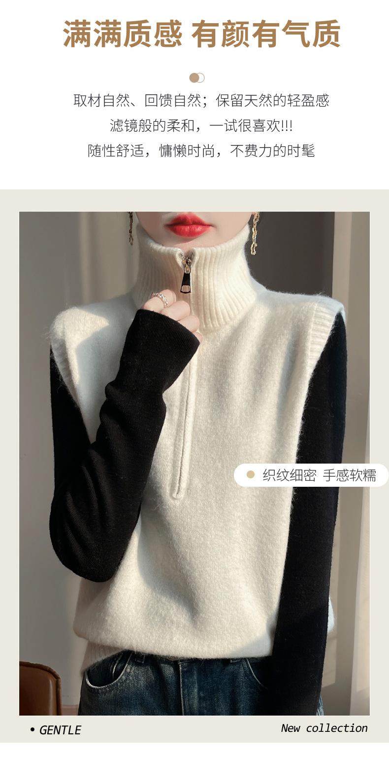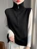 Chaleco de cuello alto con media cremallera para mujer, sin mangas, con abertura, suave y encerado, holgado, de punto apilado.