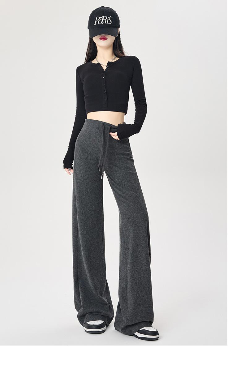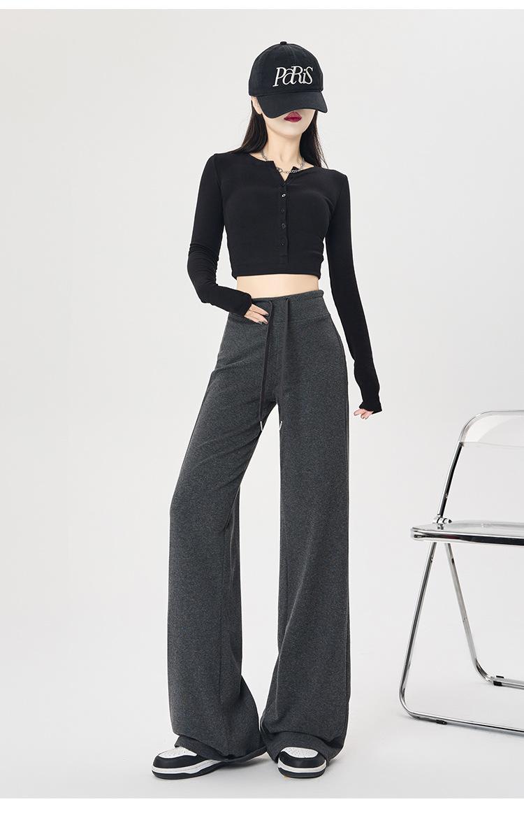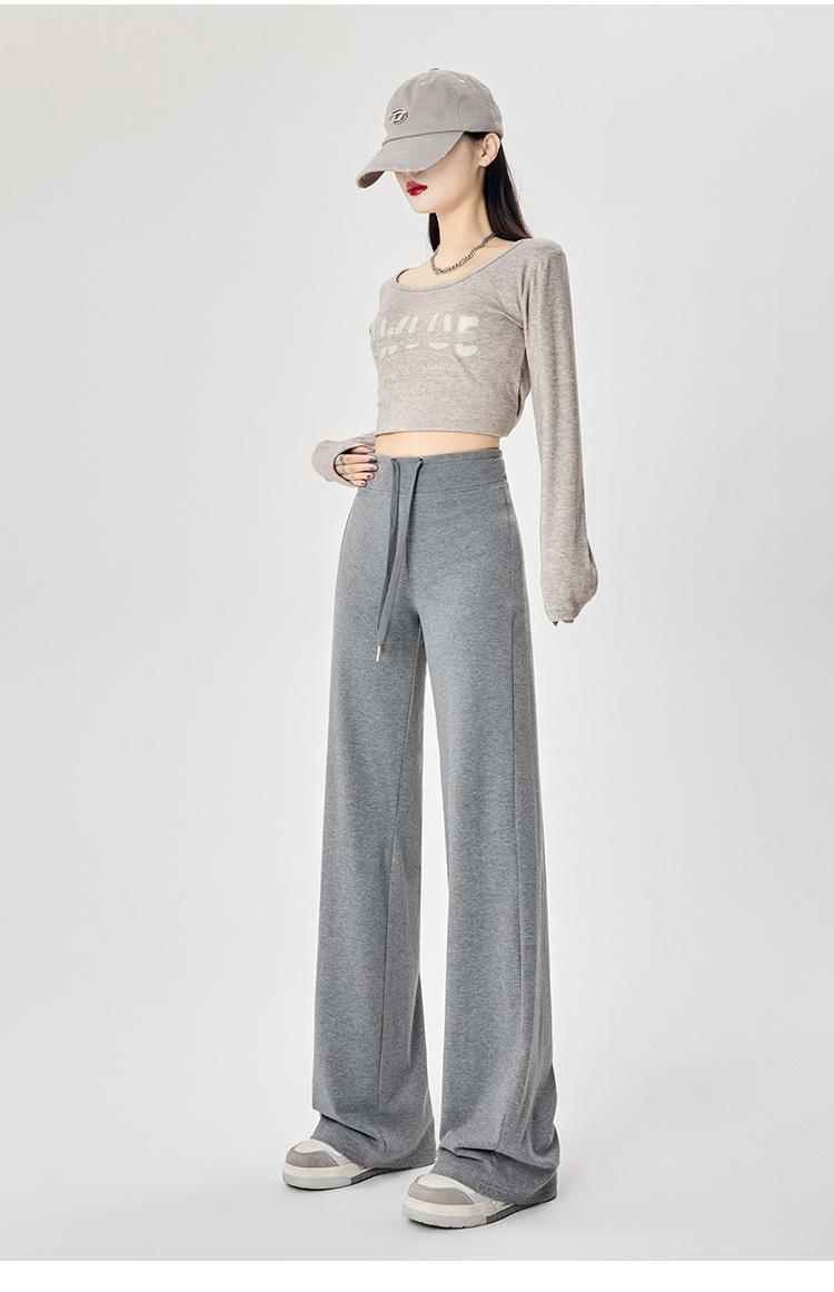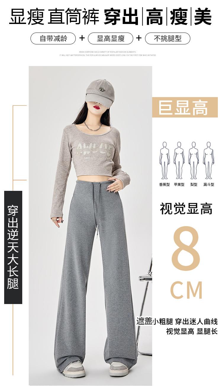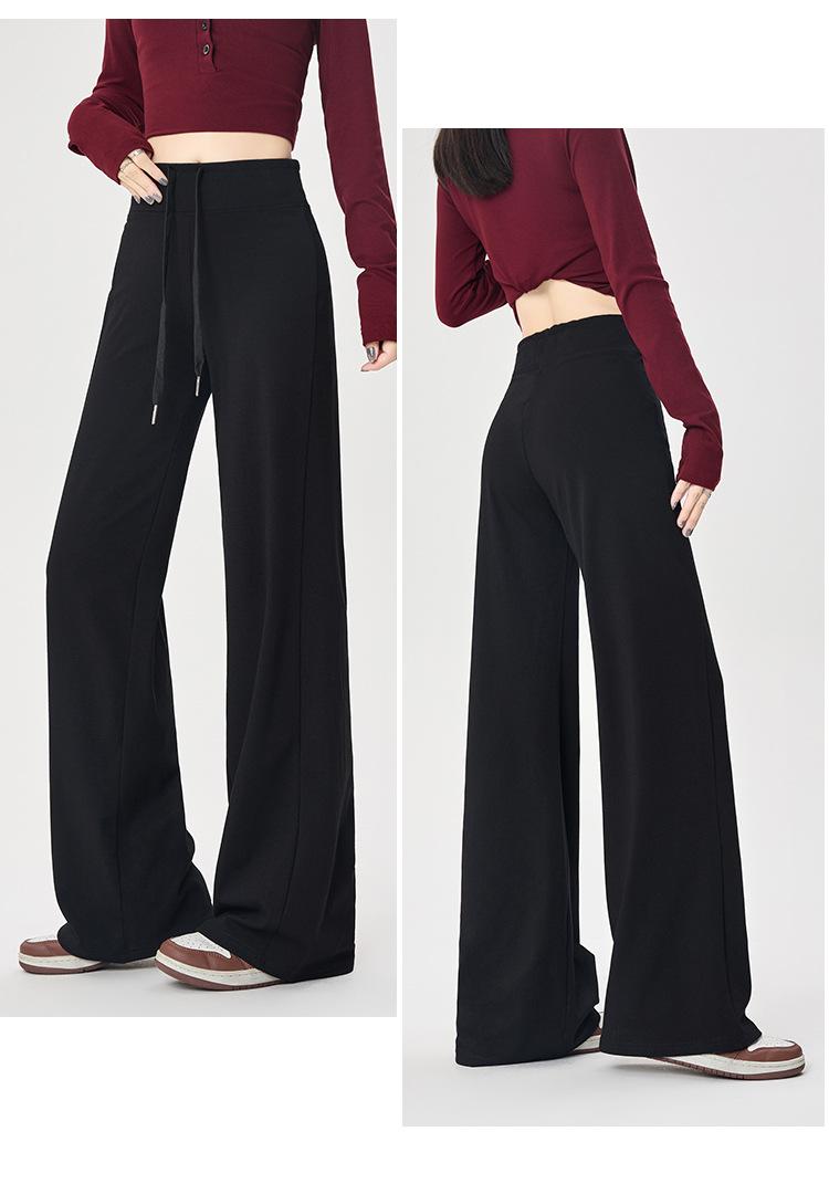 Pantalones Rectos Elásticos con Cordón de Cintura Alta para Mujer, Otoño Temprano 2025, Corte Slim, Adelgazantes, Yoga Fitness Casuales Largos