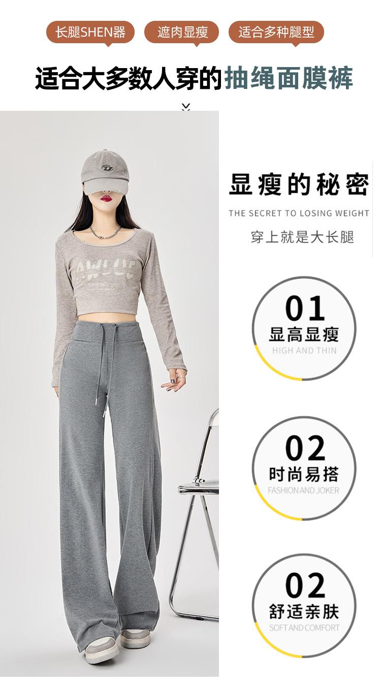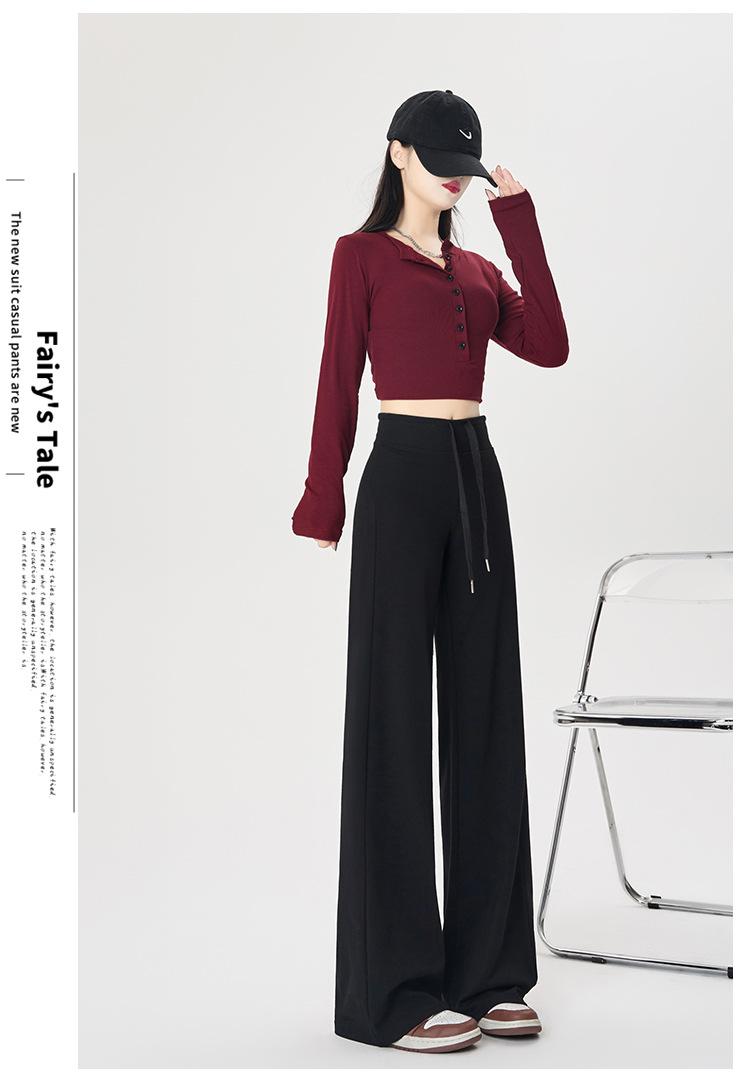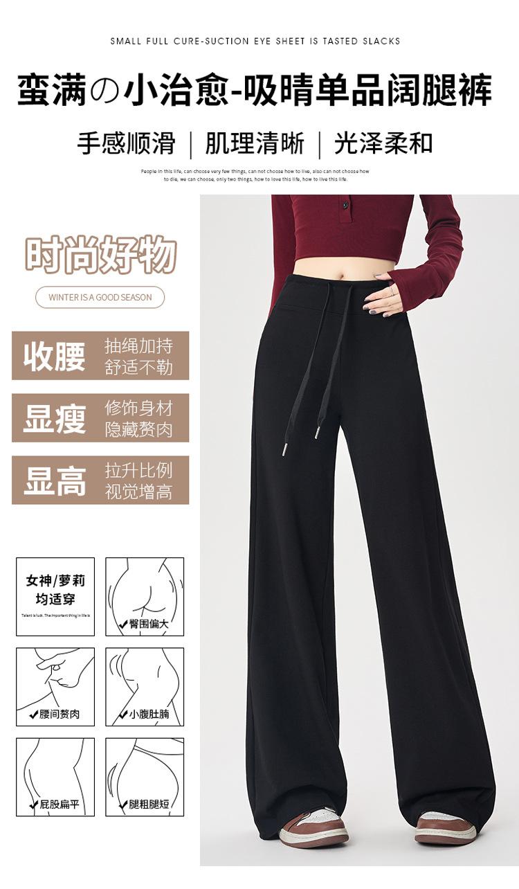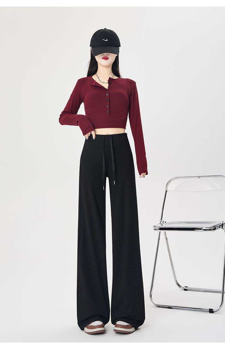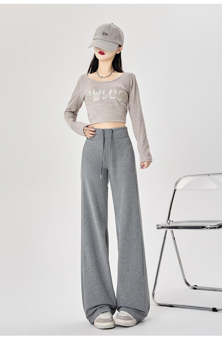 Pantalones Rectos Elásticos con Cordón de Cintura Alta para Mujer, Otoño Temprano 2025, Corte Slim, Adelgazantes, Yoga Fitness Casuales Largos