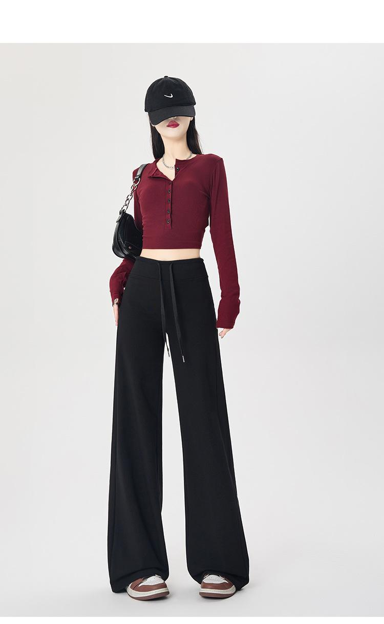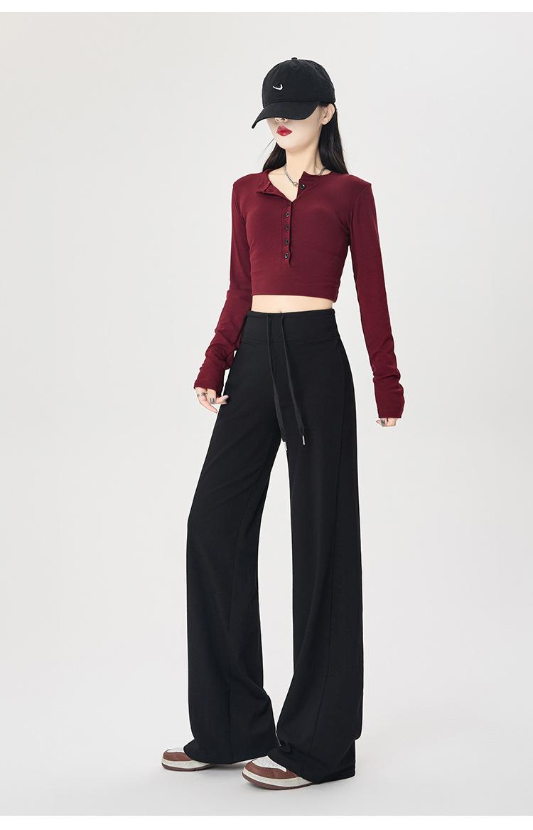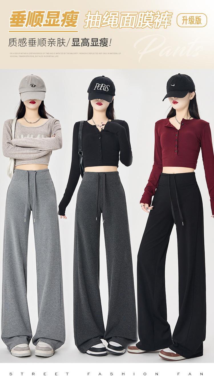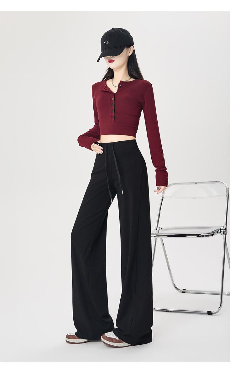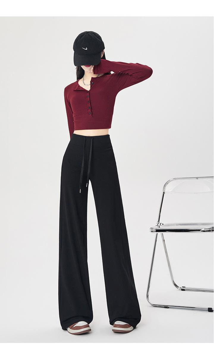 Pantalones Rectos Elásticos con Cordón de Cintura Alta para Mujer, Otoño Temprano 2025, Corte Slim, Adelgazantes, Yoga Fitness Casuales Largos
