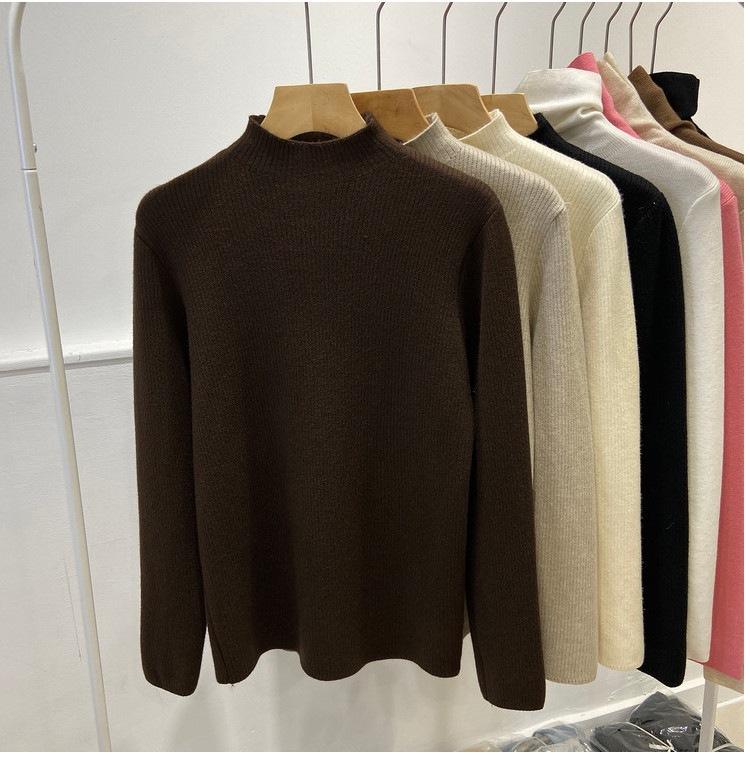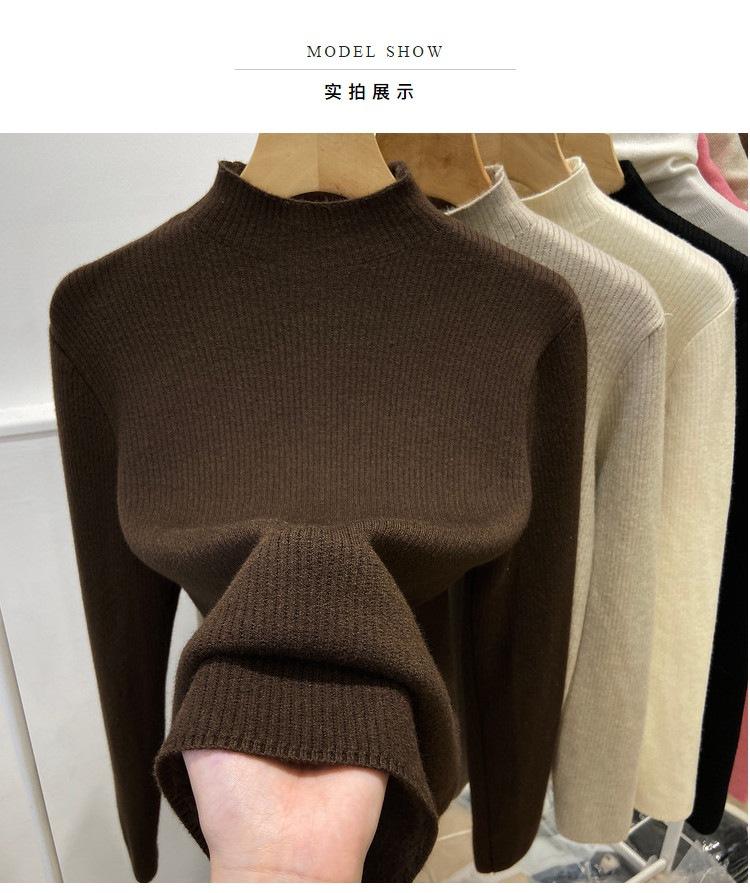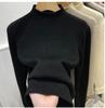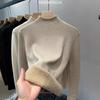 Suéter de punto grueso con forro polar de invierno para mujer, jersey de cuello alto de terciopelo de una pieza, parte superior interior cálida de color sólido