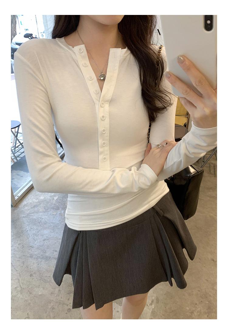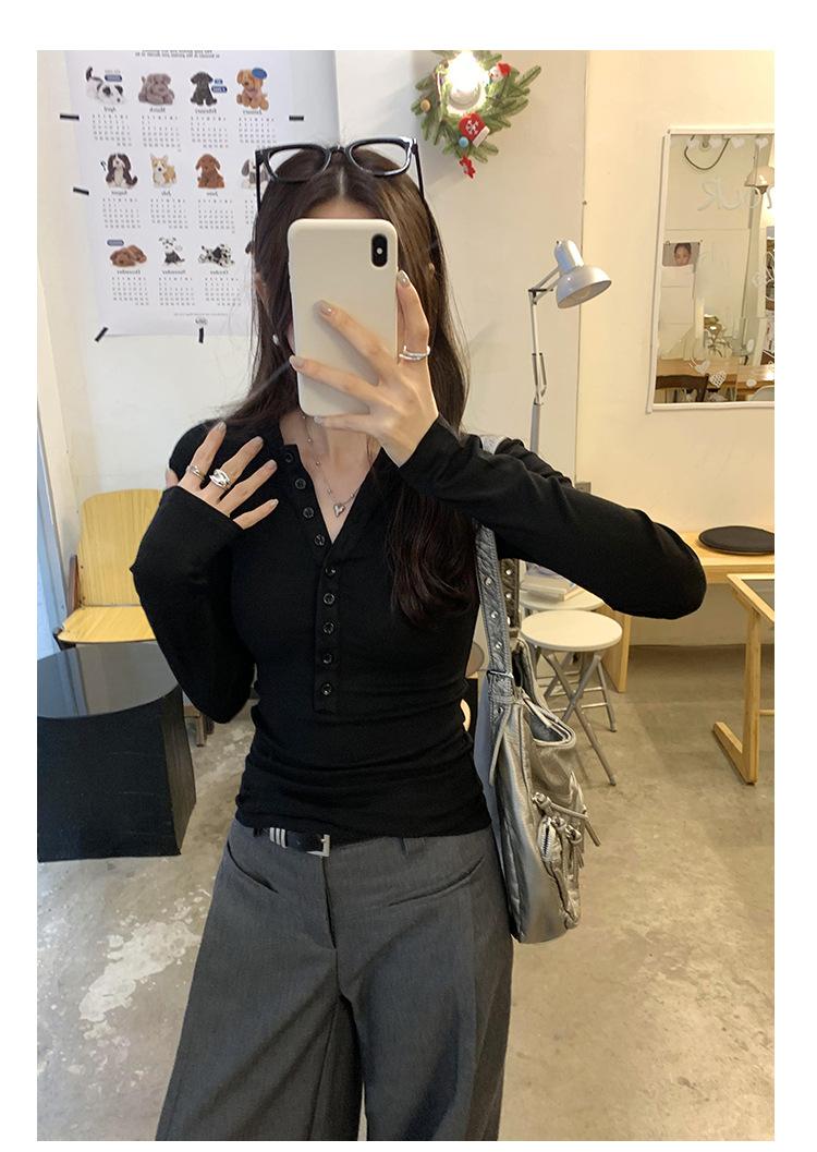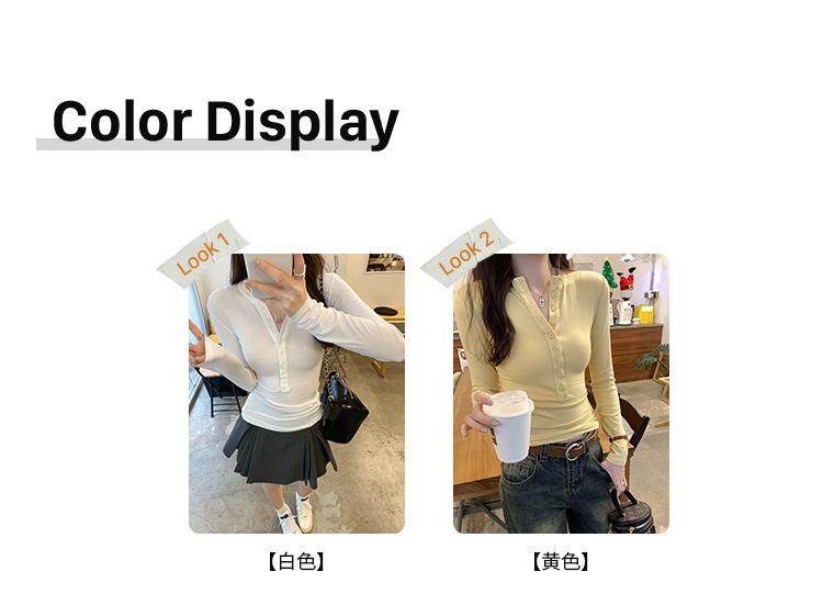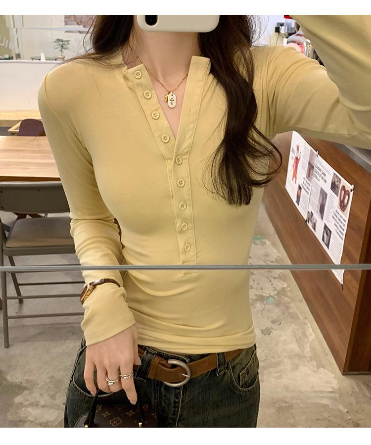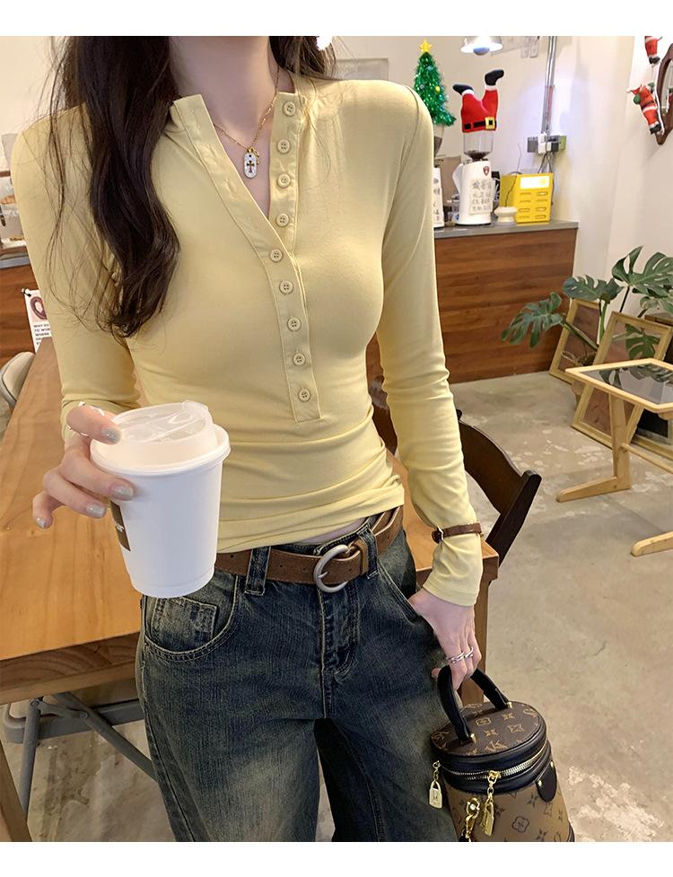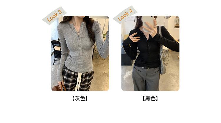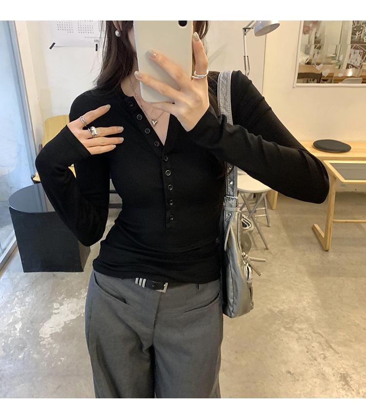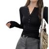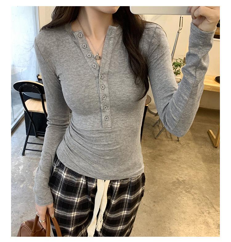 Camiseta básica ajustada de manga larga con cuello henley para mujer, estilo coreano 2025, nuevo otoño, sexy, top interior