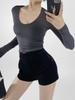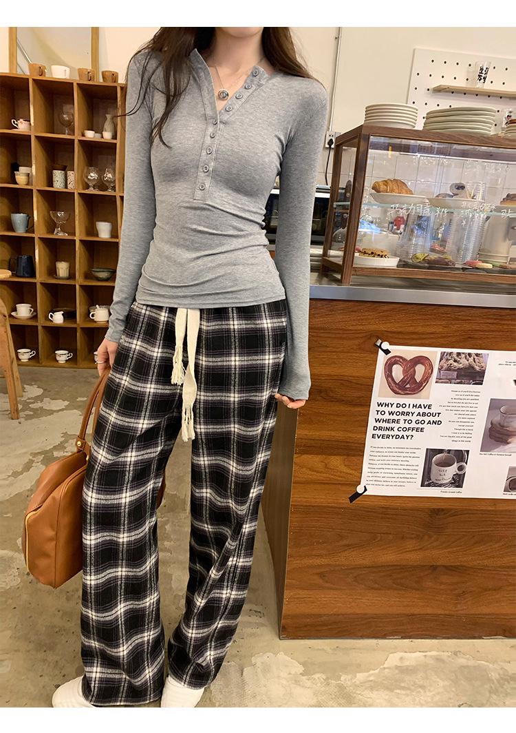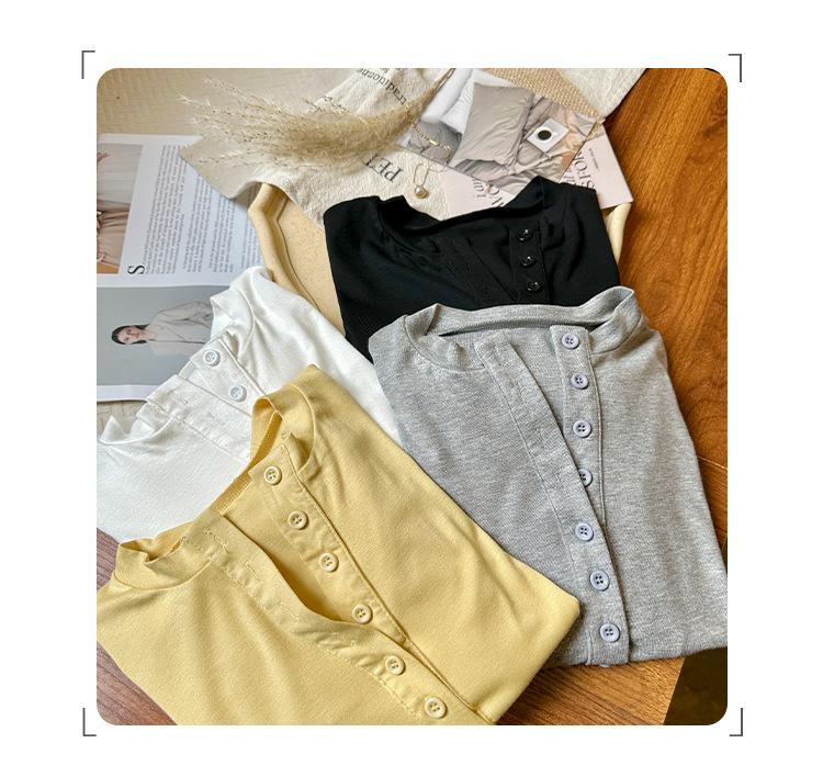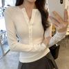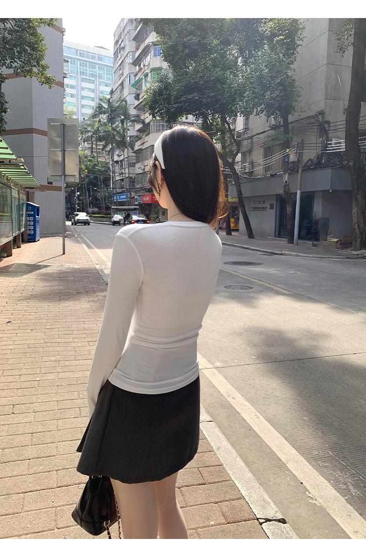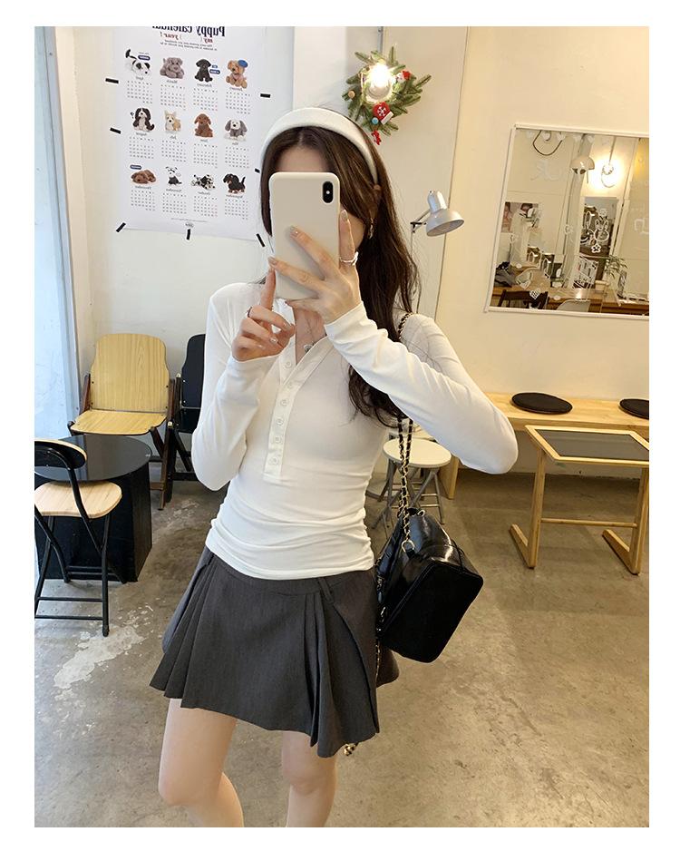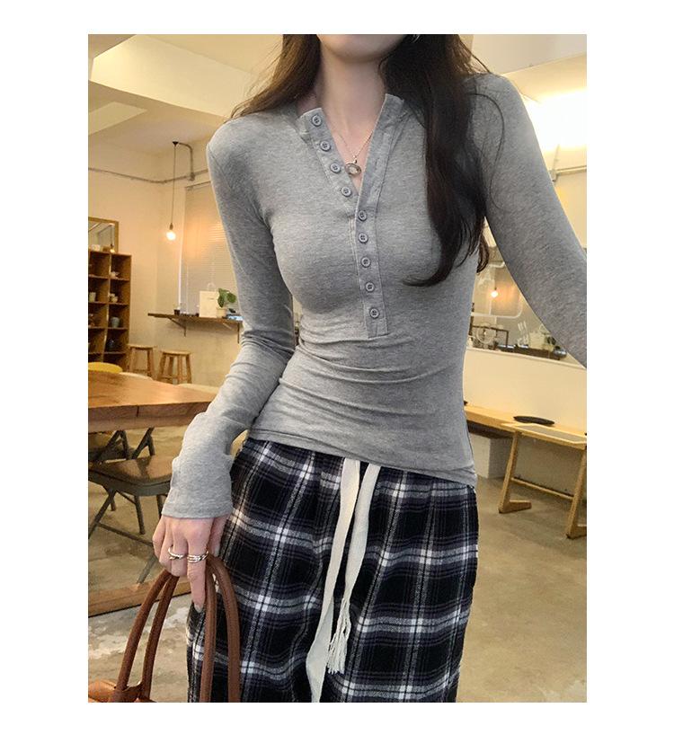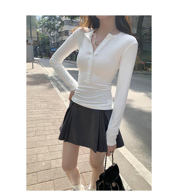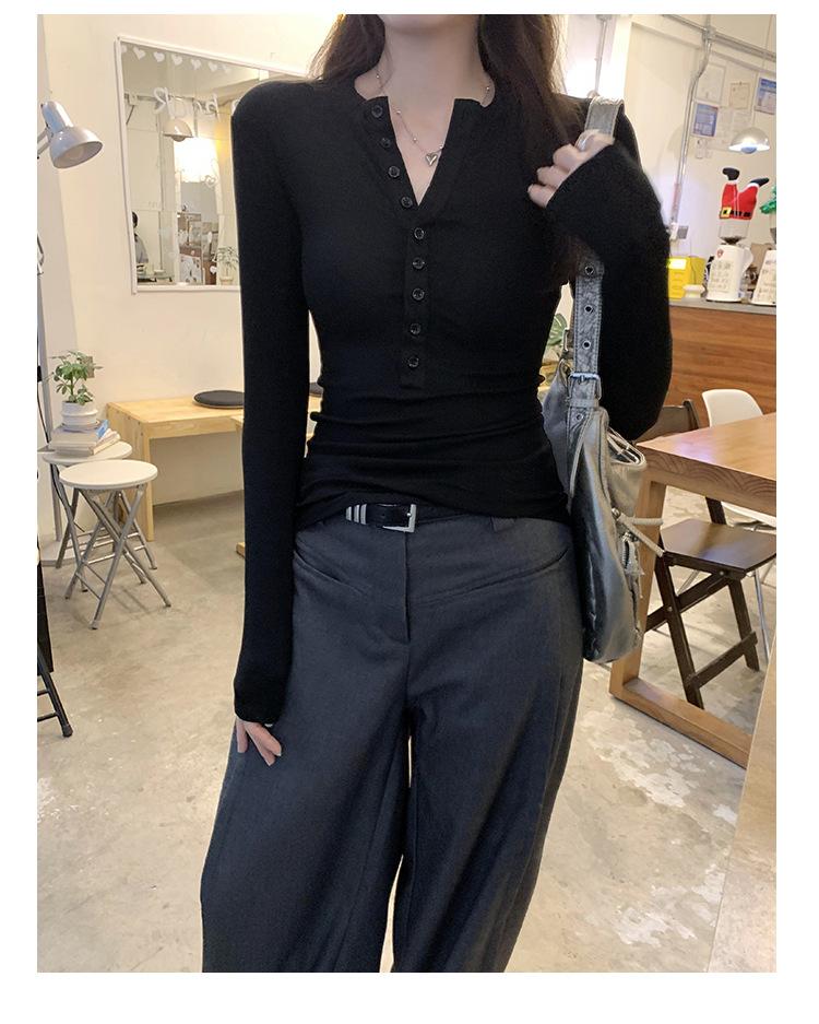 Camiseta básica ajustada de manga larga con cuello henley para mujer, estilo coreano 2025, nuevo otoño, sexy, top interior