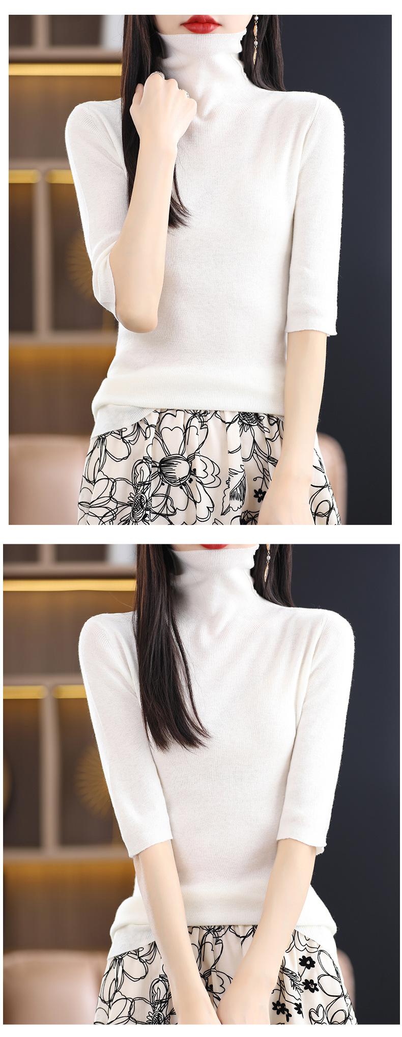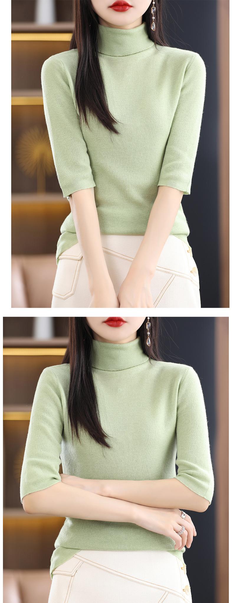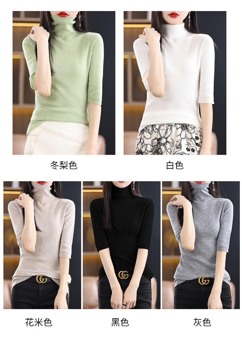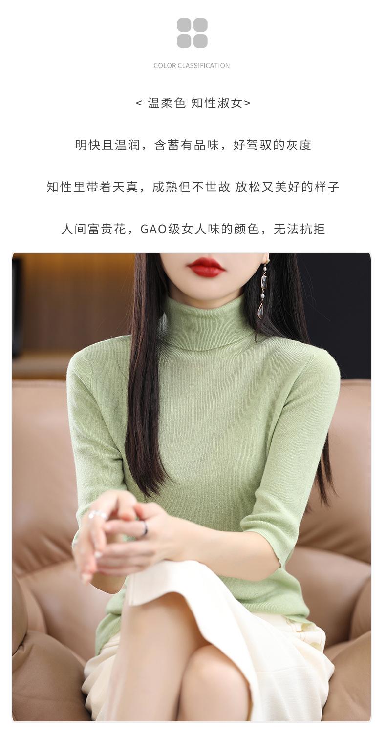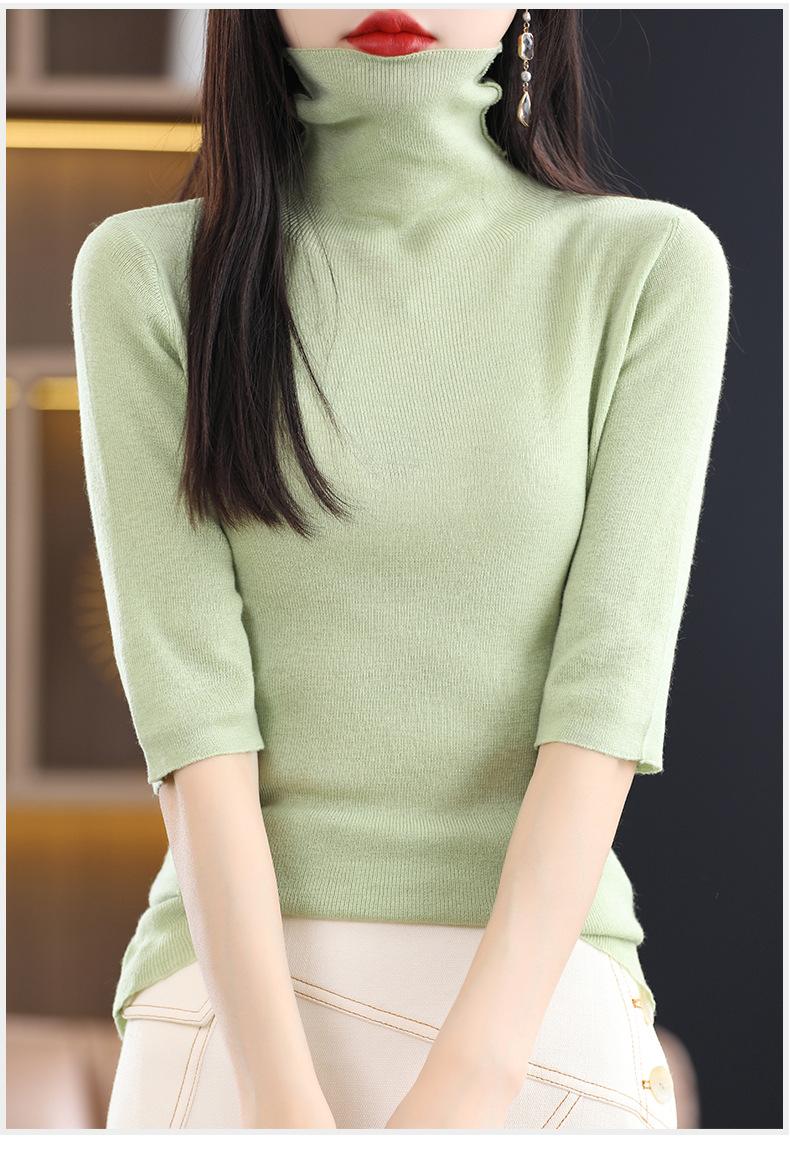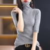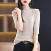 Suéter de mujer de color liso con solapa alta, elegante, informal, sencillo, holgado, combinable con todo, de manga media, de lana peinada, base de punto