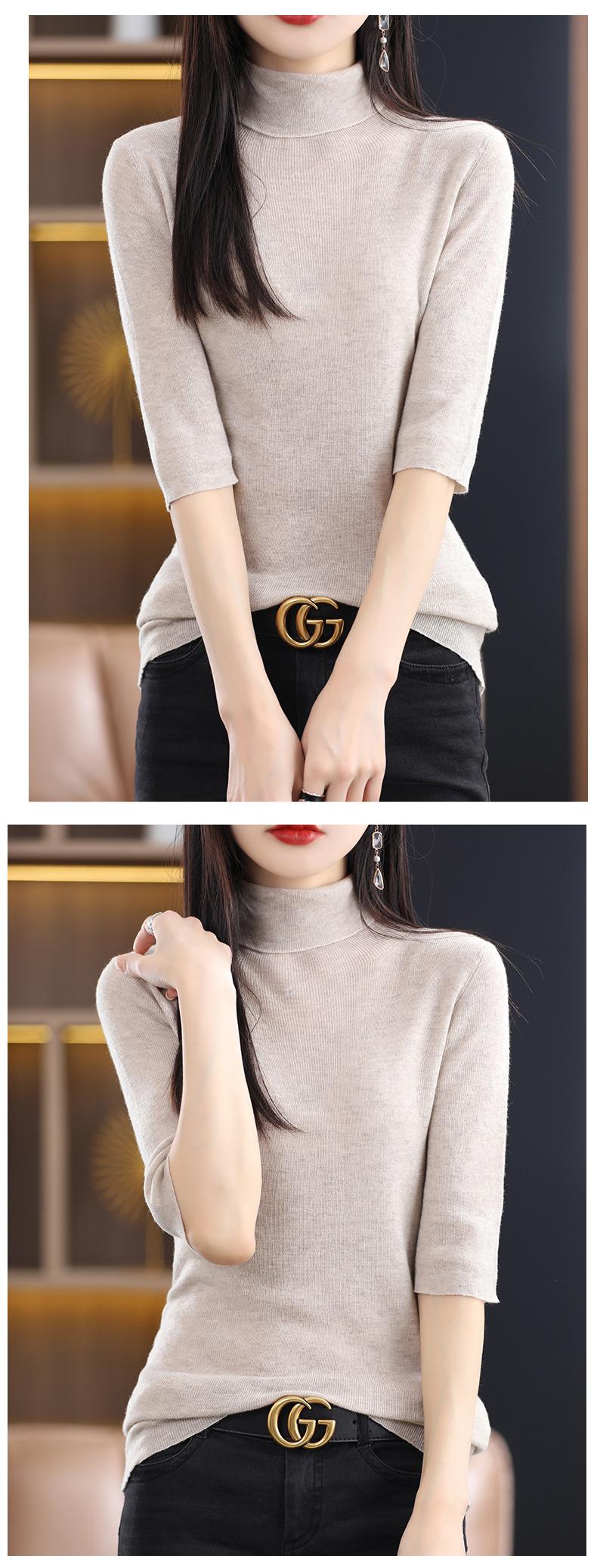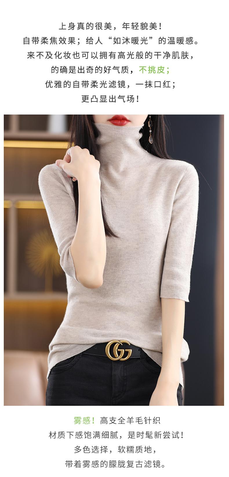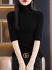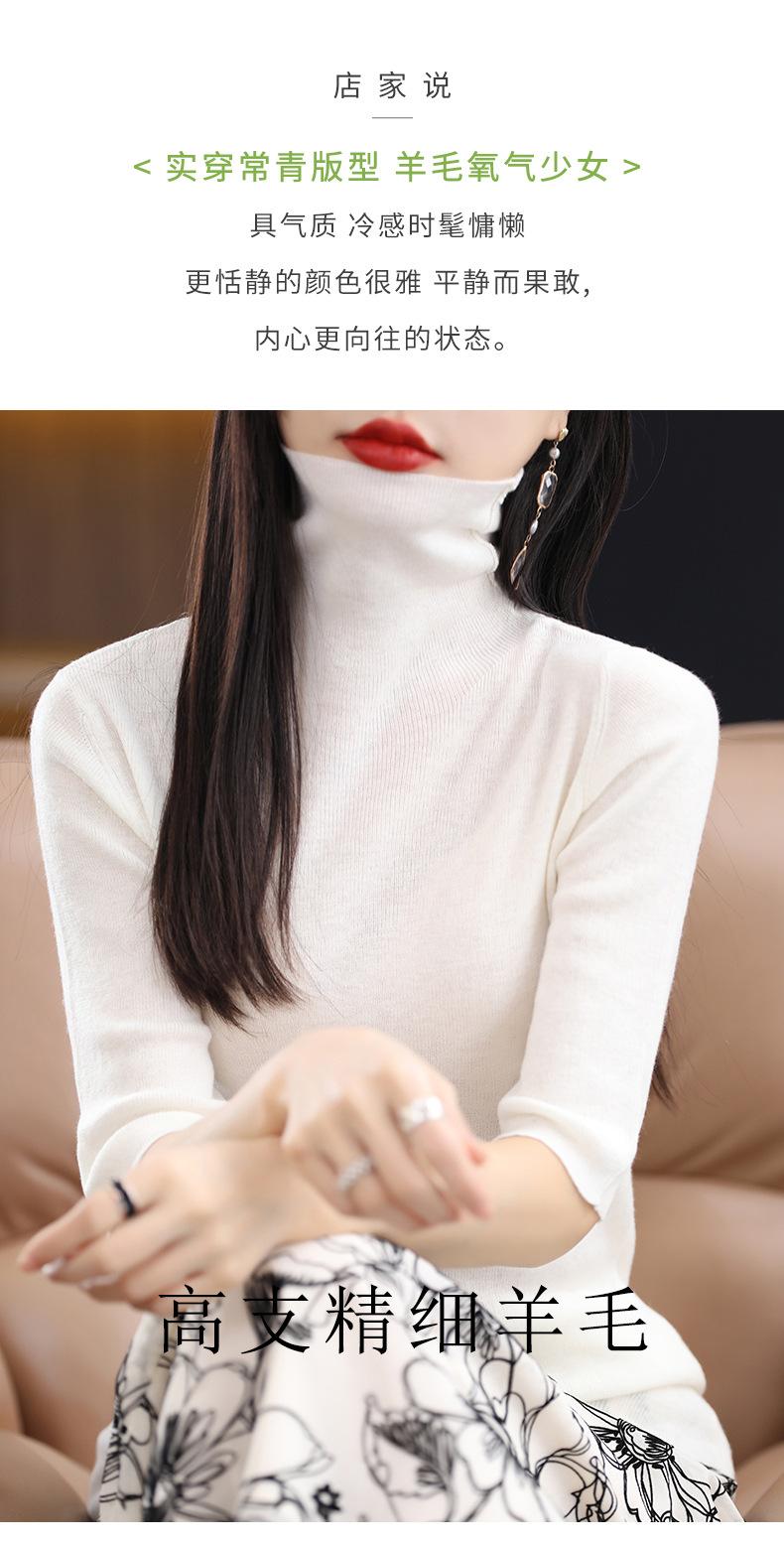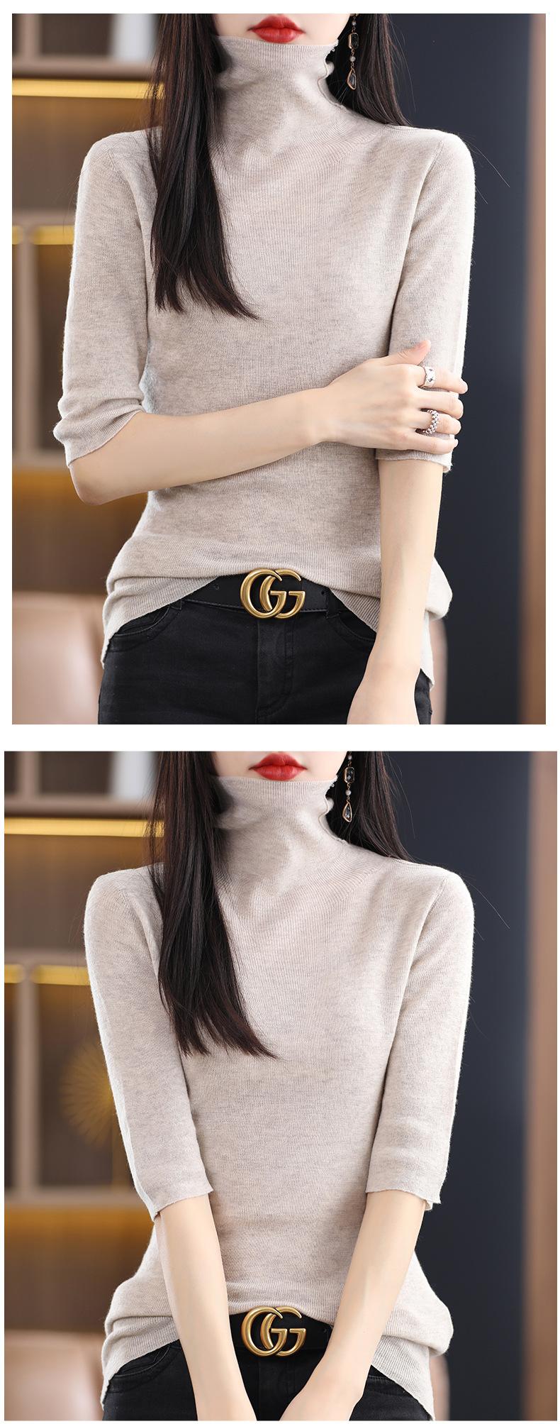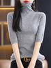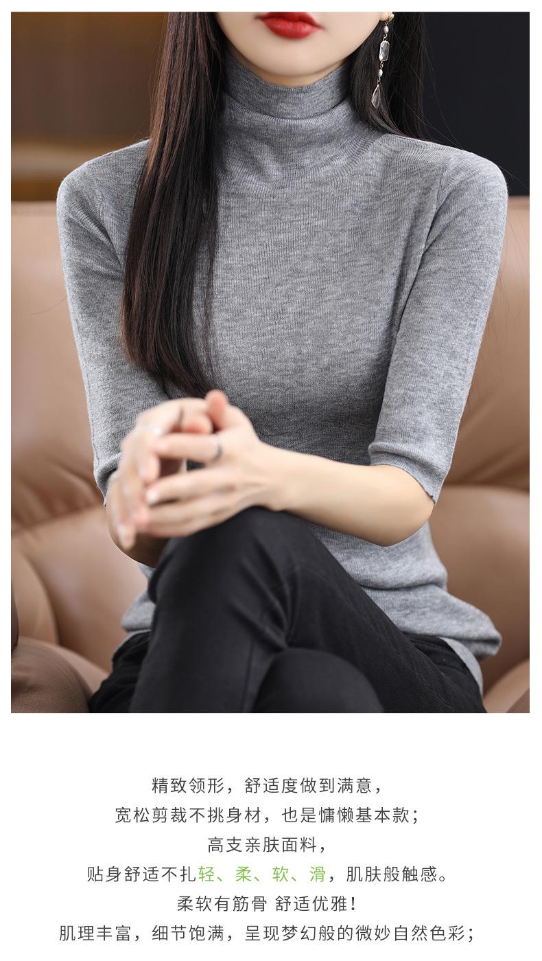 Suéter de mujer de color liso con solapa alta, elegante, informal, sencillo, holgado, combinable con todo, de manga media, de lana peinada, base de punto