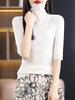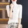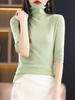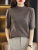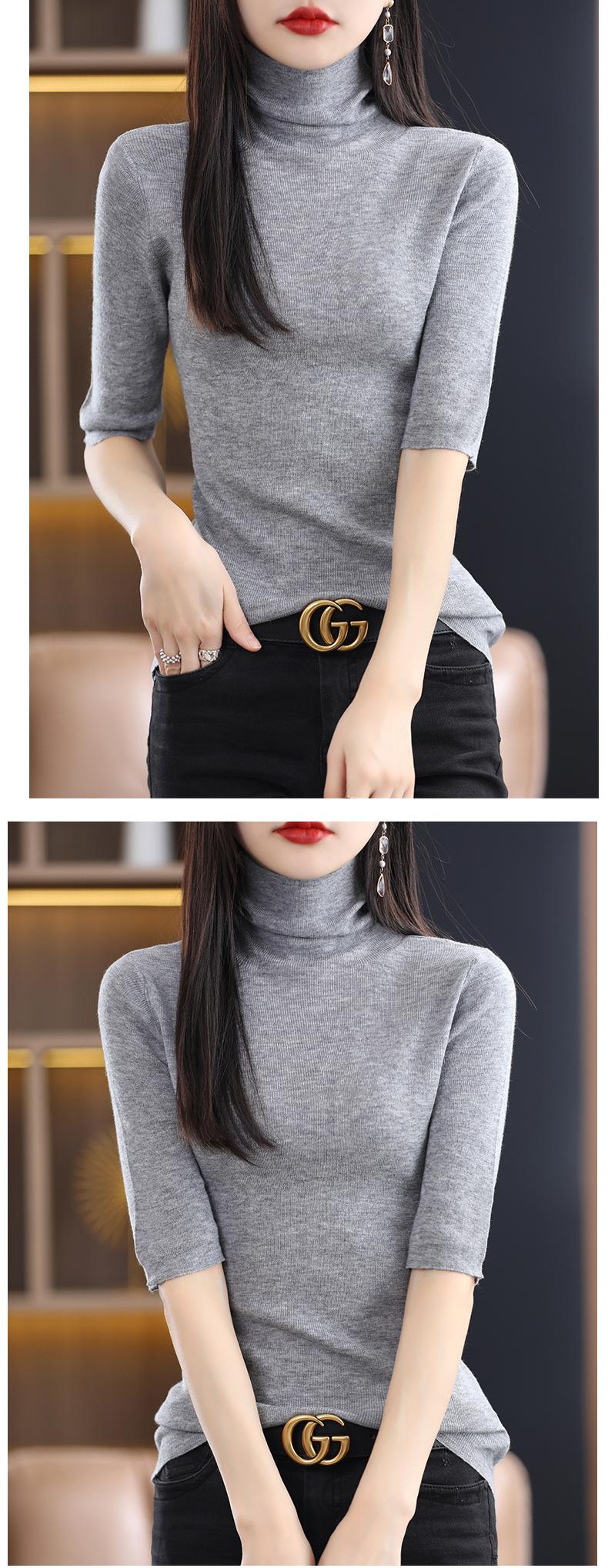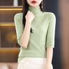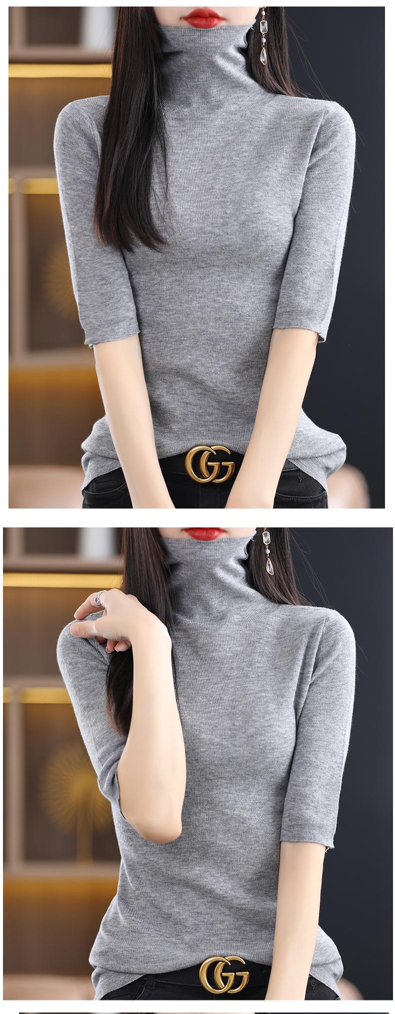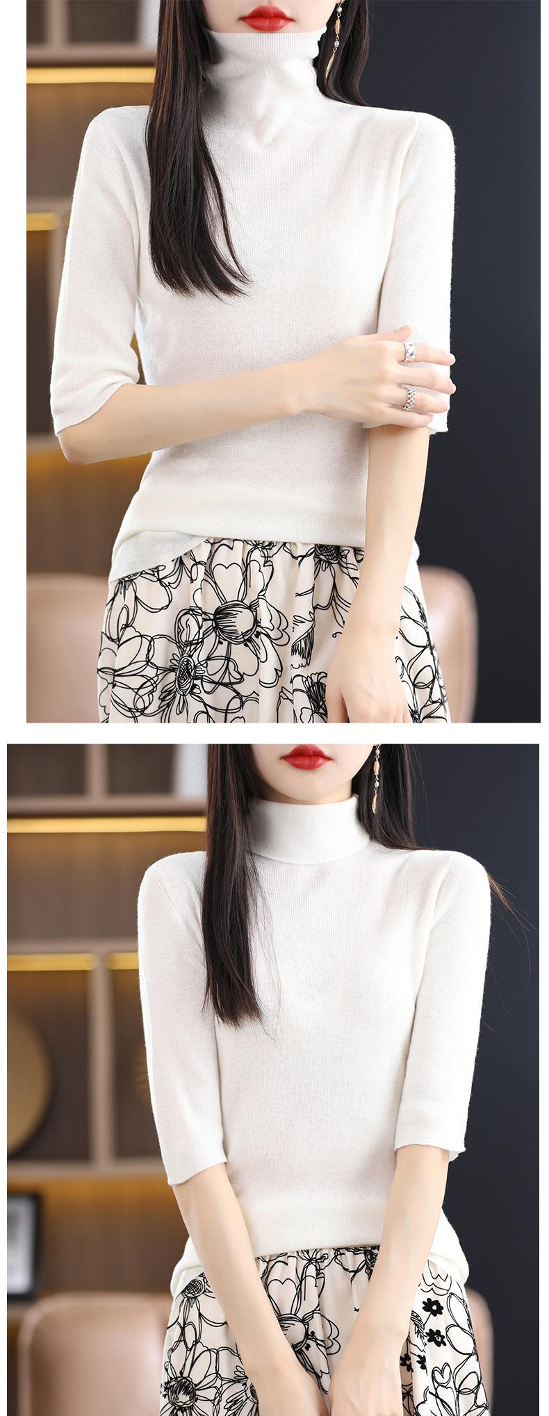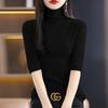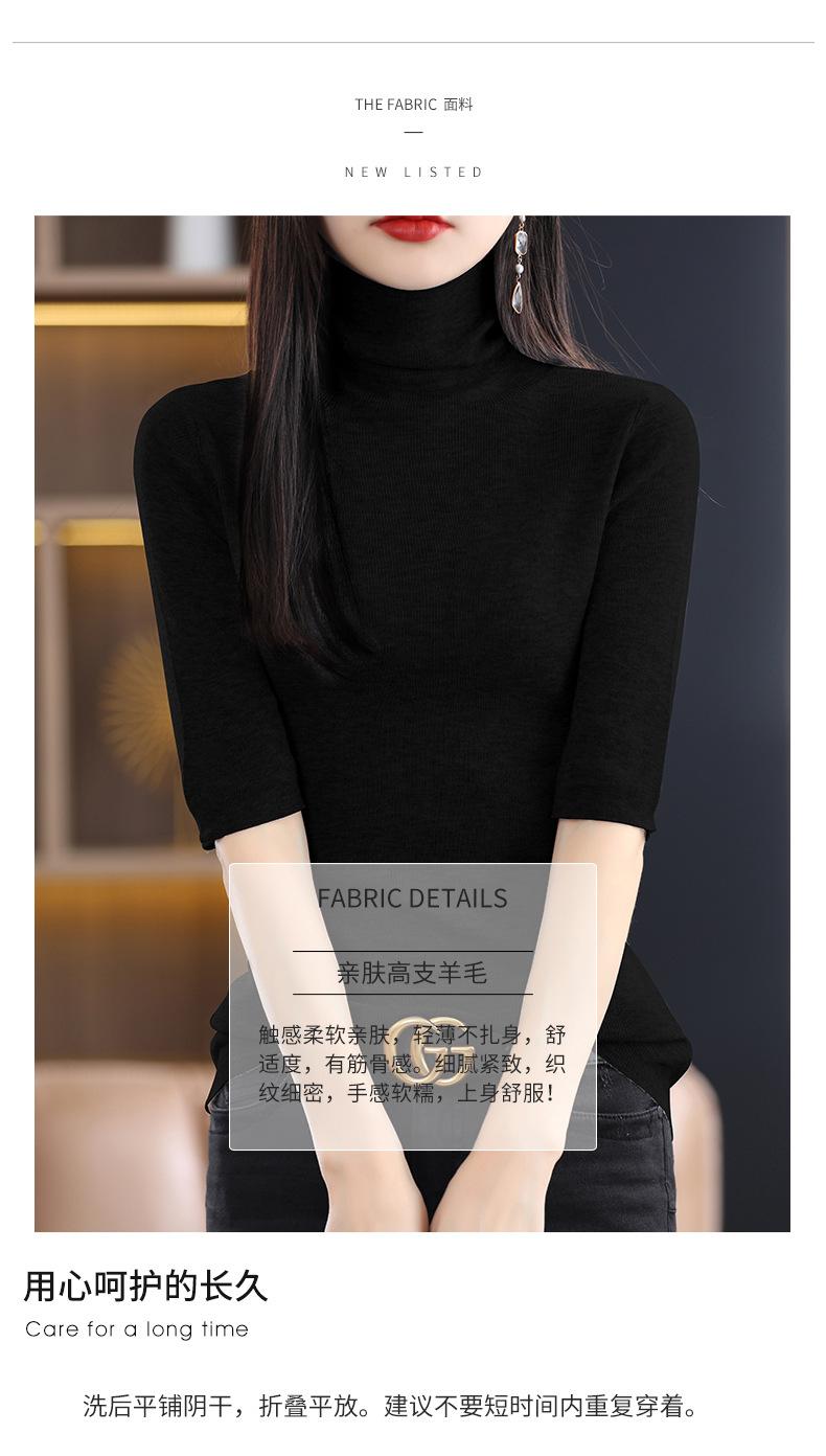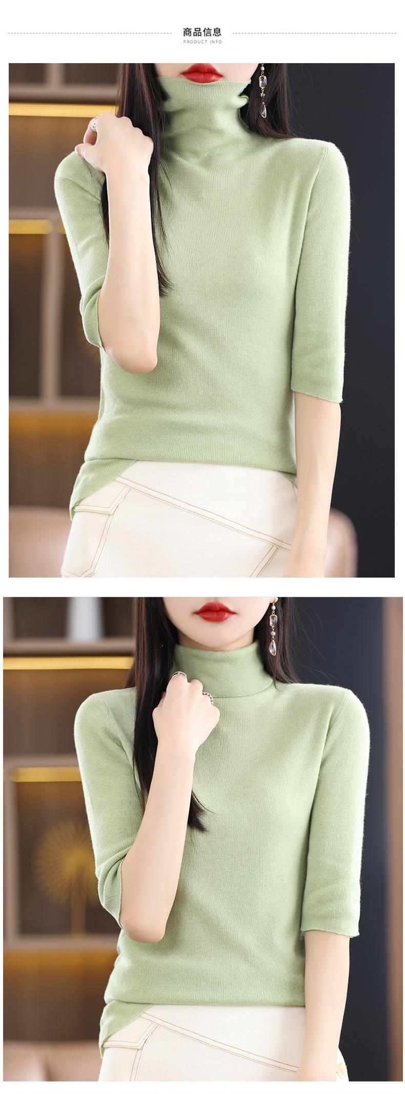 Suéter de mujer de color liso con solapa alta, elegante, informal, sencillo, holgado, combinable con todo, de manga media, de lana peinada, base de punto