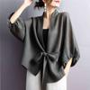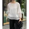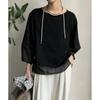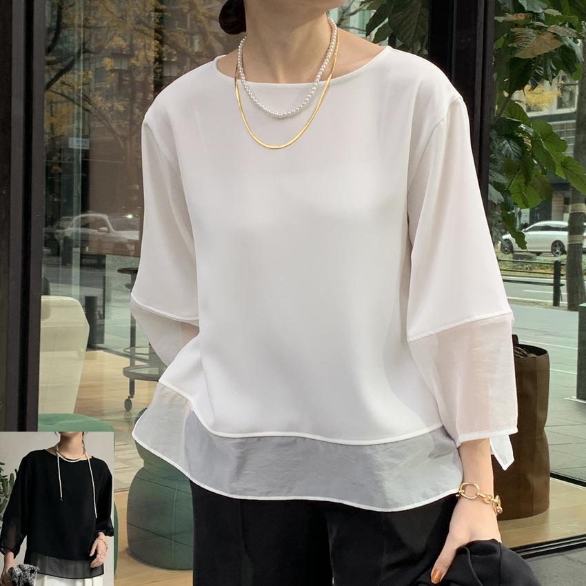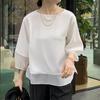 Comercio Exterior Japonés y Coreano Nueva Primavera y Verano Manga Linterna Camisa de Chifón de Color Sólido para Mujer Cuello Blanco Moda Suelta Top de Alta Gama