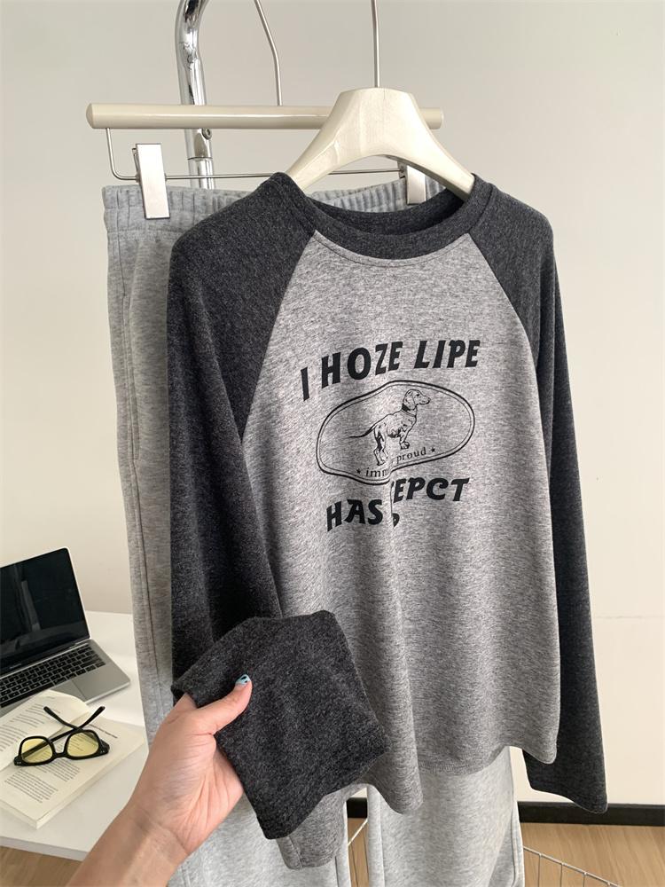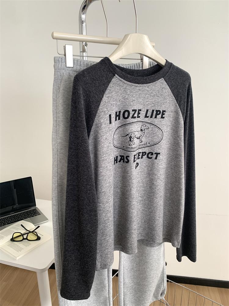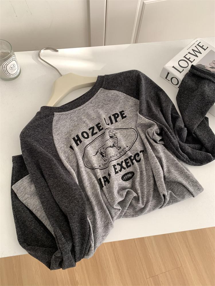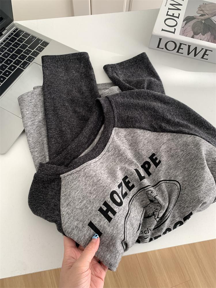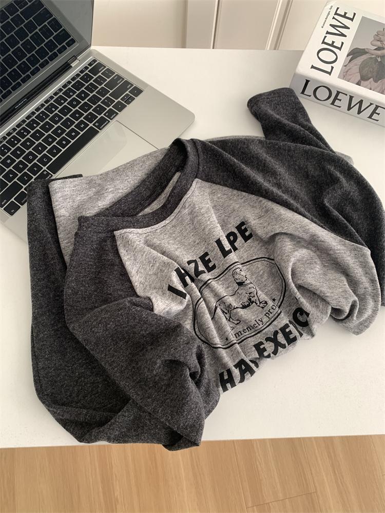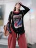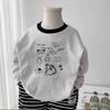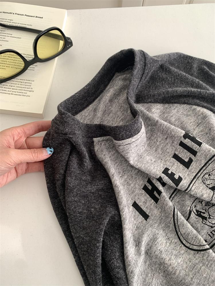 Camiseta holgada informal de cuello redondo para mujer, manga raglán de cachemira, con dibujos animados, para principios de primavera de 2025