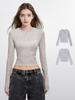 Camiseta gris de manga larga con cuello en V para mujer, otoño e invierno 2025, nueva camiseta de algodón de corte entallado con base interior de punto.