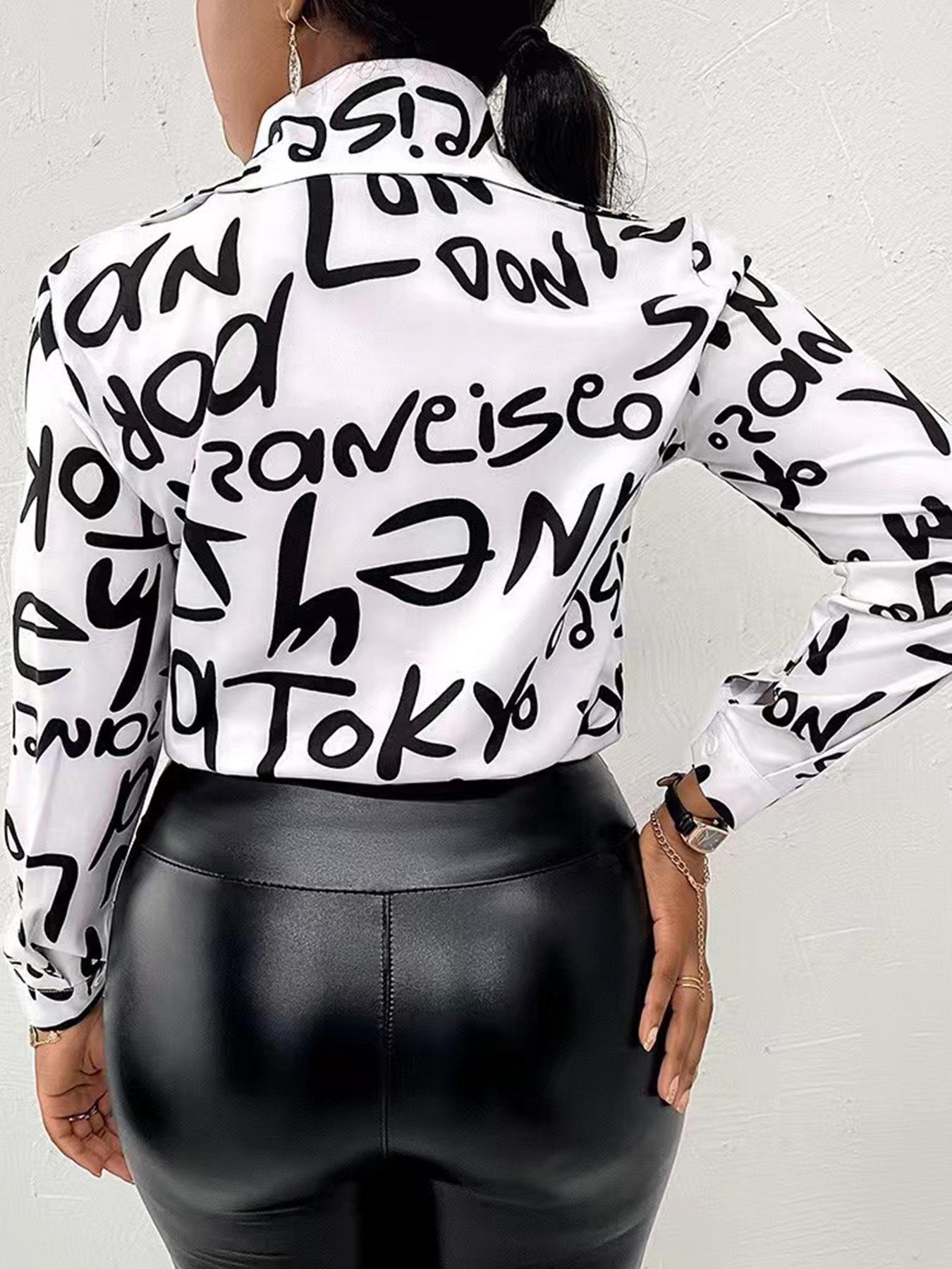 Camisas Europeas y Americanas de Talla Grande para Mujer 2024 Tops Transfronterizos Primavera y Otoño Camisas de Botones de Manga Larga para Mujer con Estampado Digital