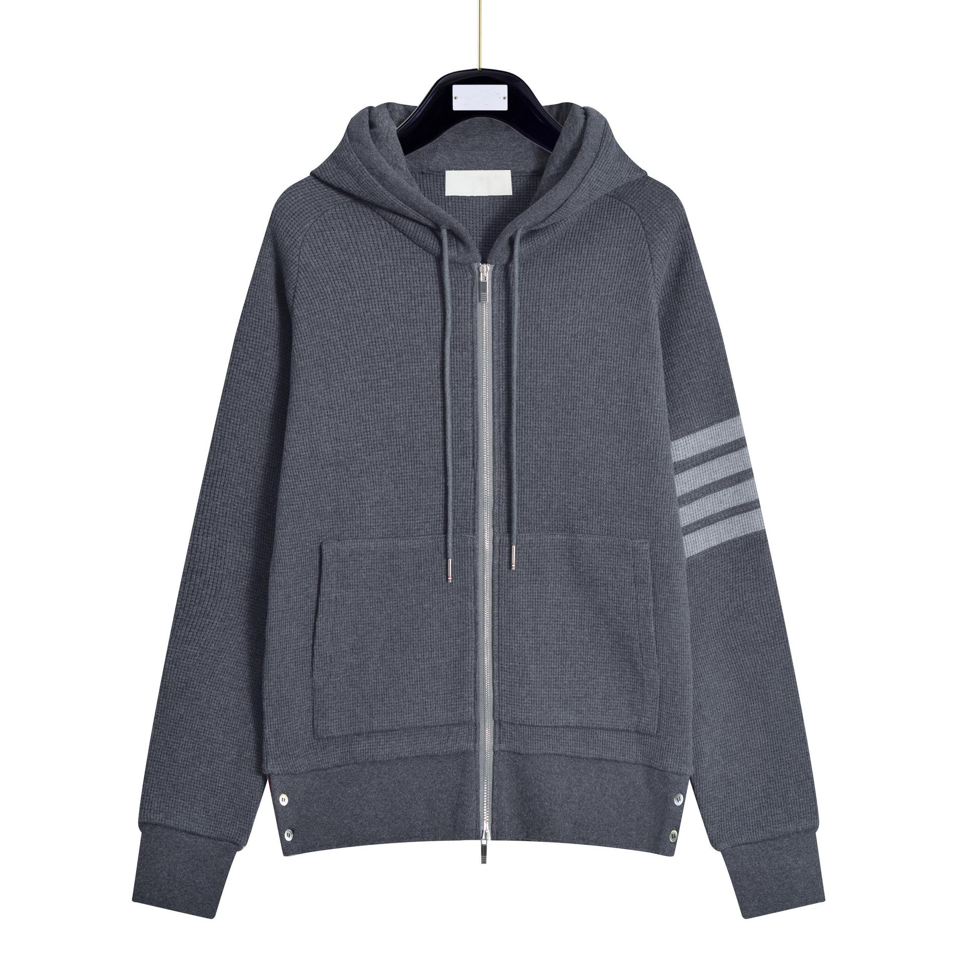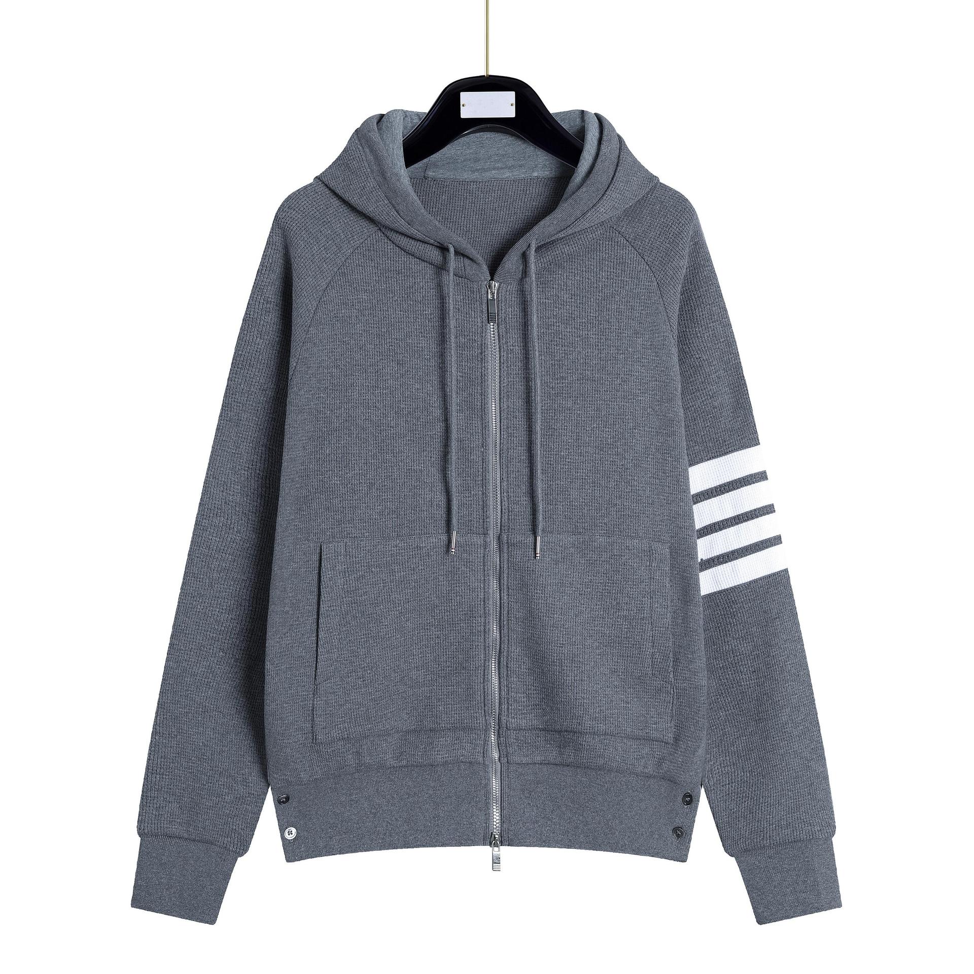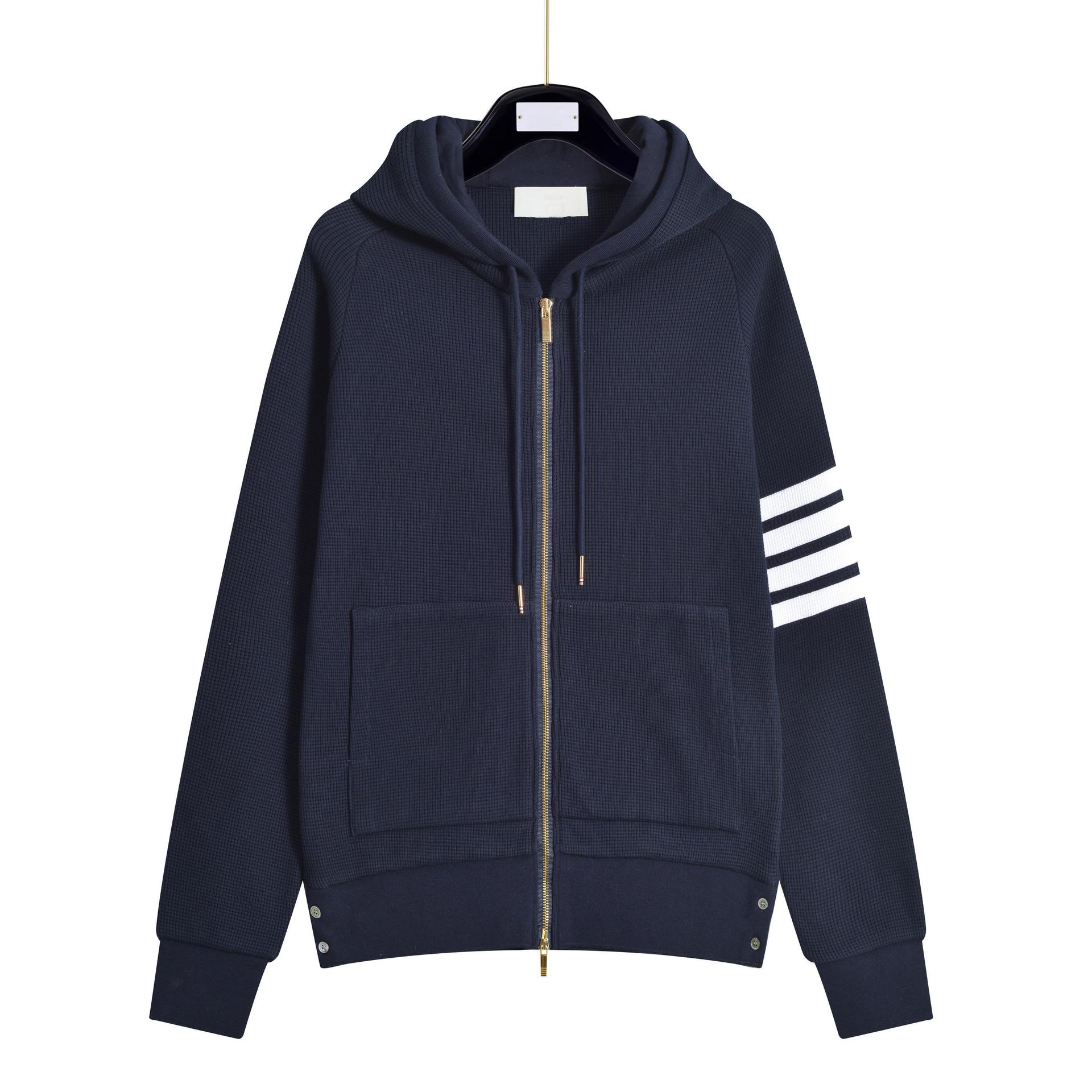 Sudadera Waffle Tb con Capucha de Cuatro Rayas Marca Trendy Tb Otoño e Invierno Mismo Estilo Chaqueta con Cierre para Hombre y Mujer