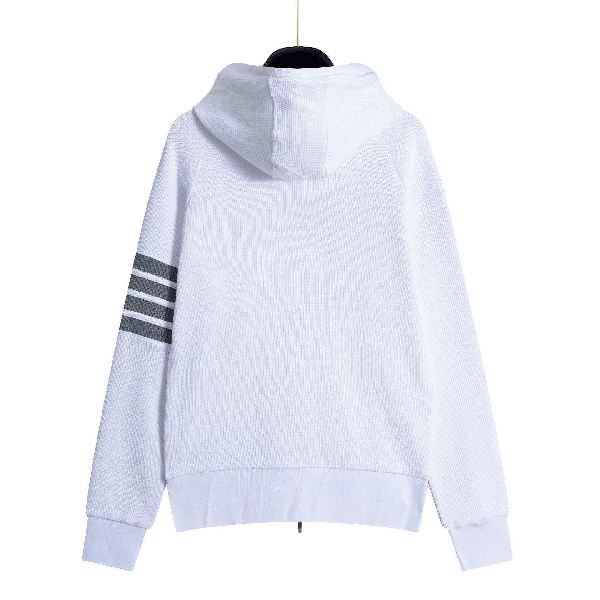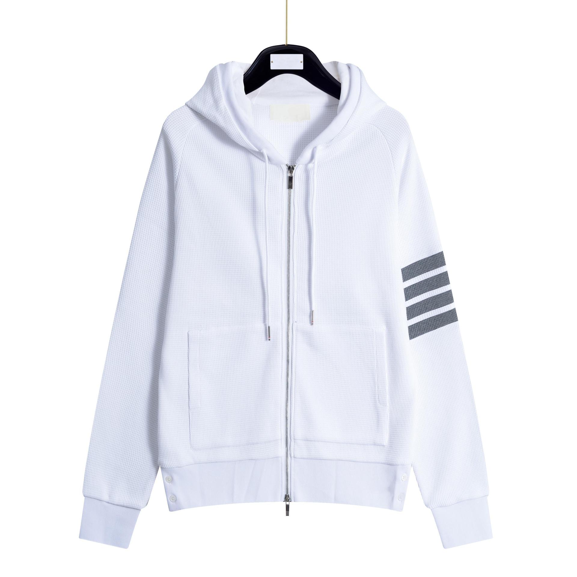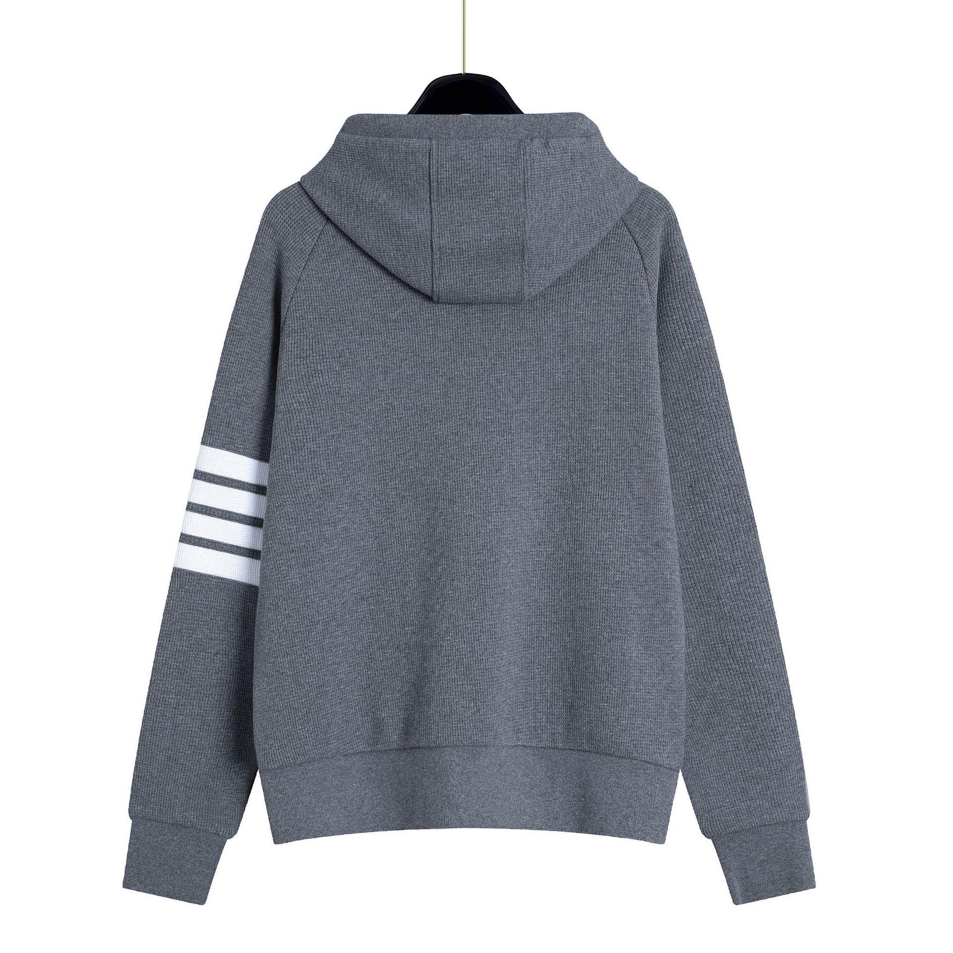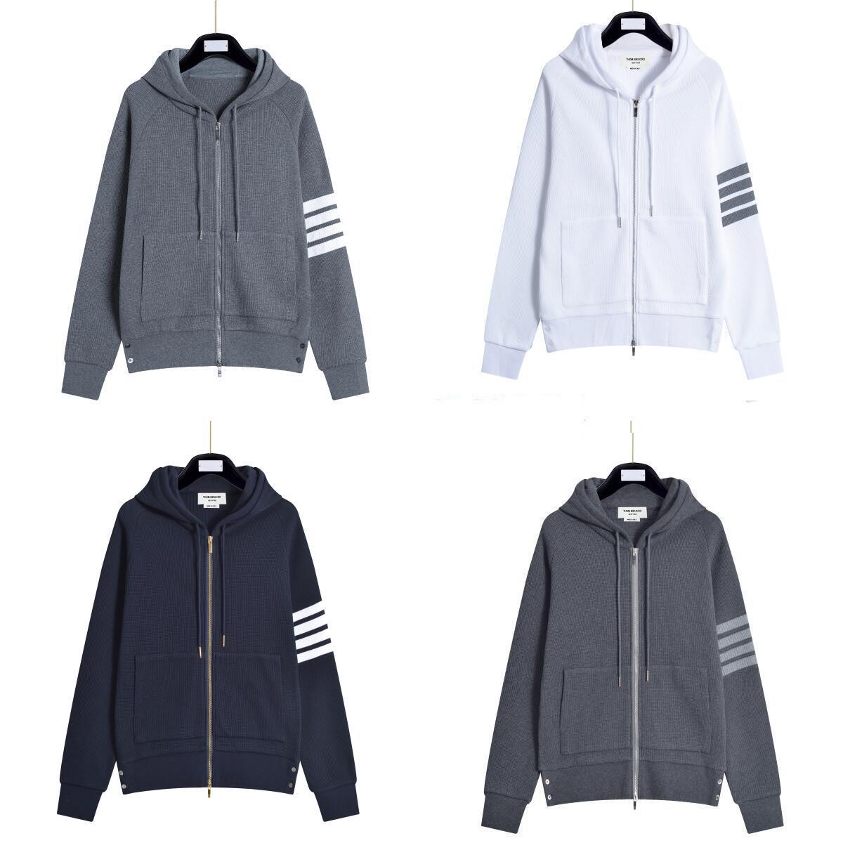 Sudadera Waffle Tb con Capucha de Cuatro Rayas Marca Trendy Tb Otoño e Invierno Mismo Estilo Chaqueta con Cierre para Hombre y Mujer