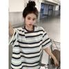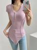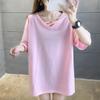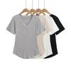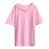 100.00kg chica gordita Holgada talla grande Camiseta de manga corta para mujer Verano 2024 Estilo coreano Color sólido Sencilla Cuello en V Aspecto delgado Top a la moda