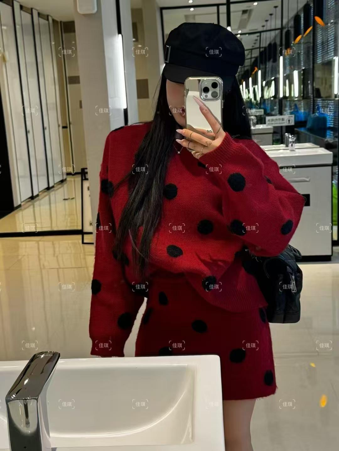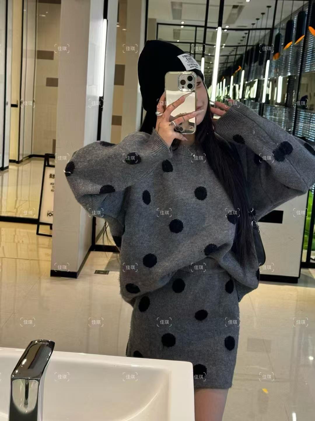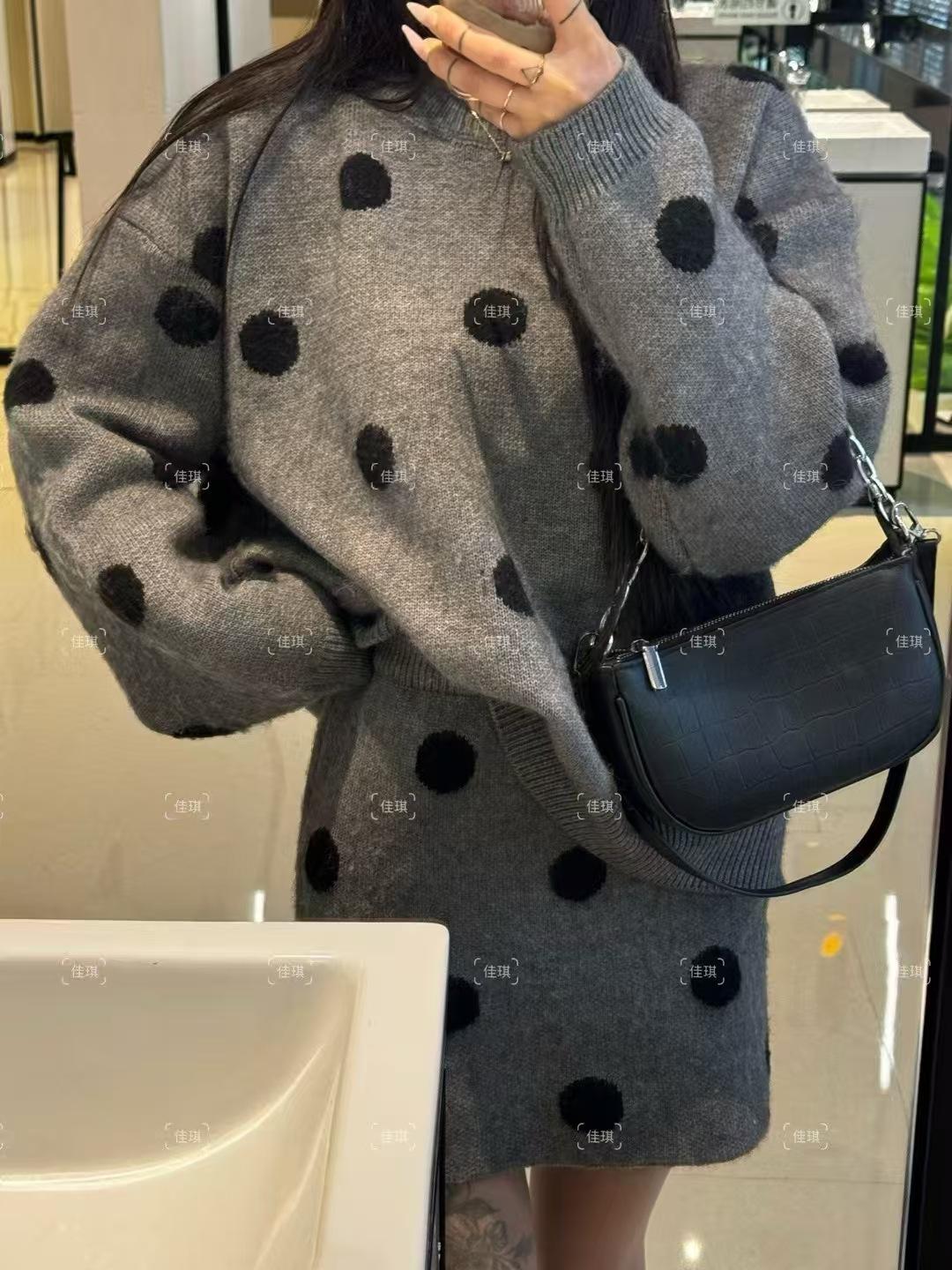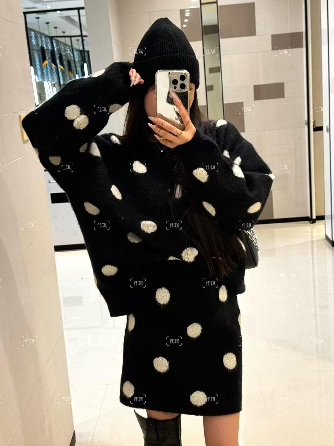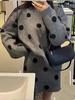 2025 Primavera y Otoño Nuevo Suéter Coreano de Contraste Tejido de Cuello Redondo Traje Diseño Nicho Falda Hippie Conjunto de Dos Piezas para Mujer