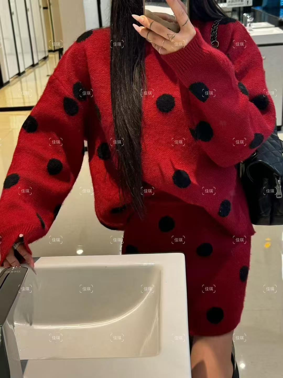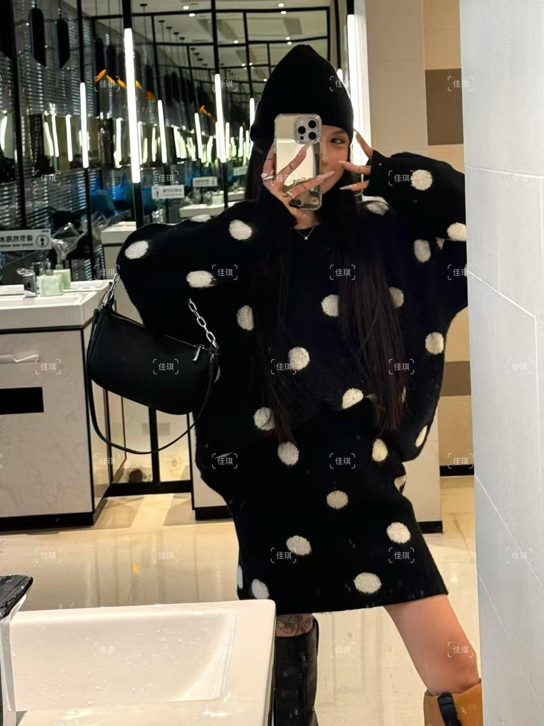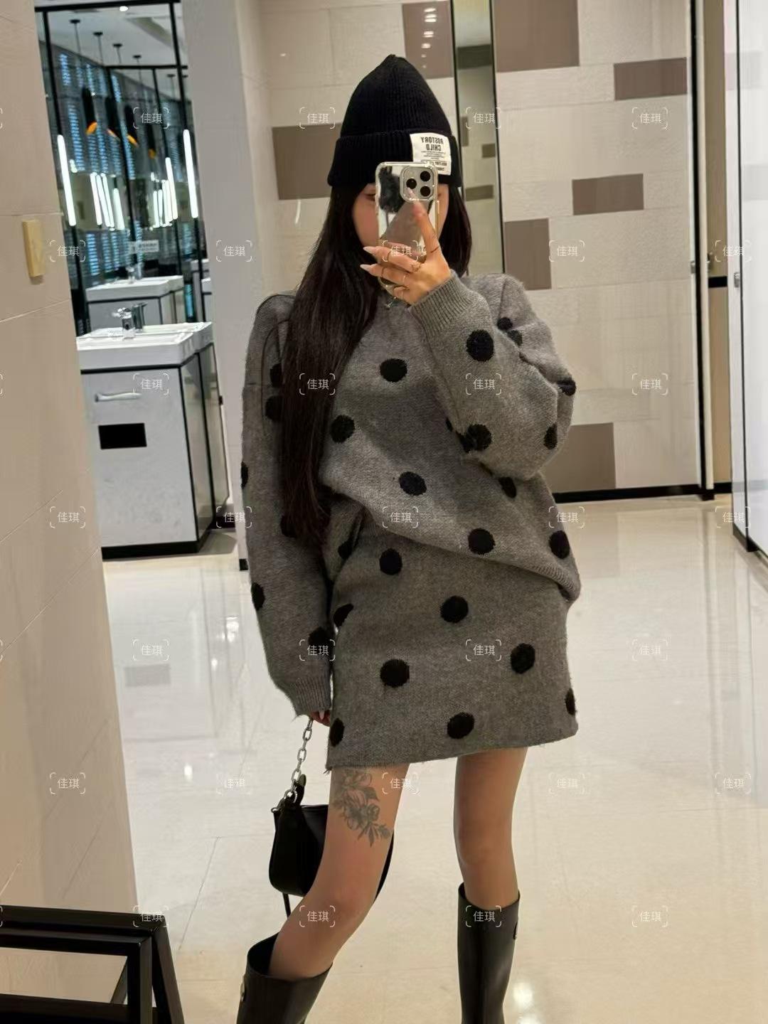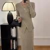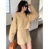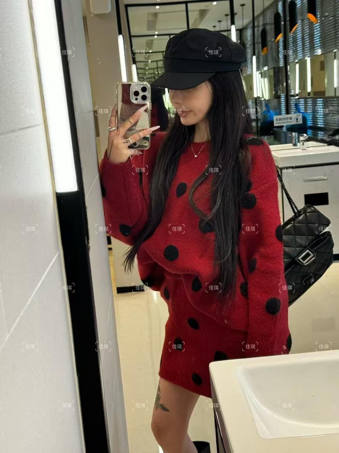 2025 Primavera y Otoño Nuevo Suéter Coreano de Contraste Tejido de Cuello Redondo Traje Diseño Nicho Falda Hippie Conjunto de Dos Piezas para Mujer