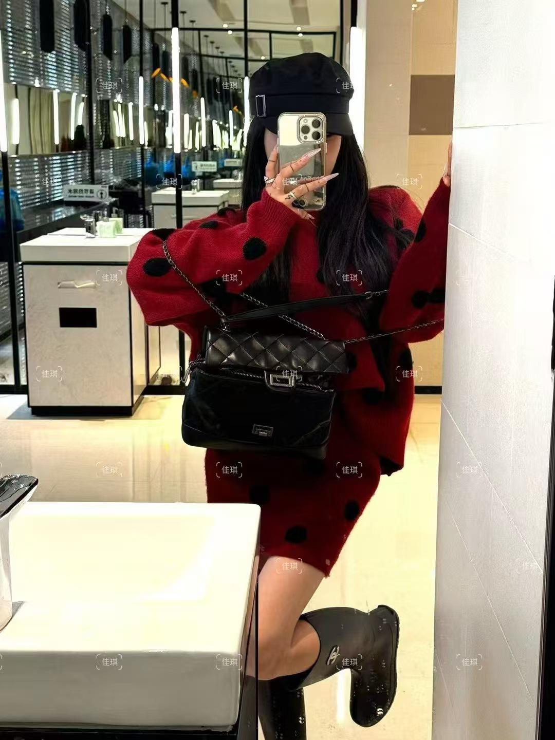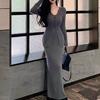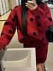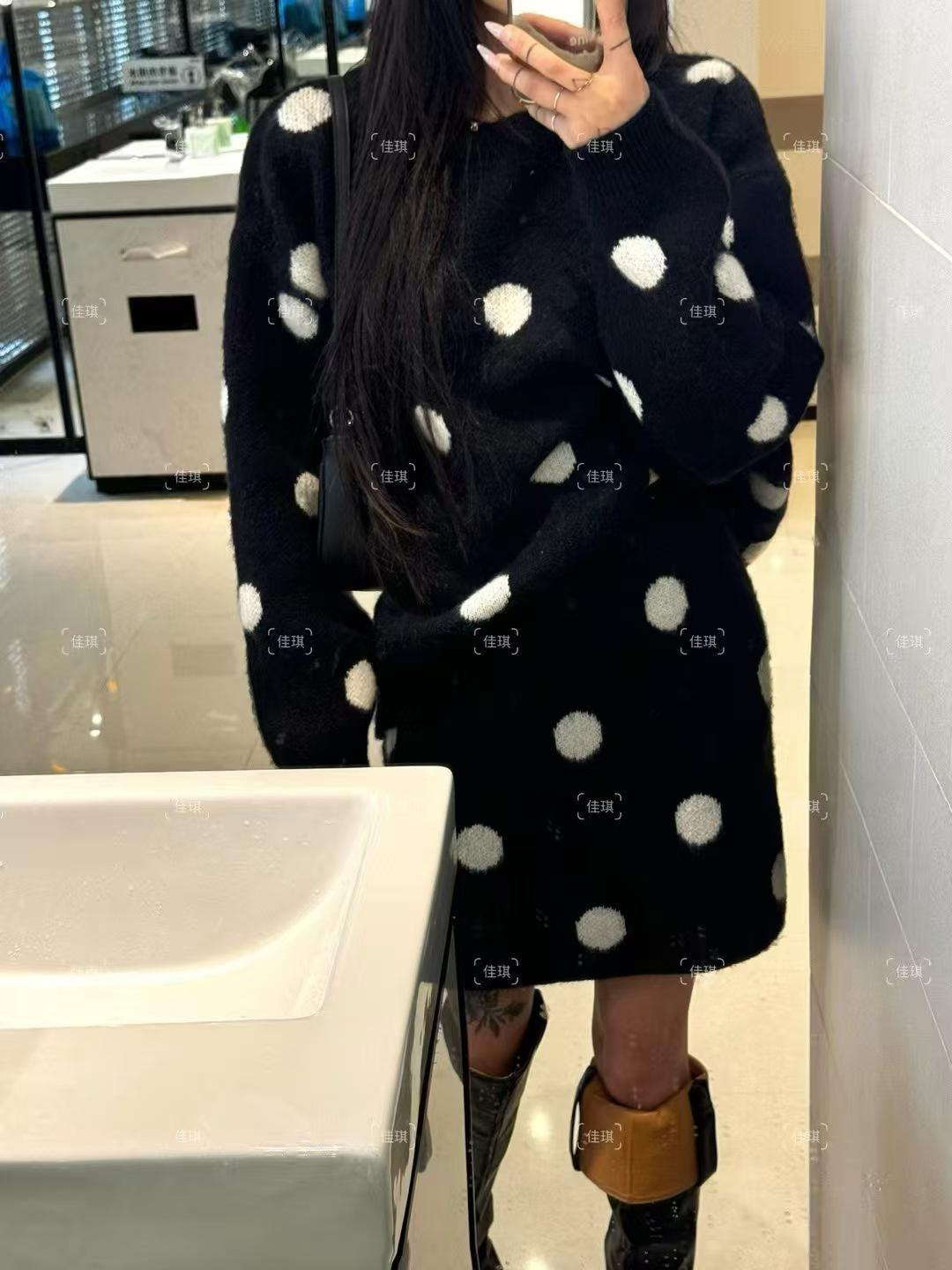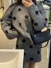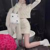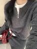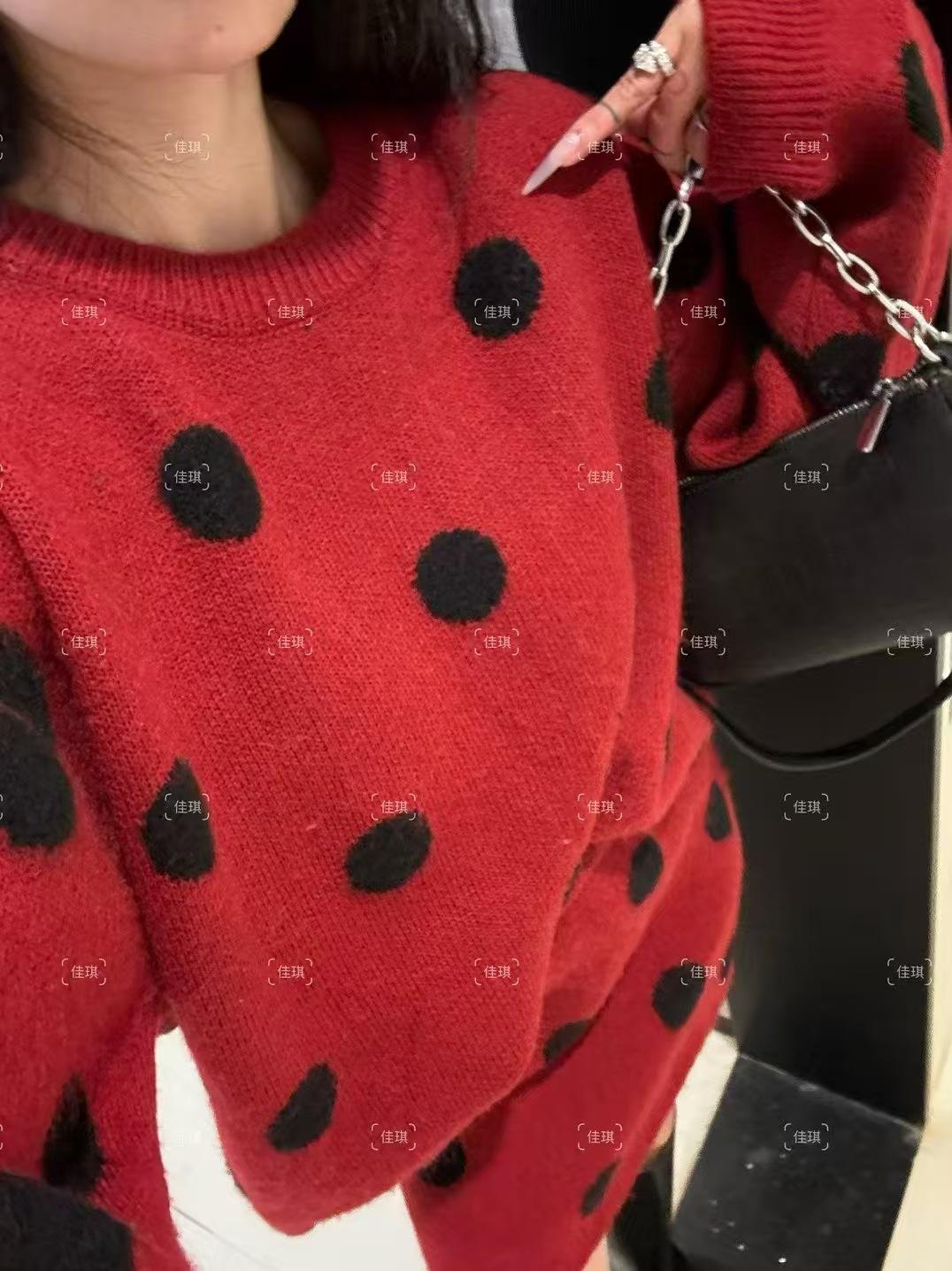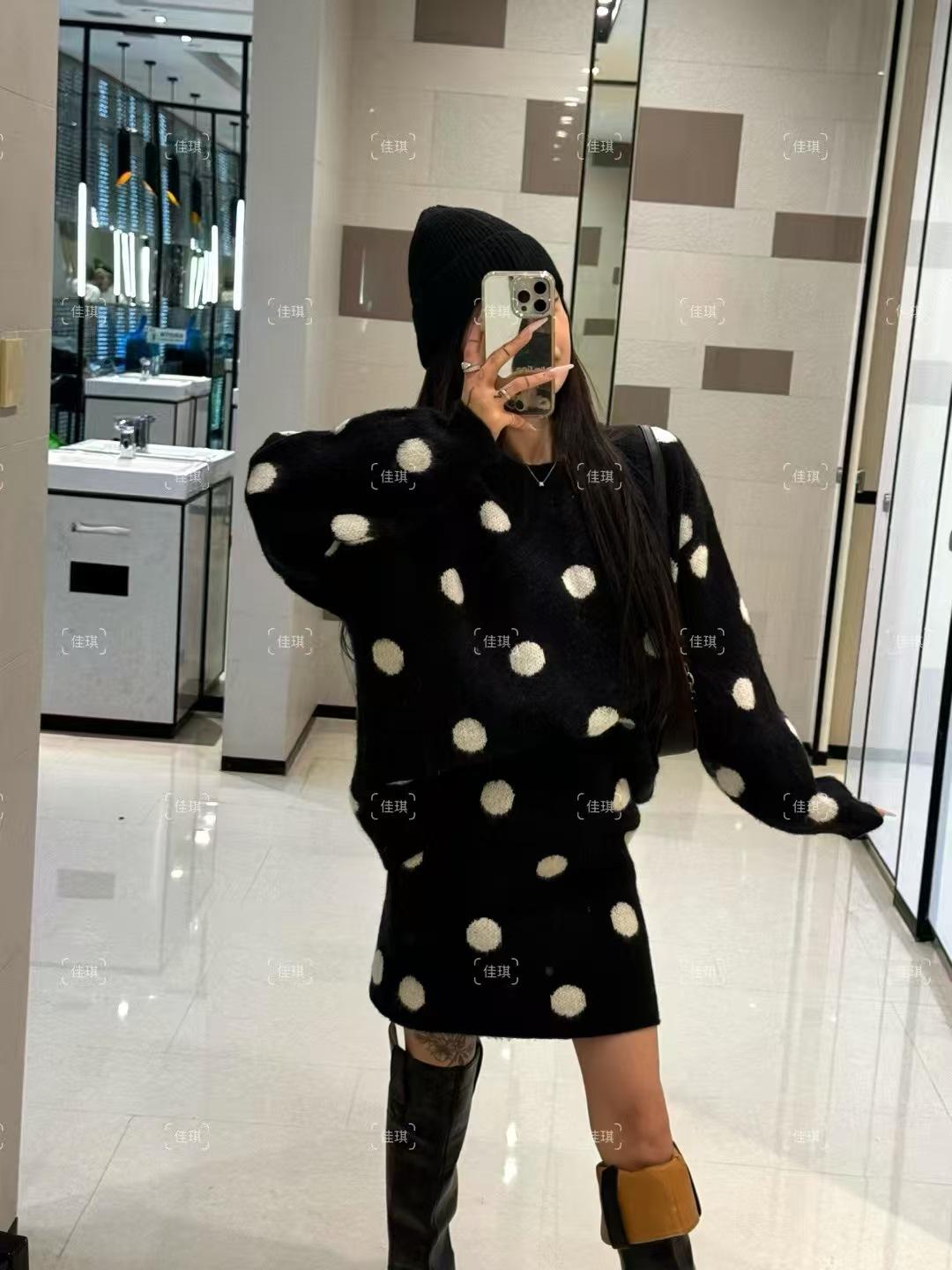 2025 Primavera y Otoño Nuevo Suéter Coreano de Contraste Tejido de Cuello Redondo Traje Diseño Nicho Falda Hippie Conjunto de Dos Piezas para Mujer