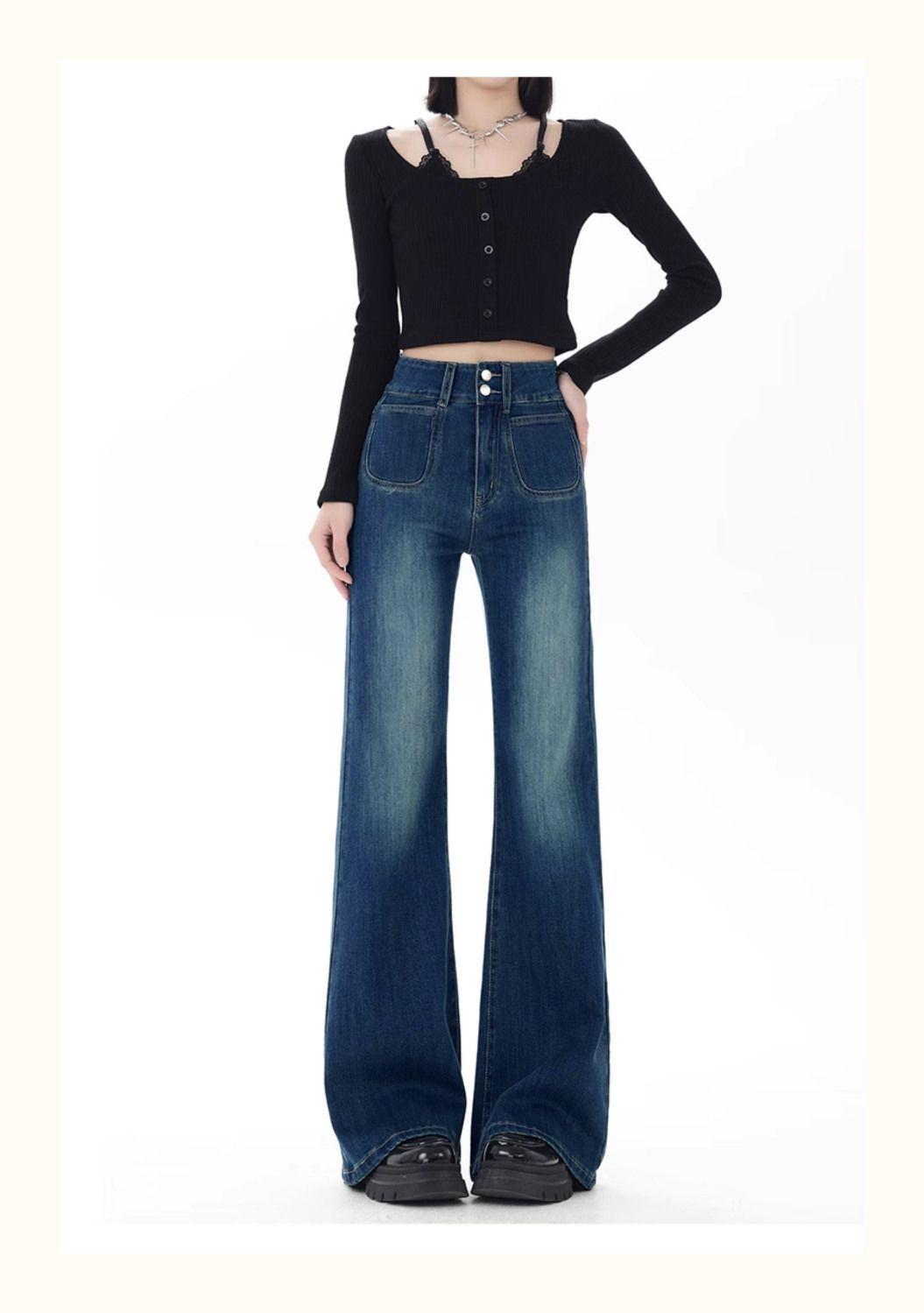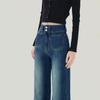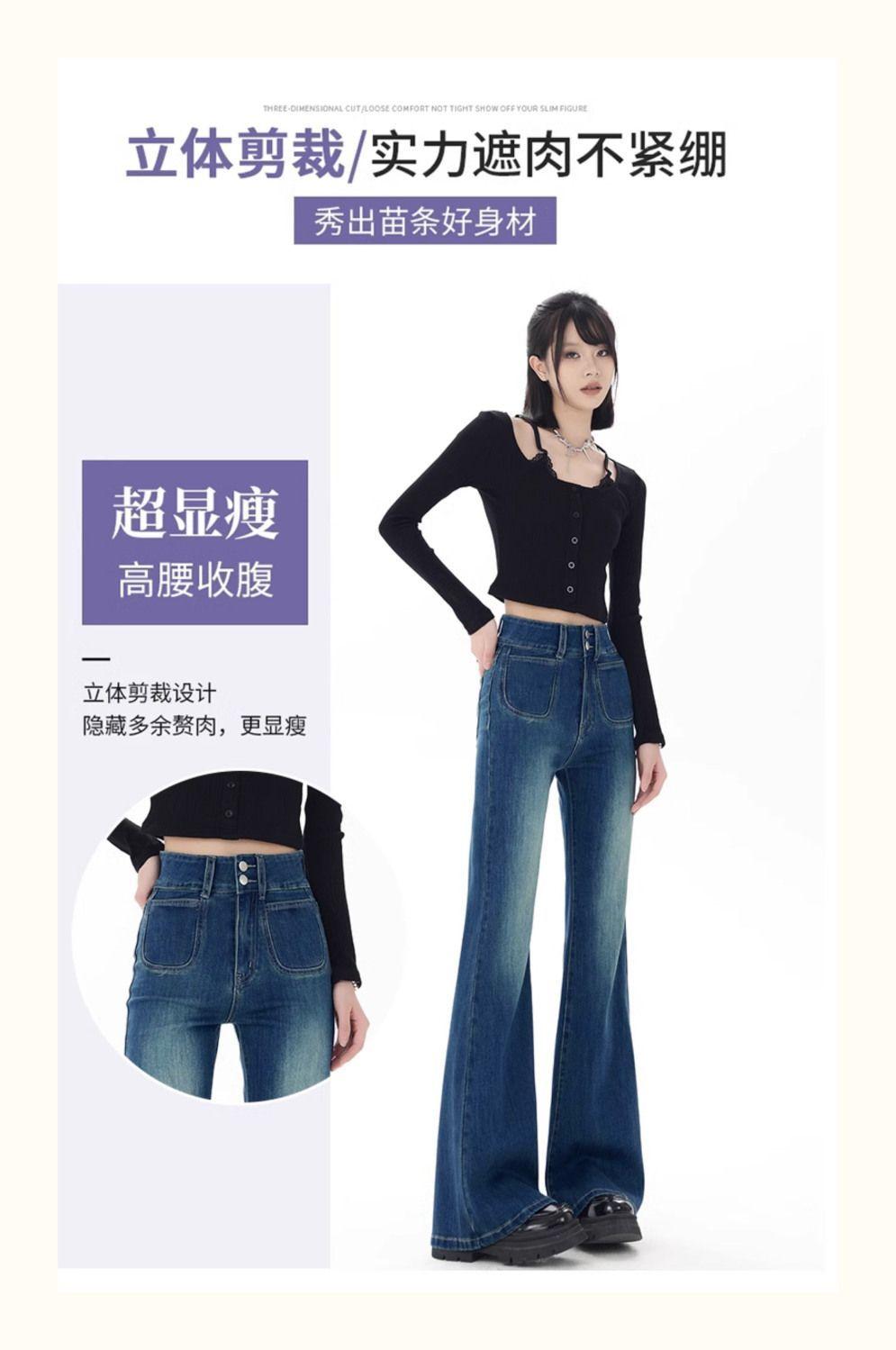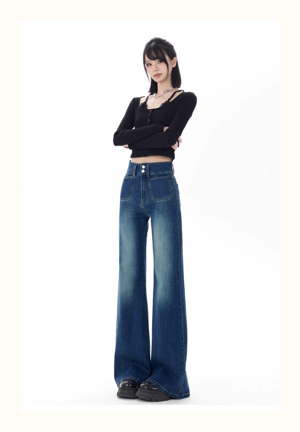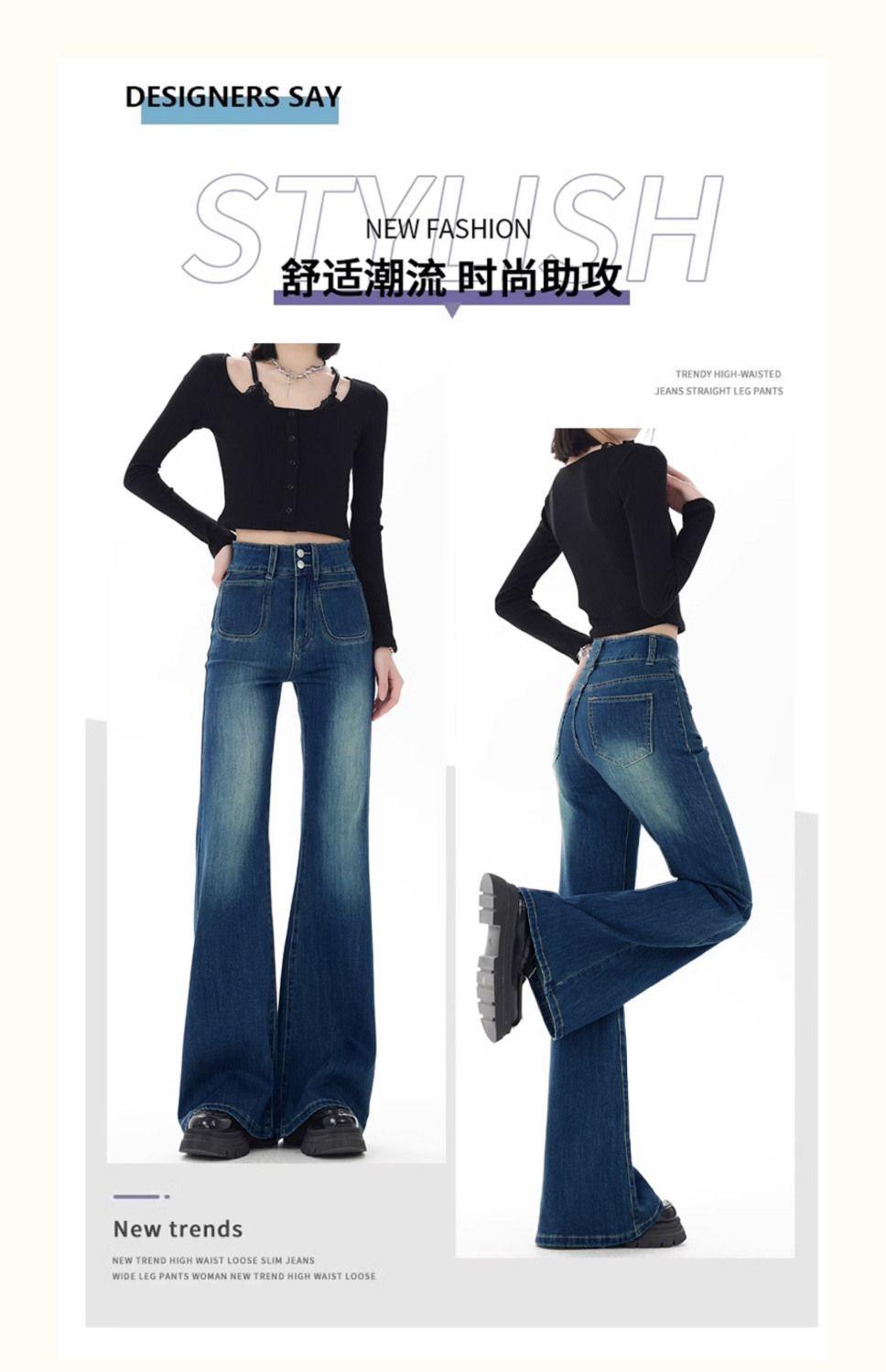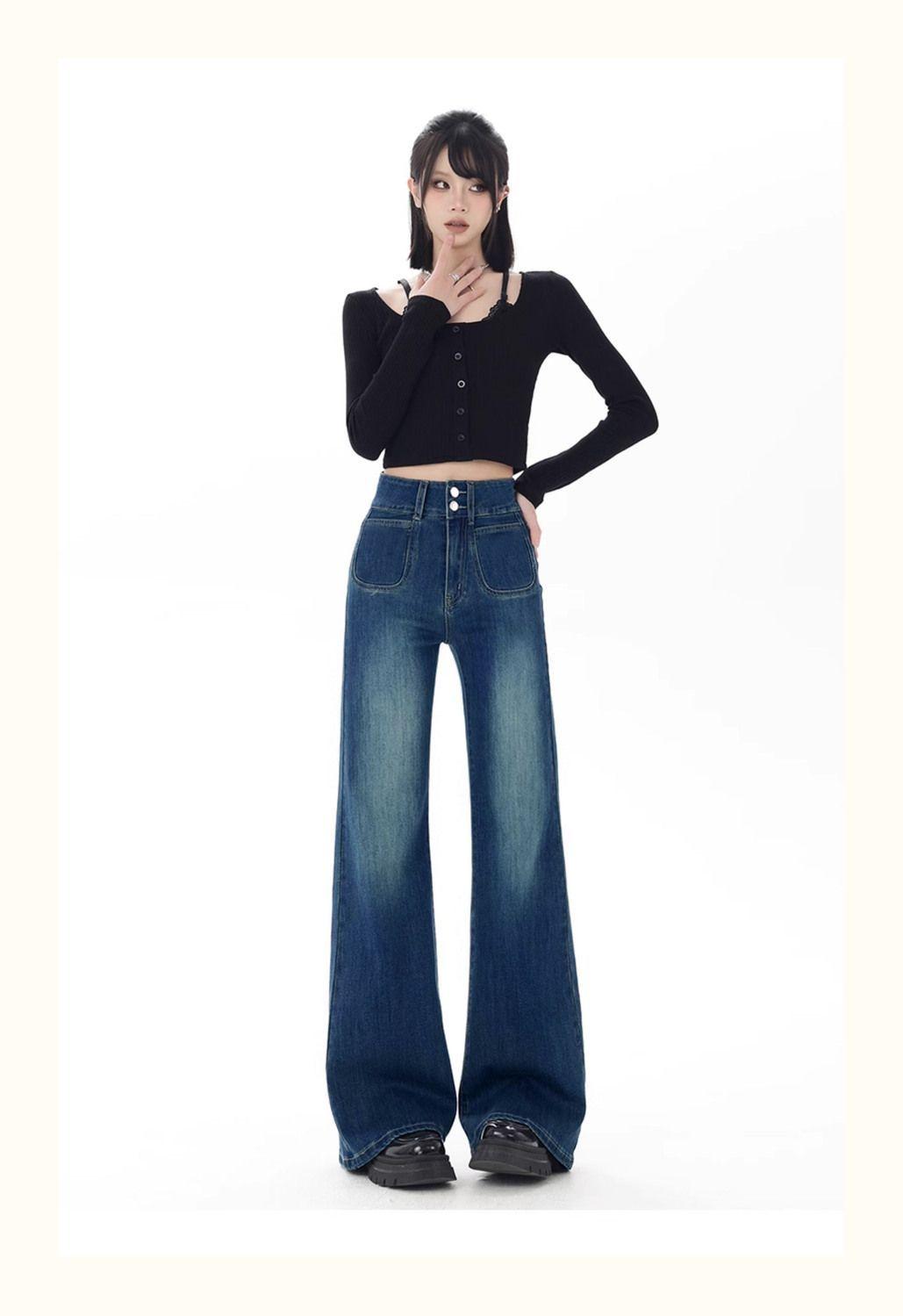 Pantalones vaqueros holgados de pierna ancha y cintura alta con diseño de bolsillo para mujer 2025, diseño elástico, cómodos, primavera