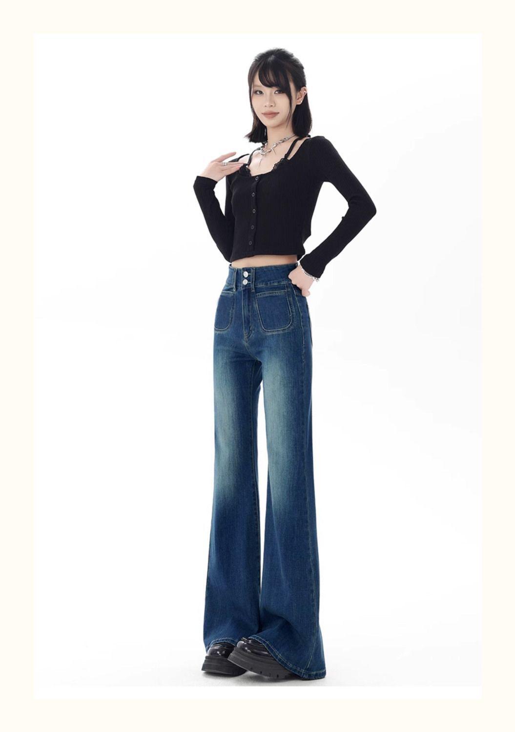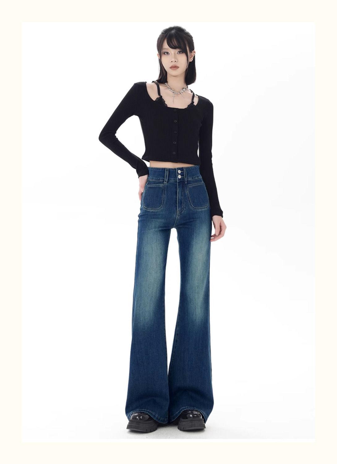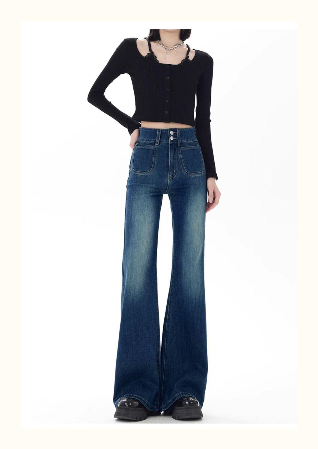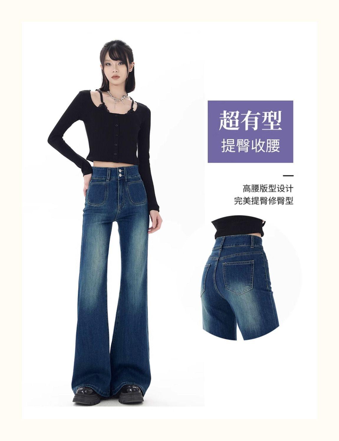 Pantalones vaqueros holgados de pierna ancha y cintura alta con diseño de bolsillo para mujer 2025, diseño elástico, cómodos, primavera