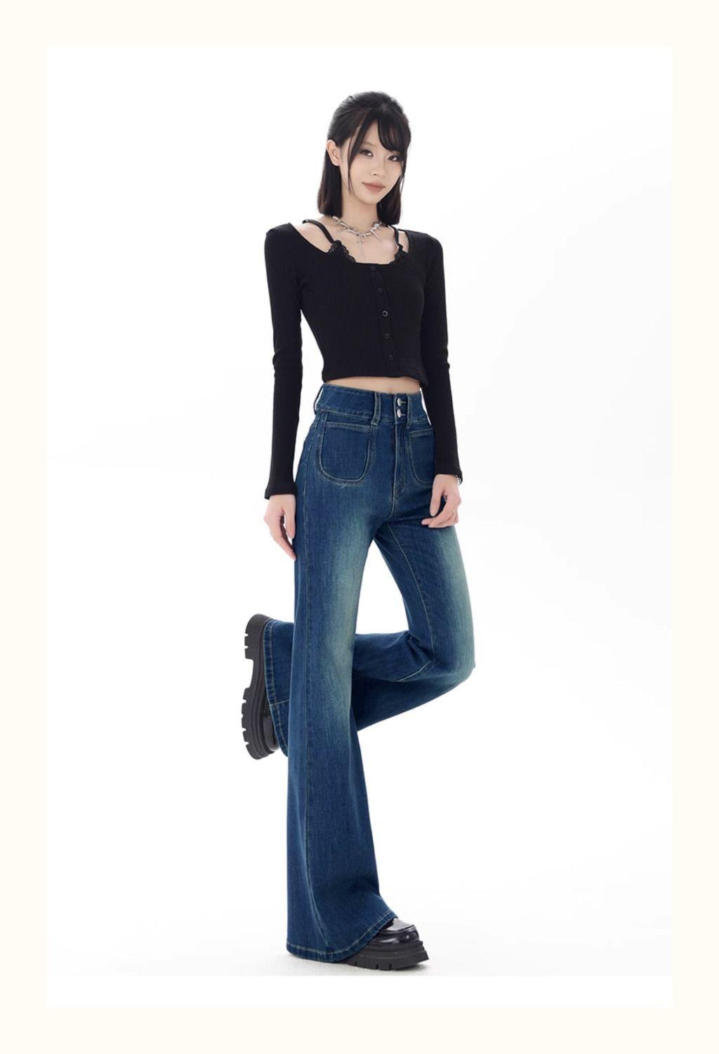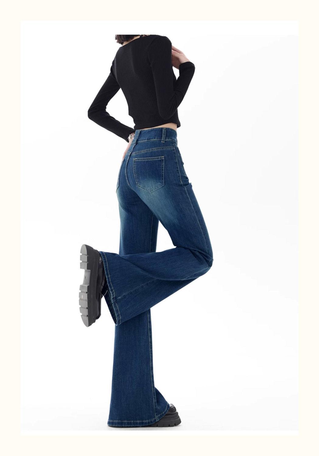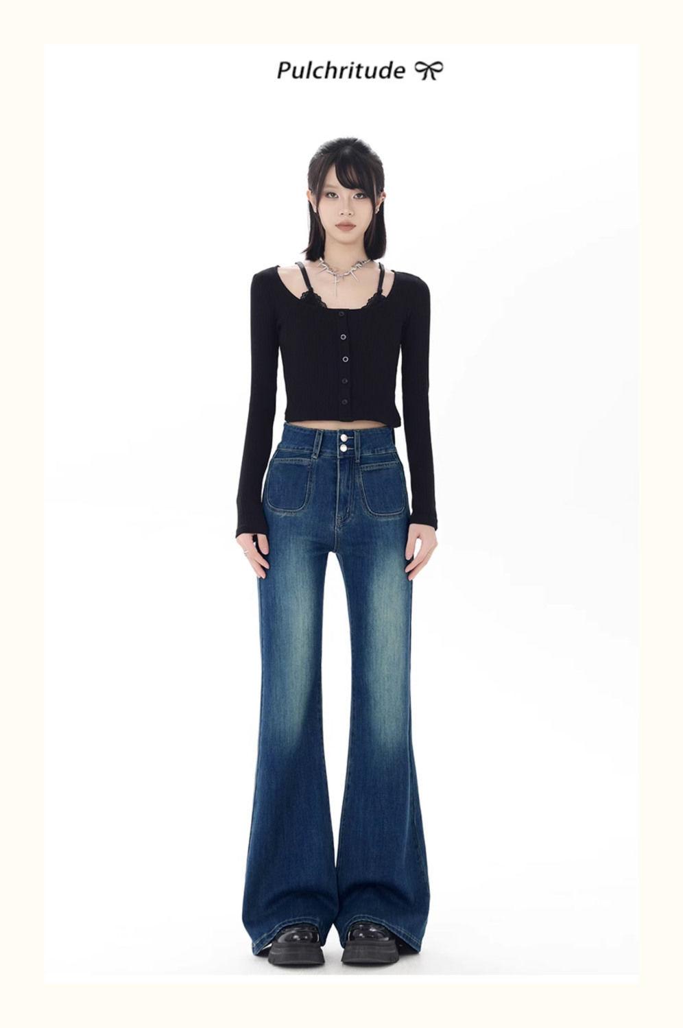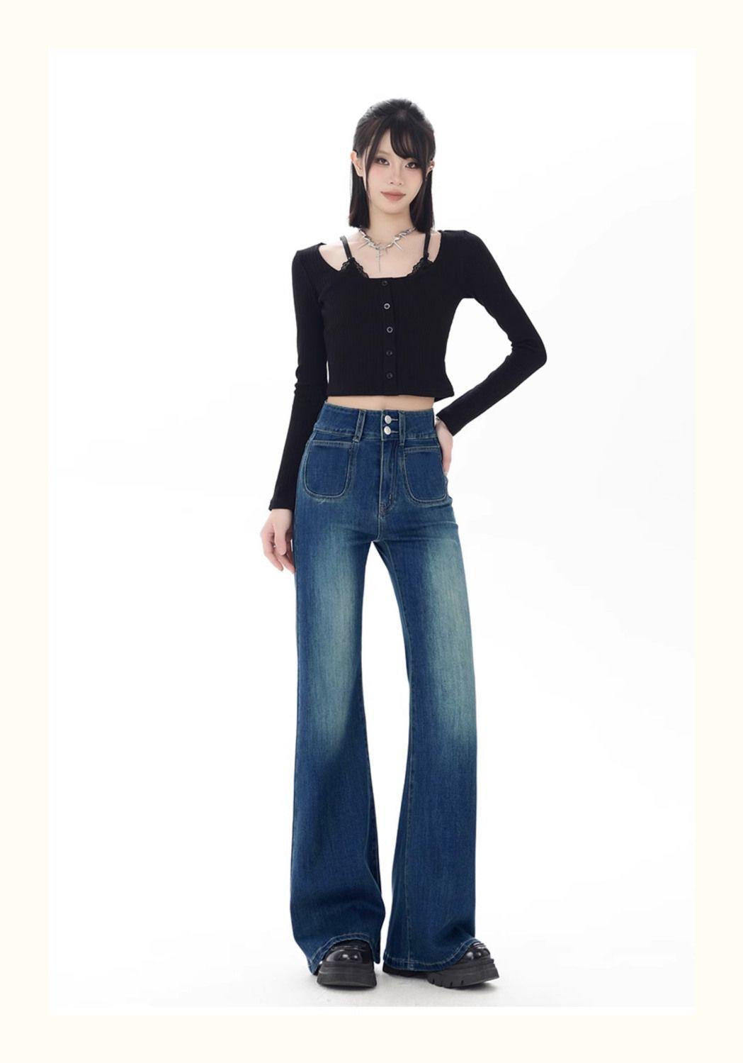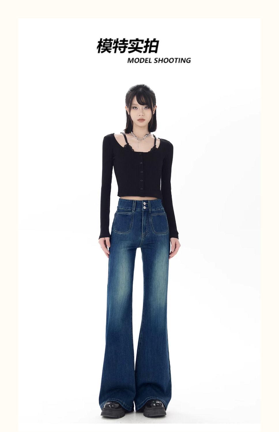 Pantalones vaqueros holgados de pierna ancha y cintura alta con diseño de bolsillo para mujer 2025, diseño elástico, cómodos, primavera