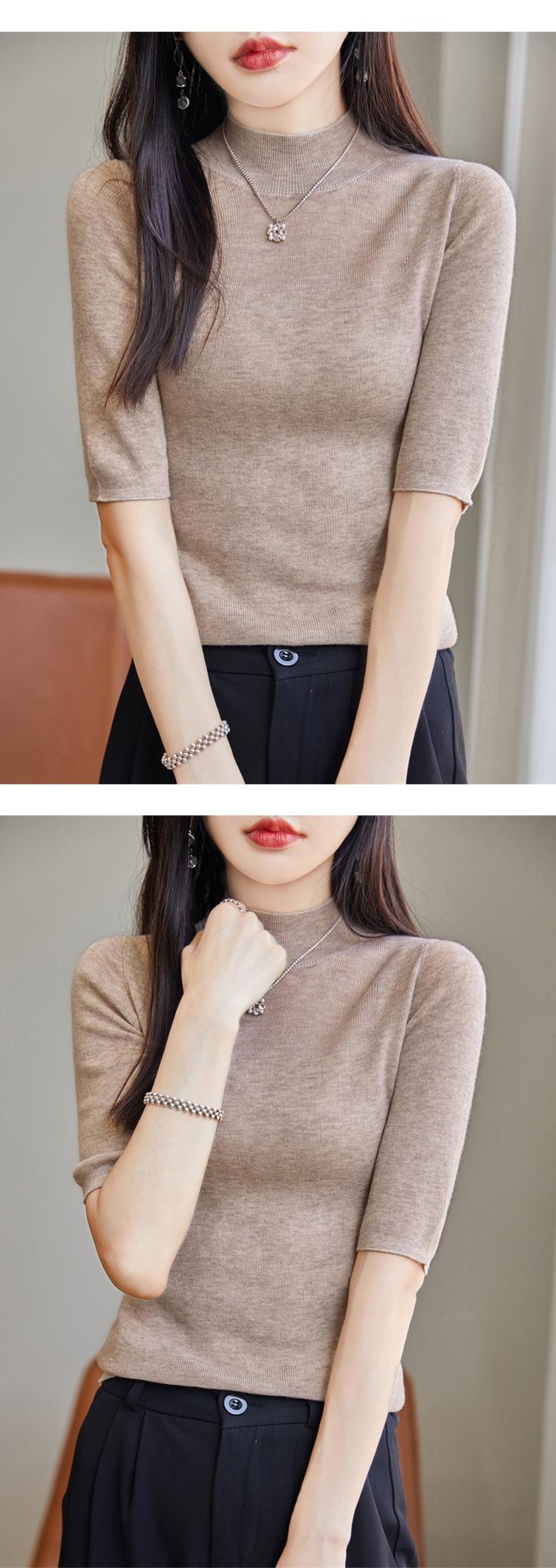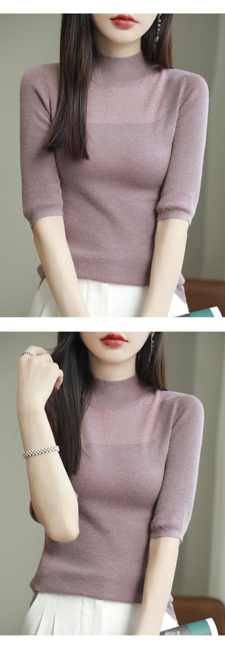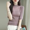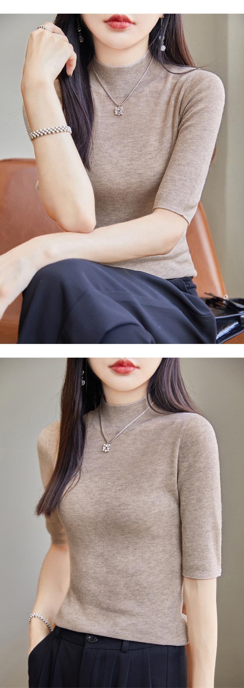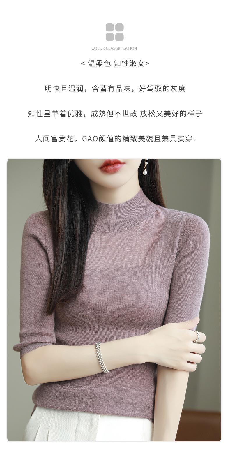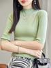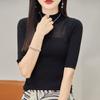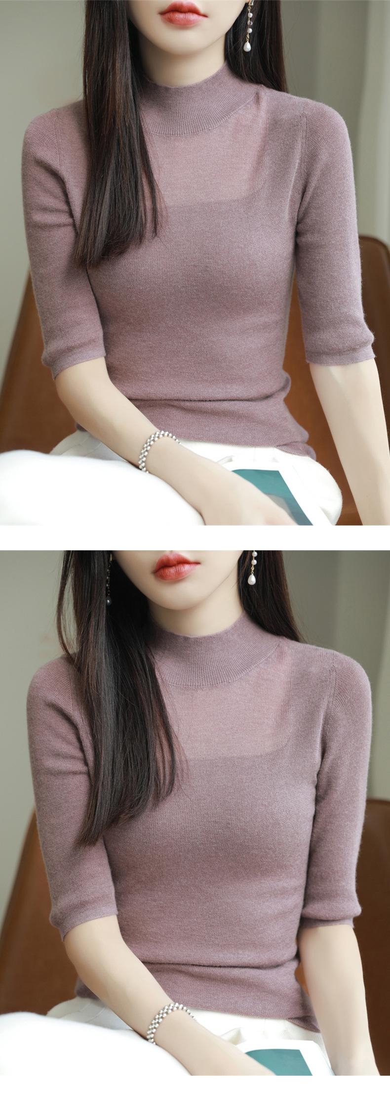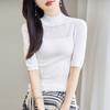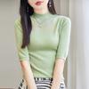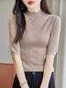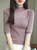 Jersey de punto de lana peinada con cuello alto para mujer, manga media, color liso, elegante, informal, sencillo, ajustado.